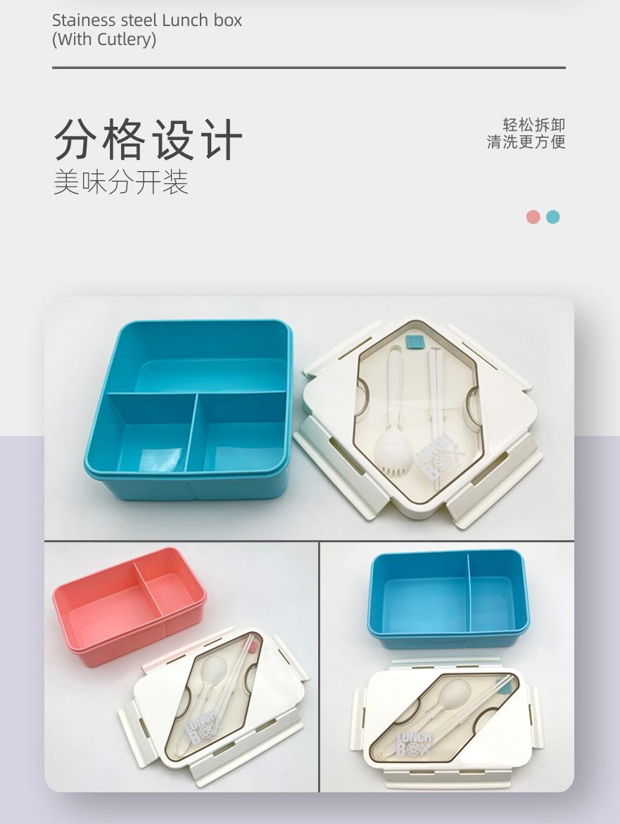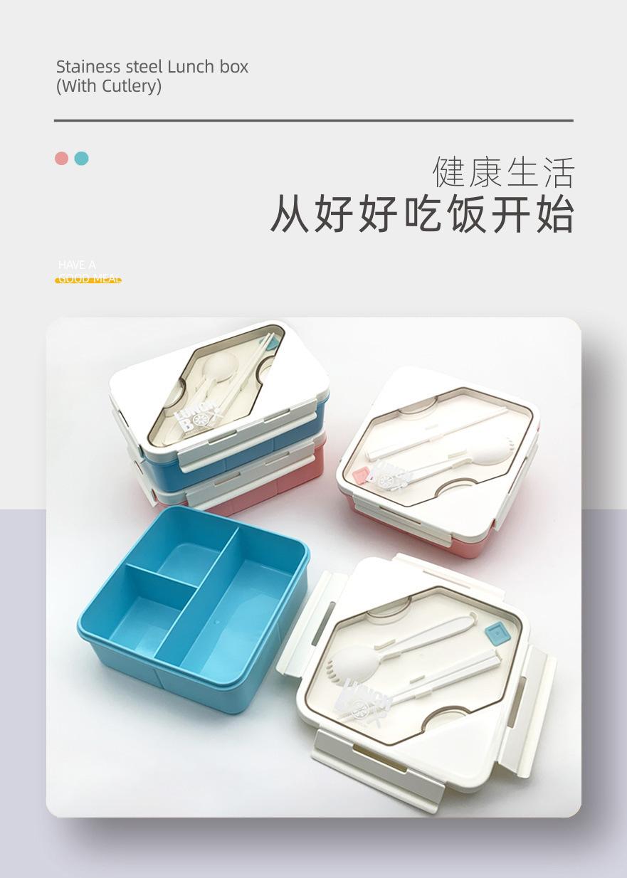 Lonchera sellada de tres compartimentos se puede calentar en el microondas para trabajadores de oficina lonchera para estudiantes de estilo japonés con vajilla