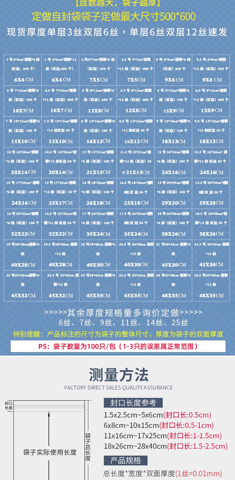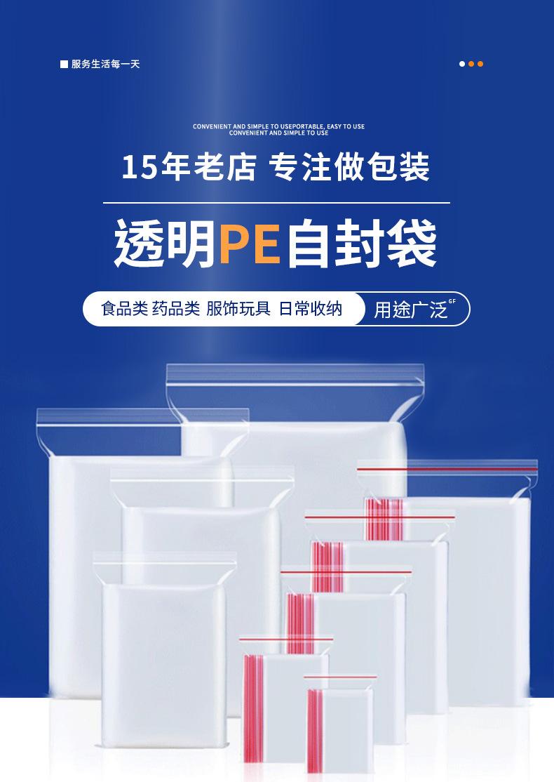 Bolsa autosellante de suministro directo de fábrica, bolsa de PE, bolsa transparente, bolsa para alimentos de ocio, bolsa de almacenamiento gruesa a prueba de polvo, bolsa sellada, bolsa de almacenamiento