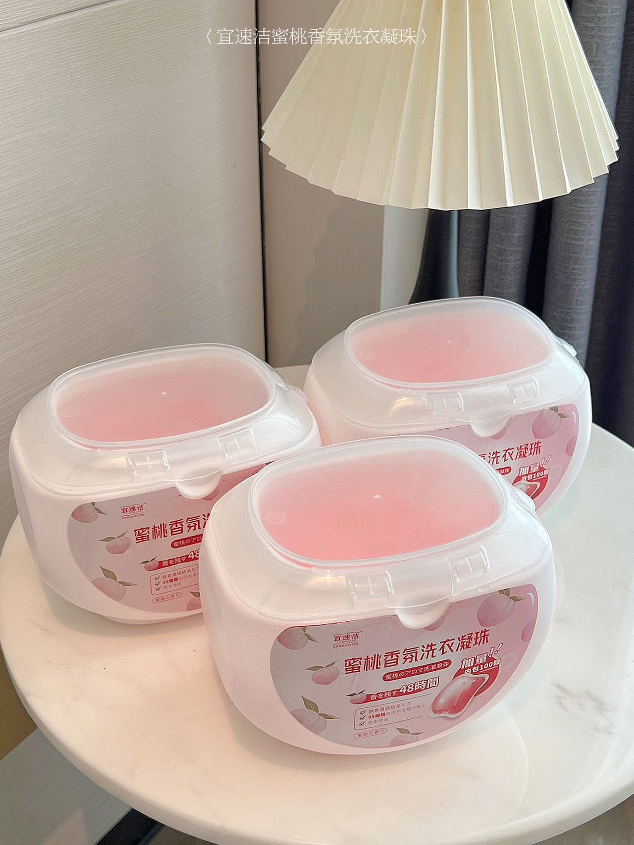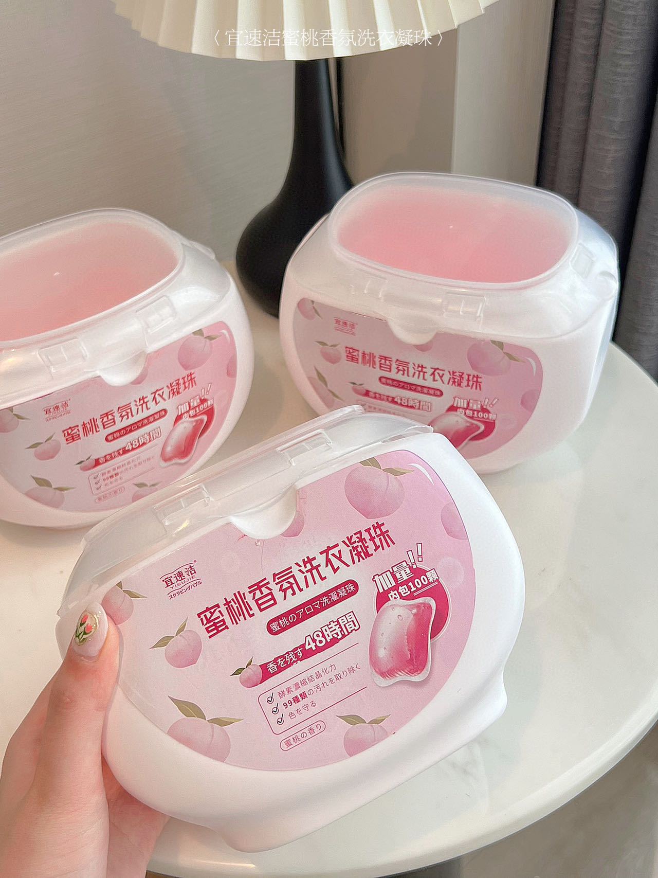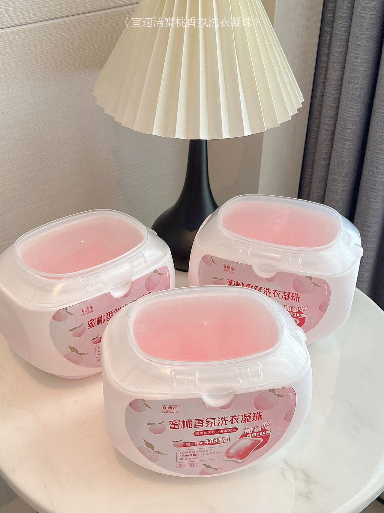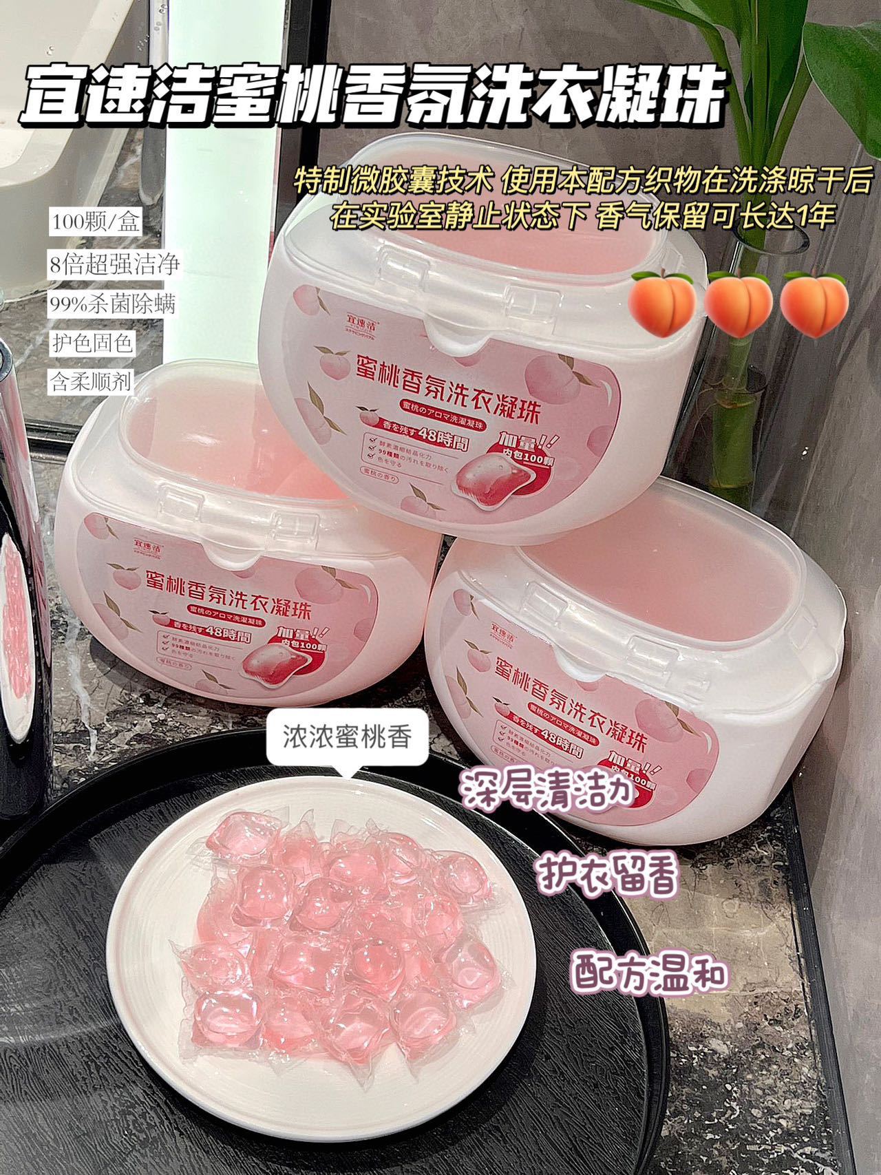 Cápsulas de Detergente para Ropa con Aroma a Durazno, una Caja de 100, Fragancia Duradera, Limpieza Profunda, Suavizante y Quitamanchas 2 en 1