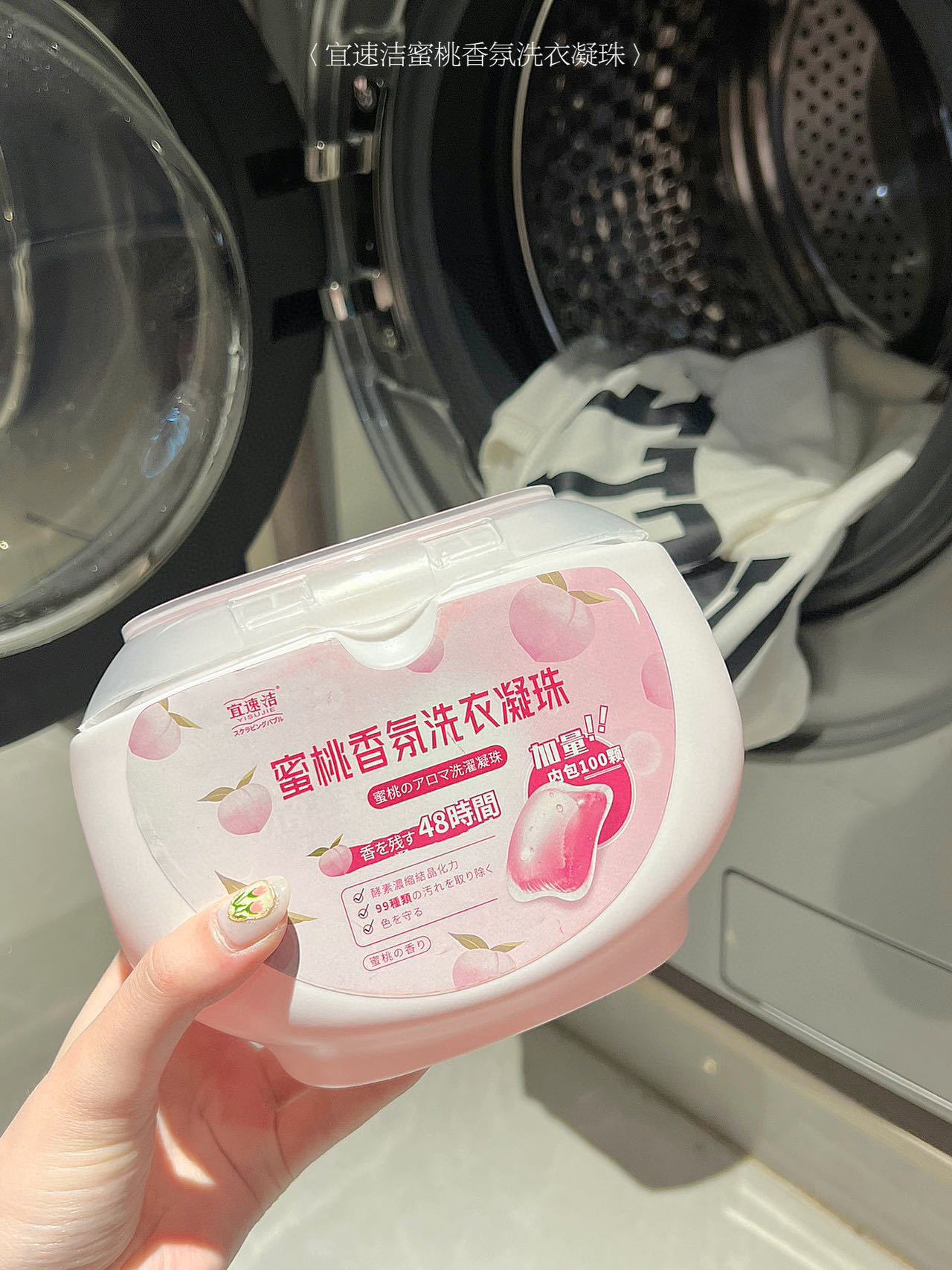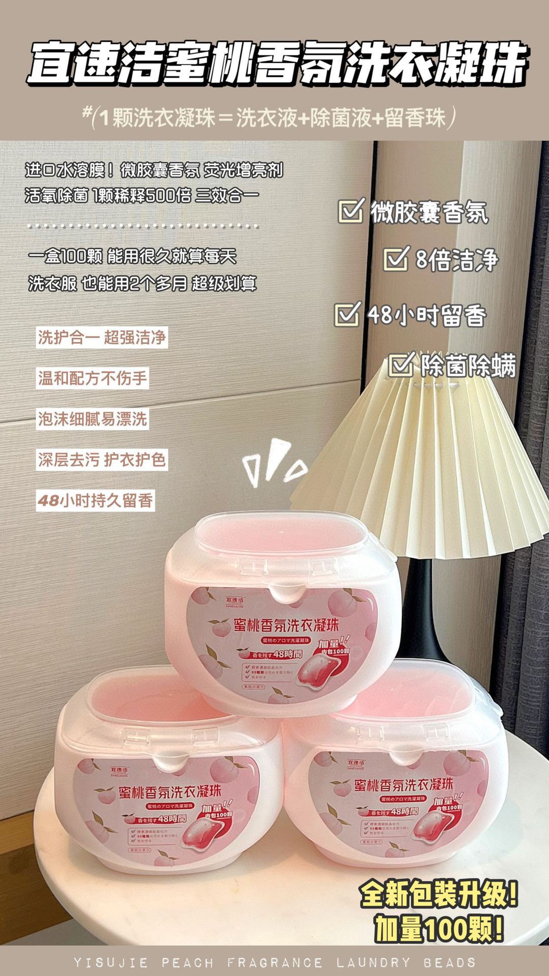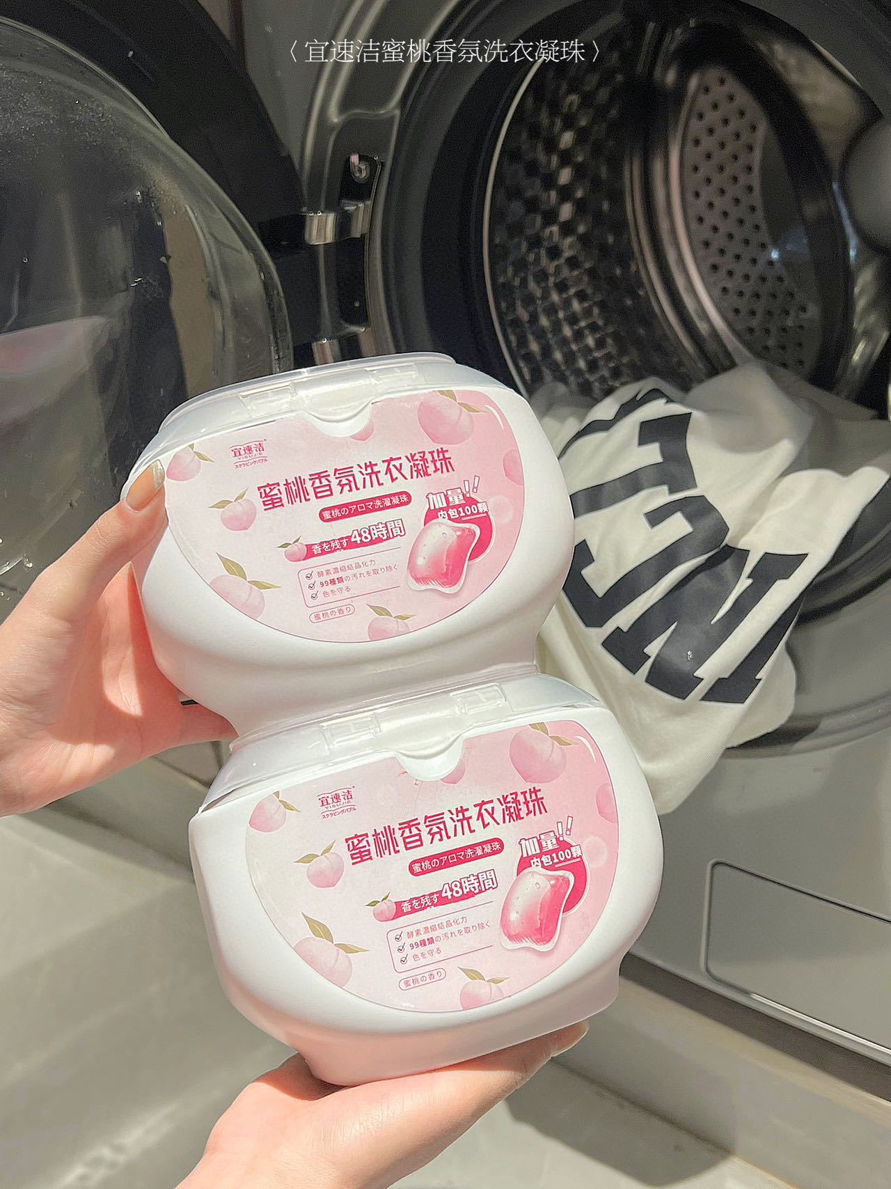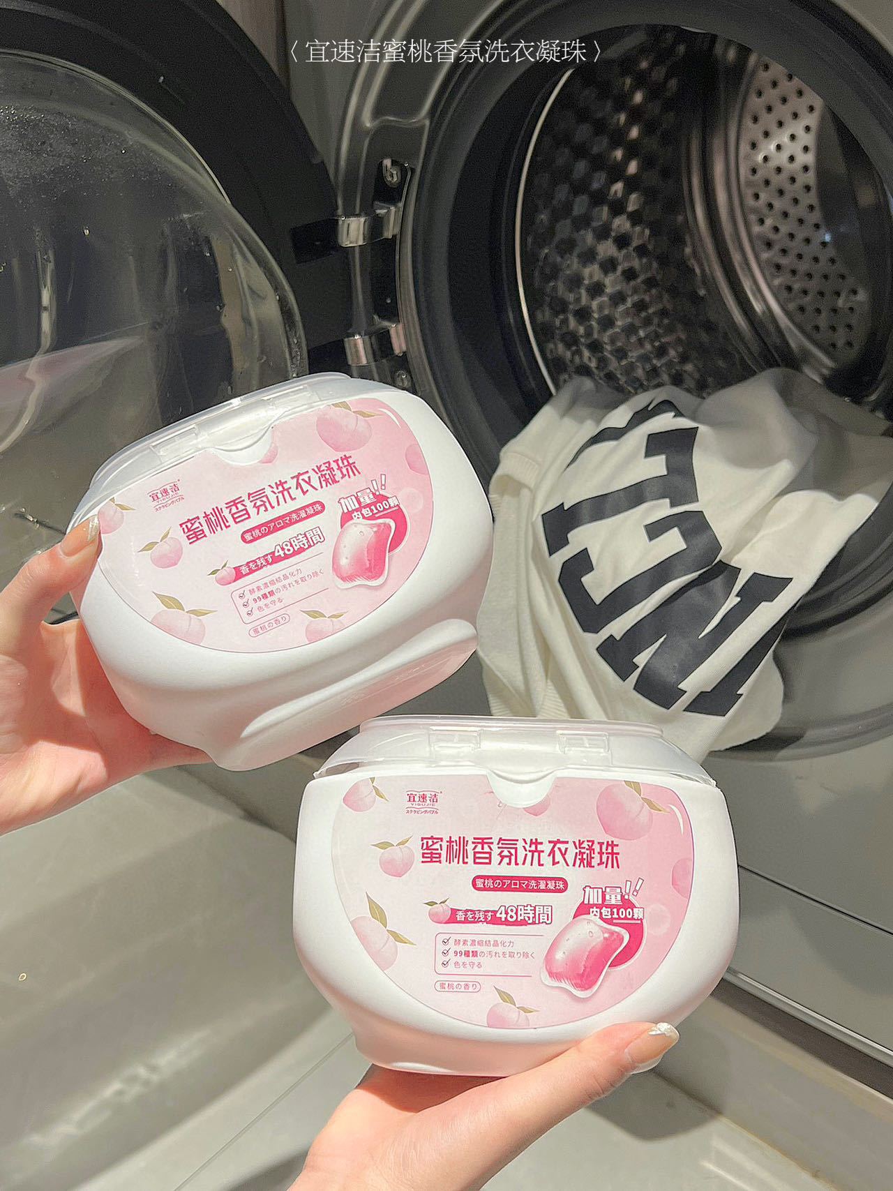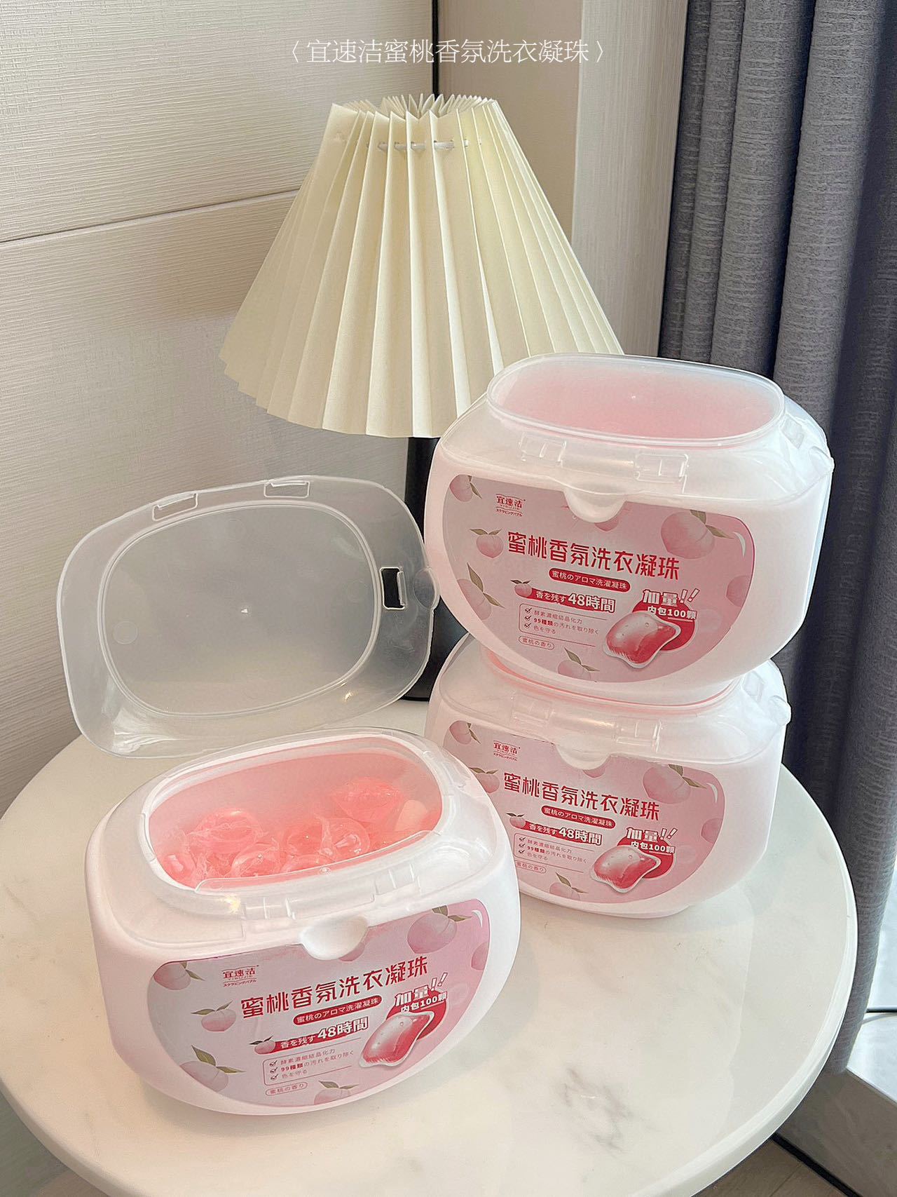 Cápsulas de Detergente para Ropa con Aroma a Durazno, una Caja de 100, Fragancia Duradera, Limpieza Profunda, Suavizante y Quitamanchas 2 en 1