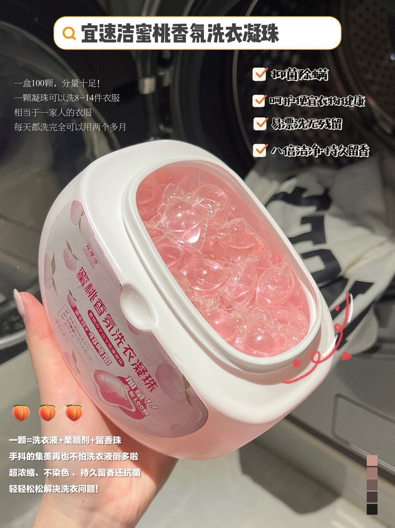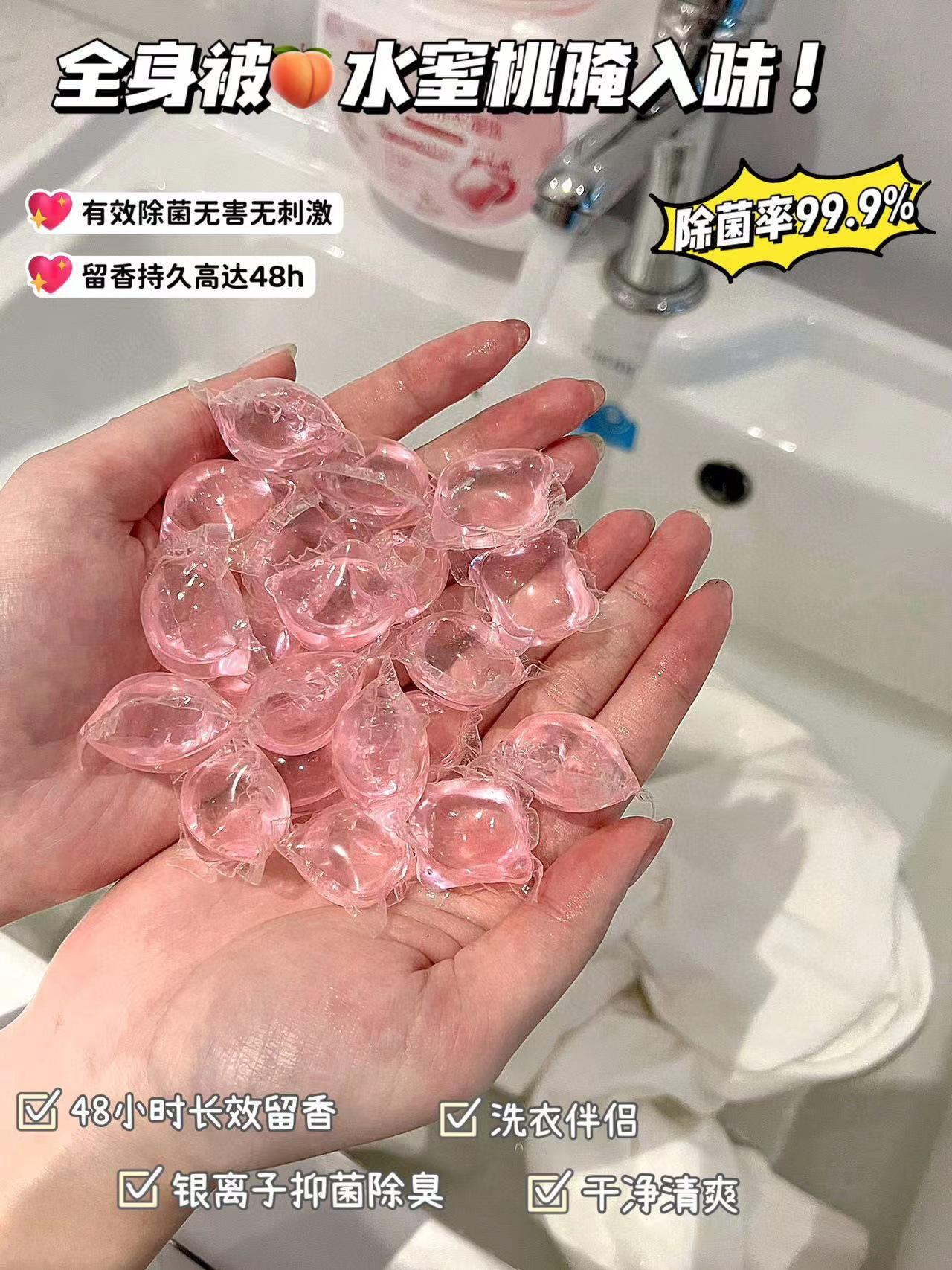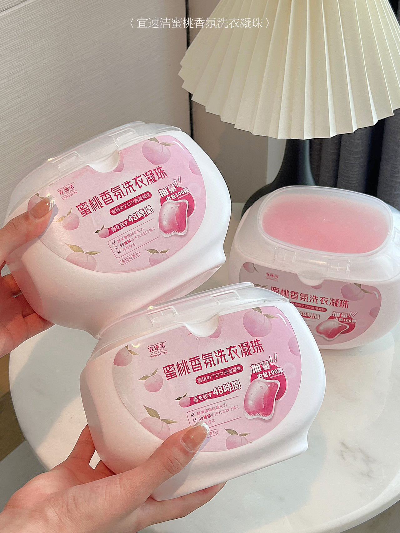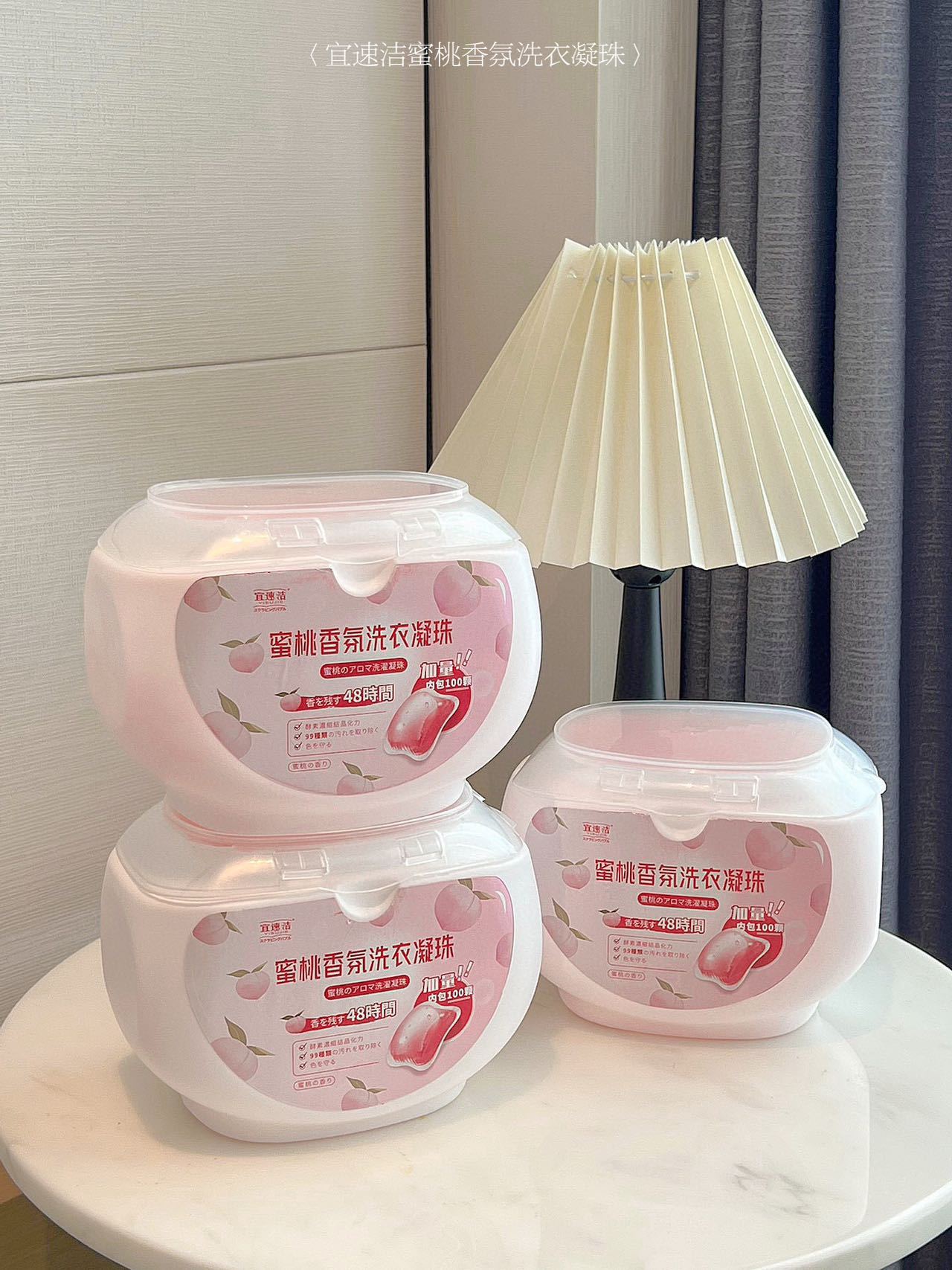 Cápsulas de Detergente para Ropa con Aroma a Durazno, una Caja de 100, Fragancia Duradera, Limpieza Profunda, Suavizante y Quitamanchas 2 en 1
