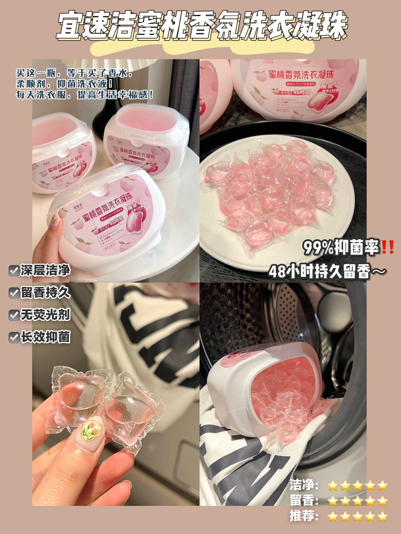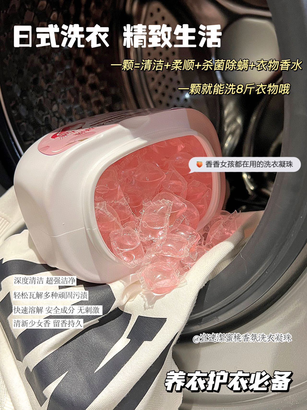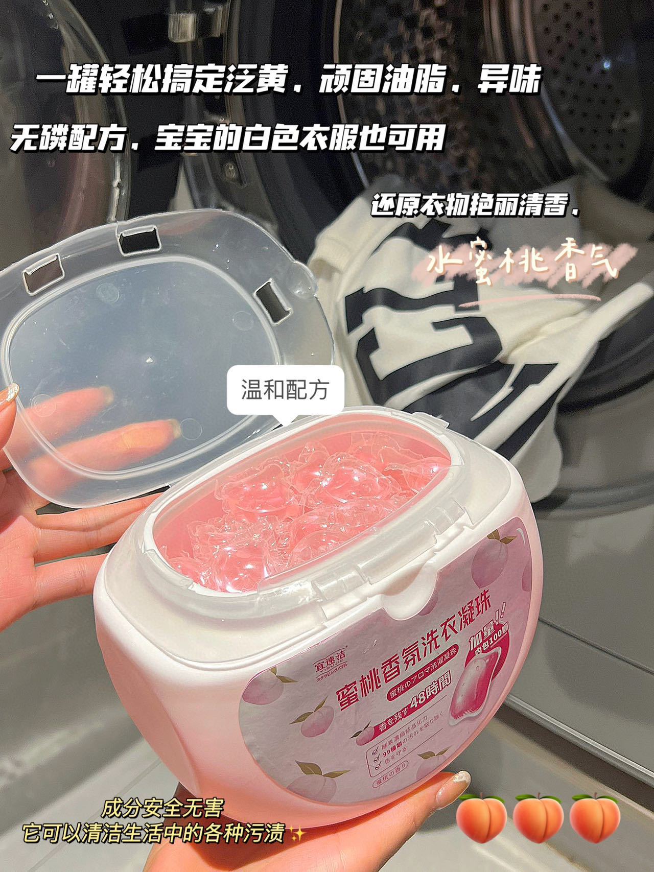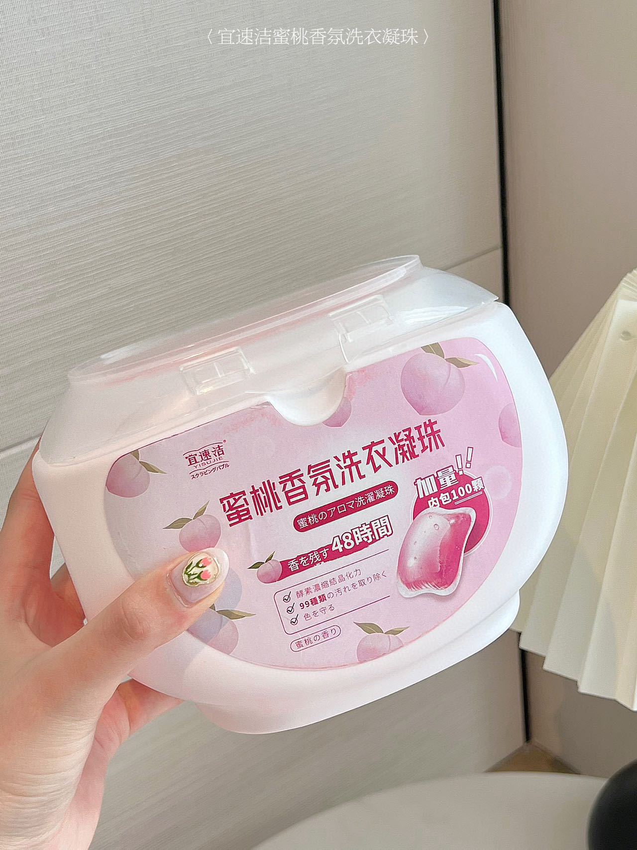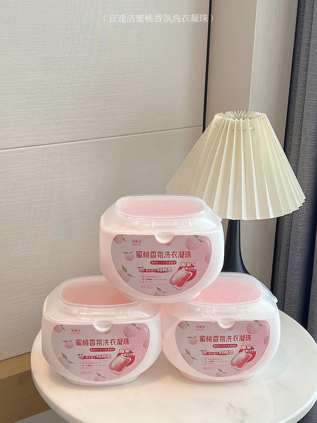 Cápsulas de Detergente para Ropa con Aroma a Durazno, una Caja de 100, Fragancia Duradera, Limpieza Profunda, Suavizante y Quitamanchas 2 en 1