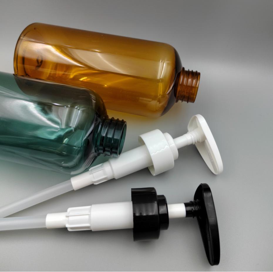 Blue bottle black pump head, Transparent color bottle black pump head, Black pump head through yellow bottle, ...