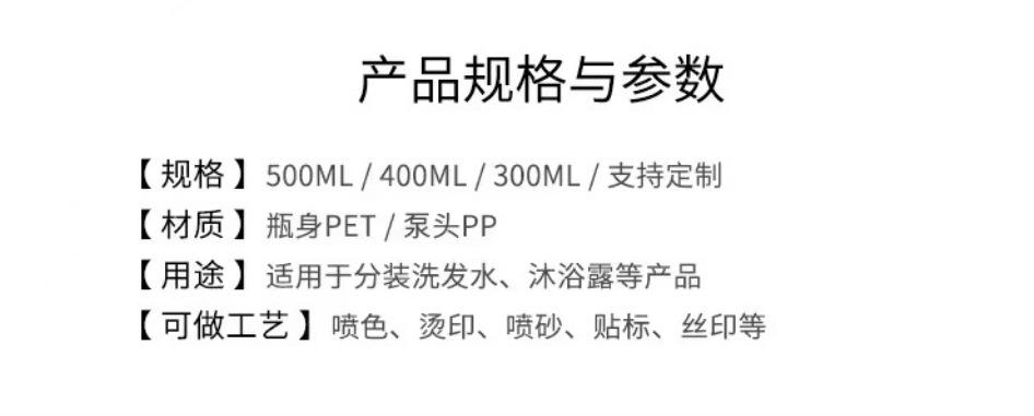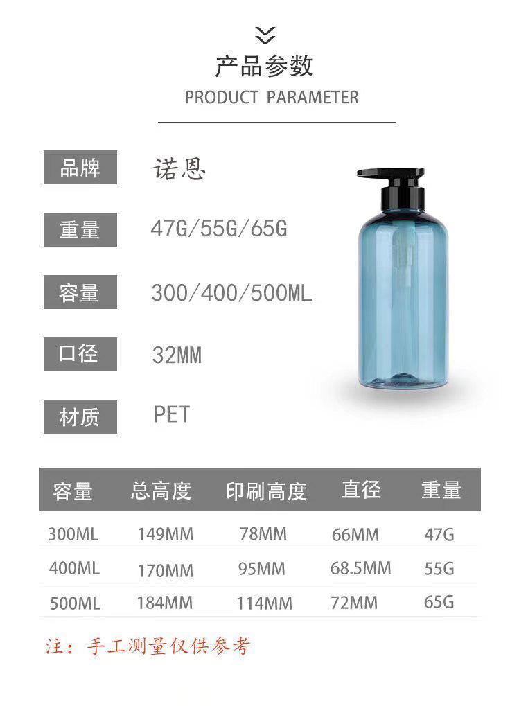 Botella de PET de gran capacidad (300 ml, 400 ml y 500 ml), para champú, gel de ducha y desinfectante de manos.