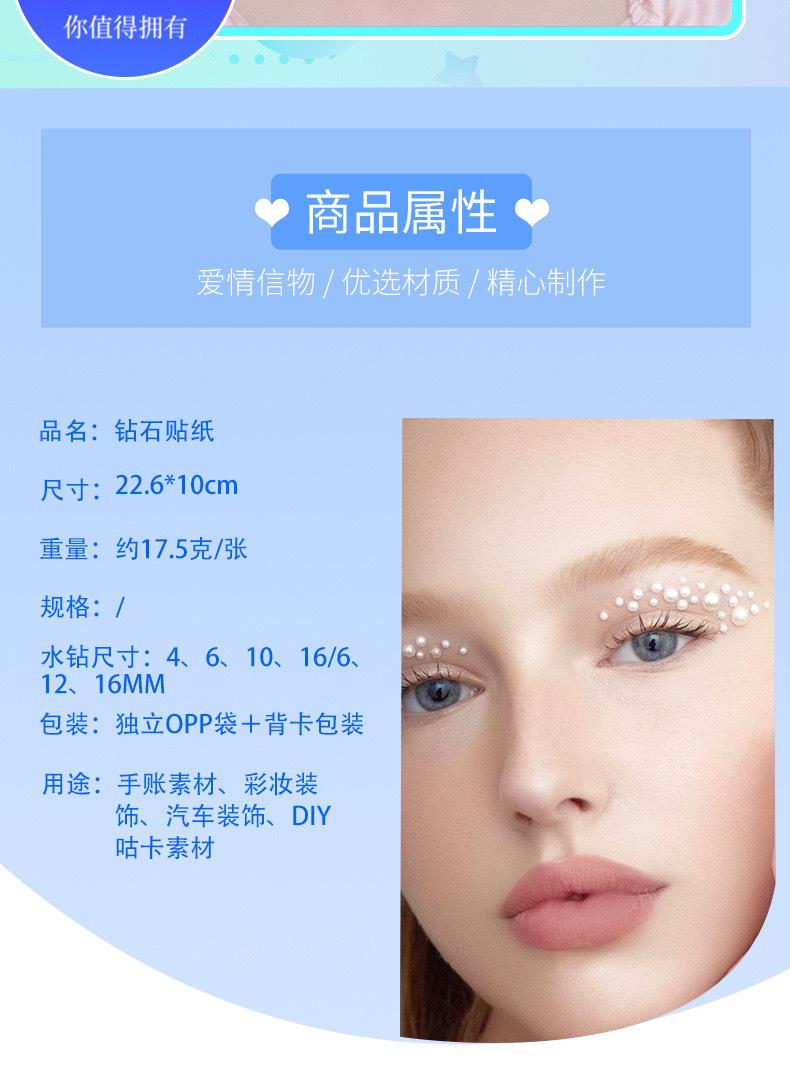 Pegatinas Tridimensionales para Niñosren, Pegatinas de Diamantes de Perlas para la Cara, Pegatinas Decorativas de Diamantes, Maquillaje Niña Vestir Escenario Pegatinas para Cara Cejas