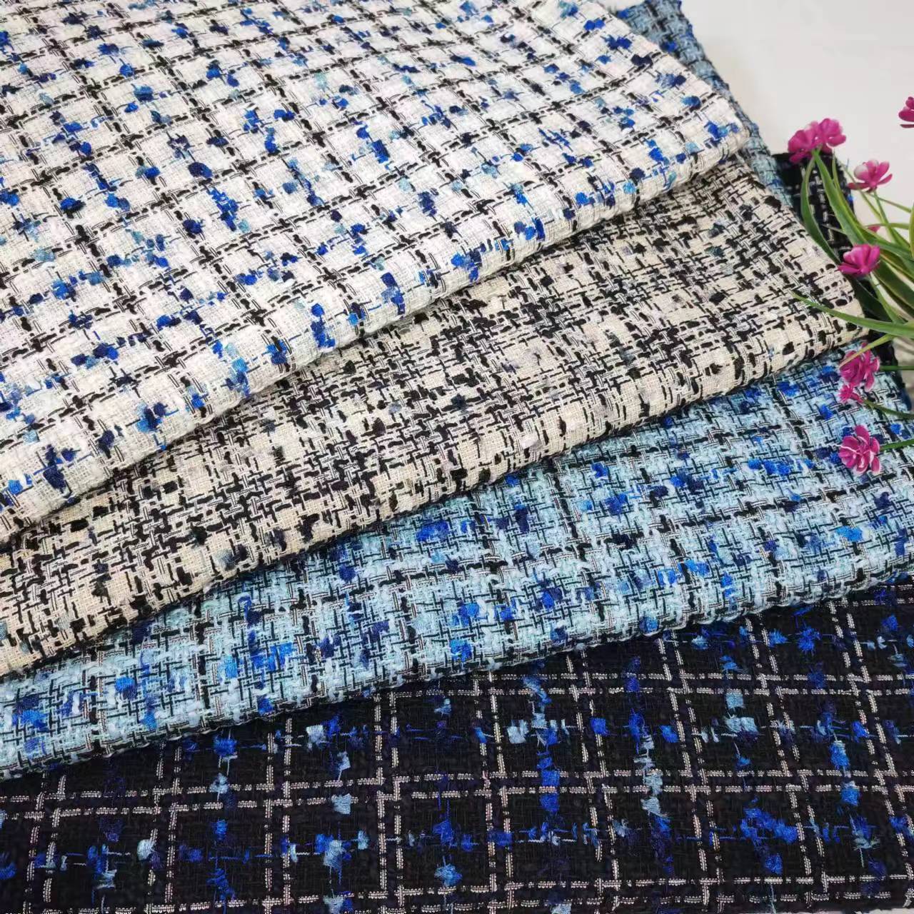 Fábrica Shaoxing Ke Qiao, abrigo de punto, traje de moda, falda, ropa para niños, sombreros, bolsos, otoño e invierno, pequeño estilo fragante enrejado
