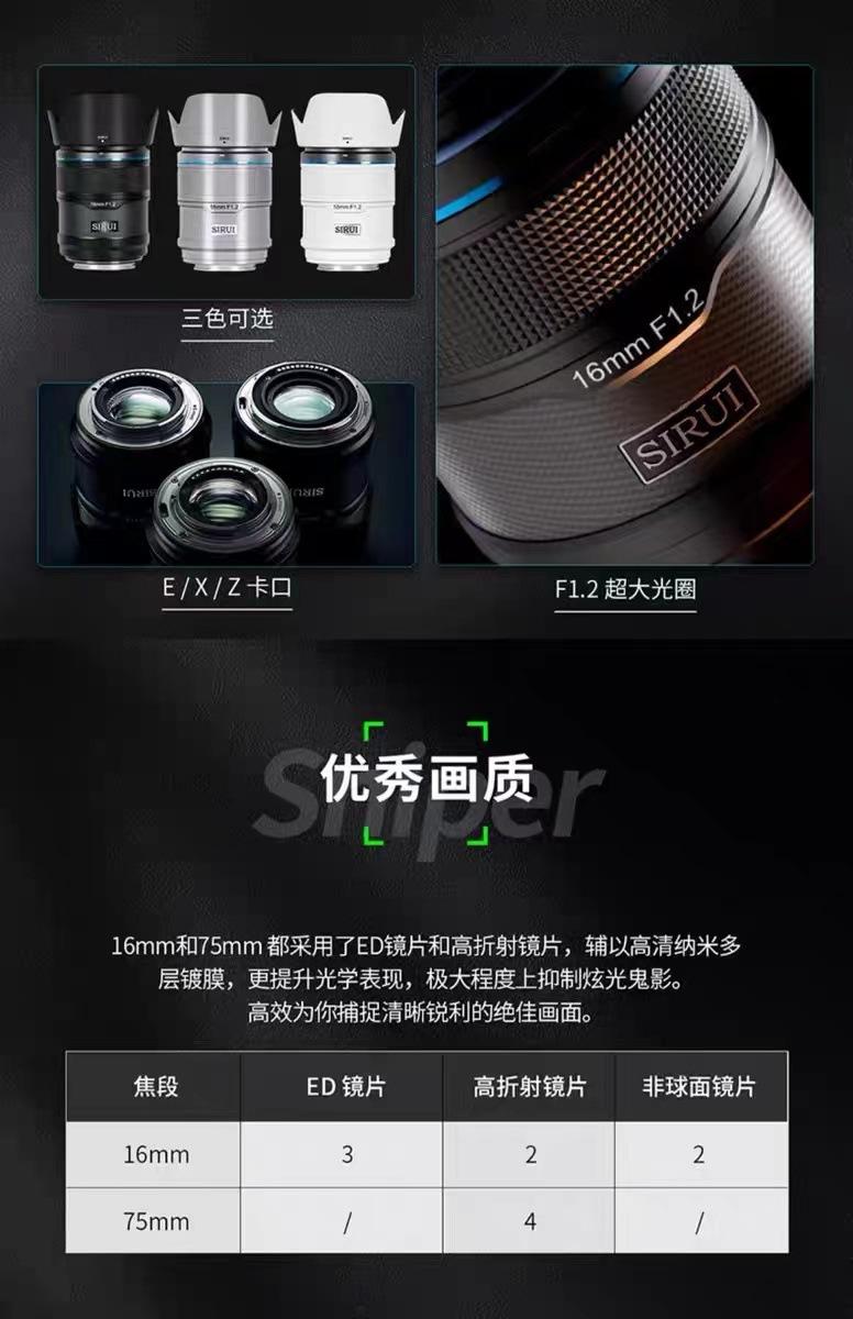 16mmF1.2 sony E port (white, black, silver optional), 16mmF1.2 fuji X mouth (white, black, silver optional), 1...