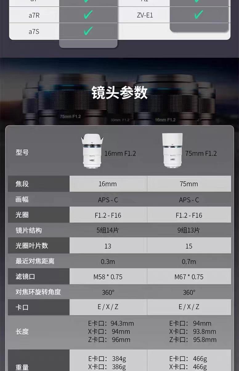 16mm/75mmF1.2 sEt sony E port (black, whitE, silvEr optional)