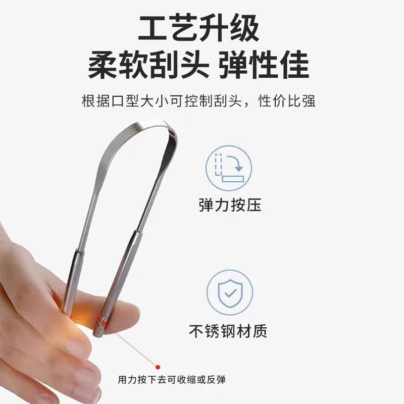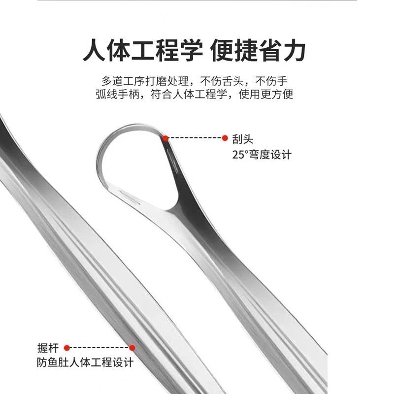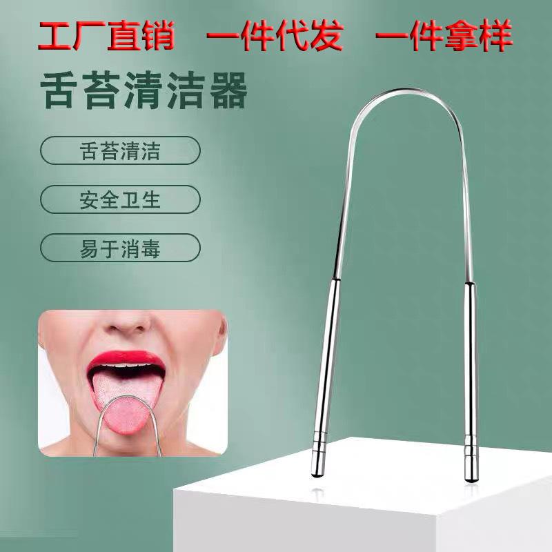Raspador de lengua de acero inoxidable de venta caliente transfronteriza, limpiador de lengua, cuidado bucal para el mal aliento, raspador de lengua.