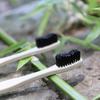 Cepillo de dientes de bambú biodegradable, empaquetado en bolsa de papel kraft, logotipo personalizable.