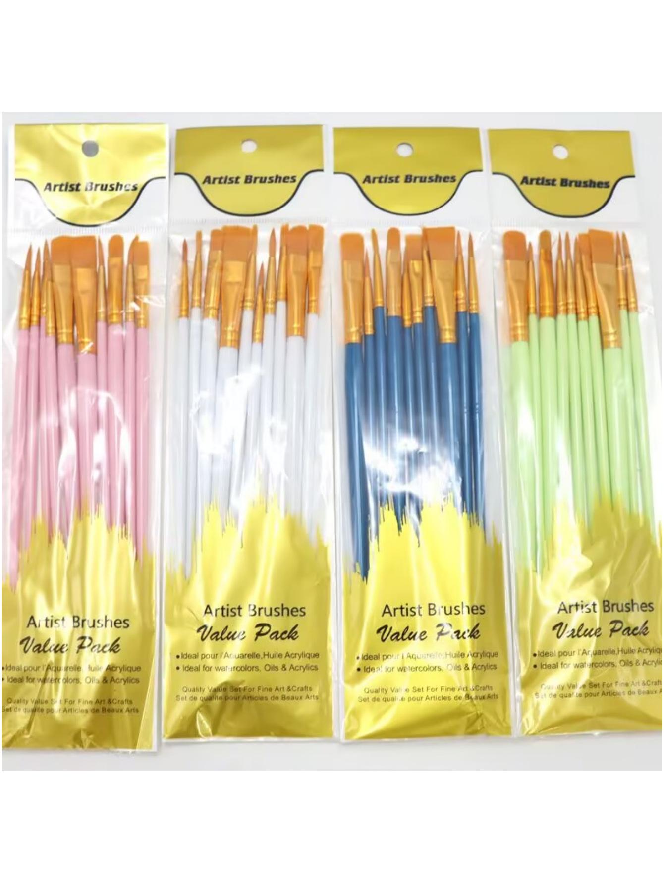 Juego de 10 pinceles para óleo, varilla de plástico, para pintura artística, acuarela, gouache, pincel para óleo.