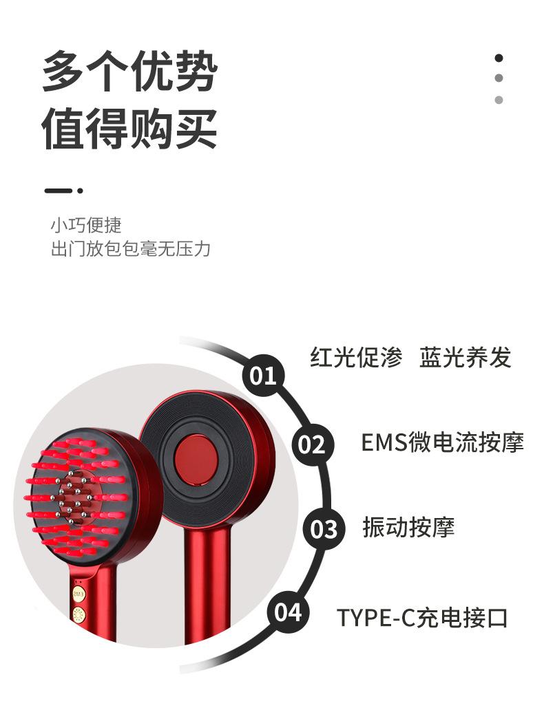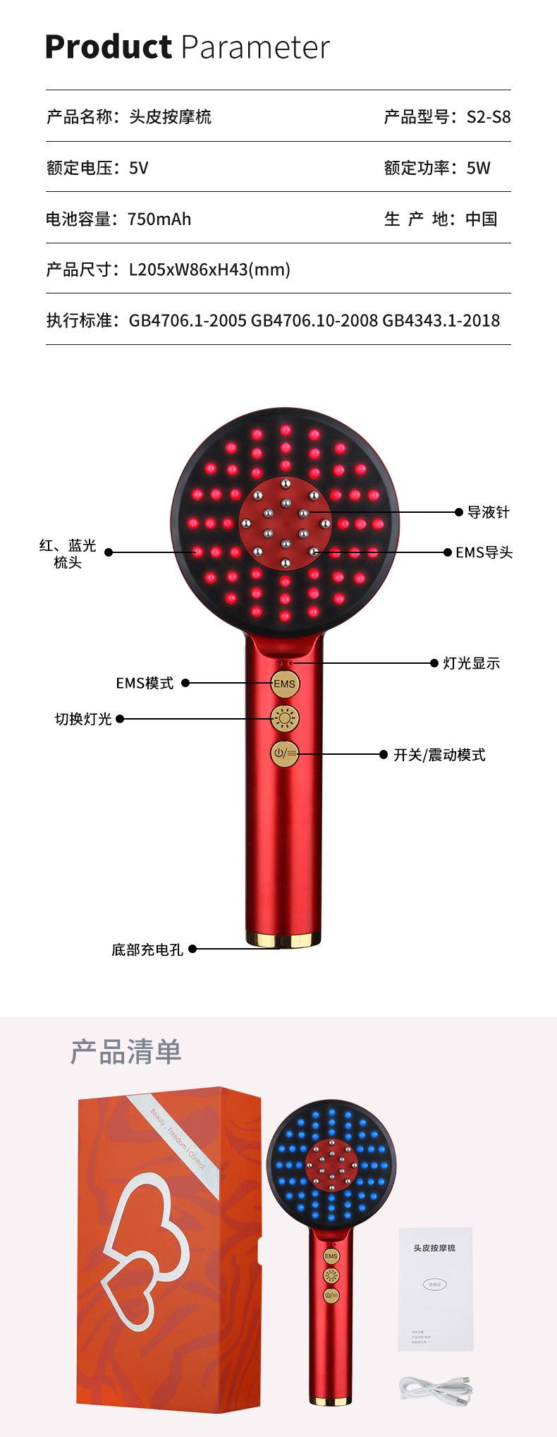 Peine de masaje eléctrico para el cuero cabelludo, peine para untar con aceites esenciales, peine rojo y azul para la prevención de la caída del cabello, cuidado del cabello, peine para el crecimiento del cabello, cuidado del cabello, peine para el cuidado del cabello