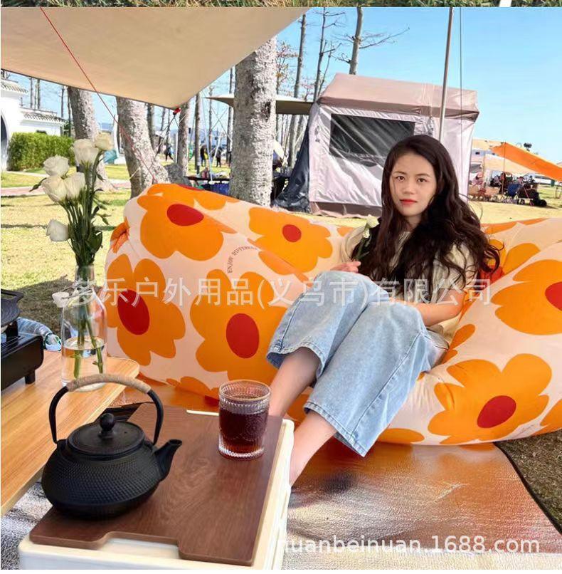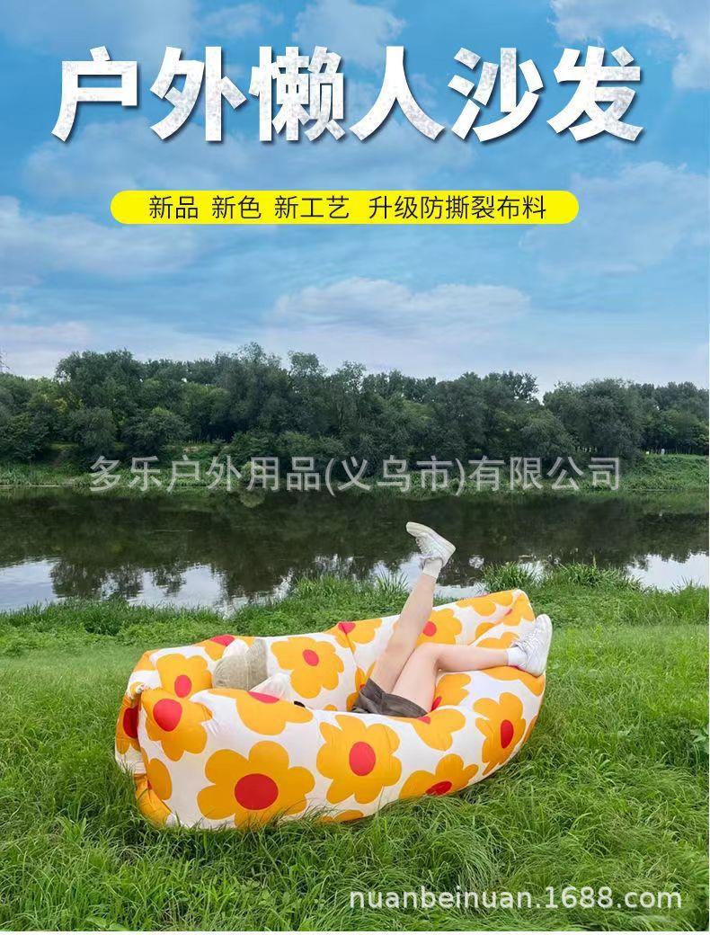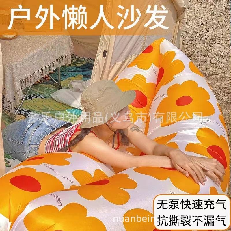 Sofá inflable para exteriores, plegable, portátil, amarillo y blanco, para picnic, camping, cama de aire de color sólido, muebles de exterior