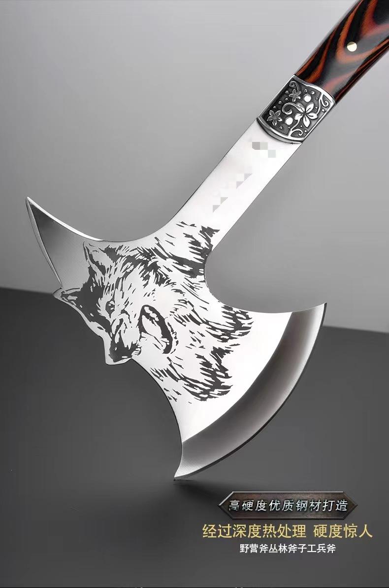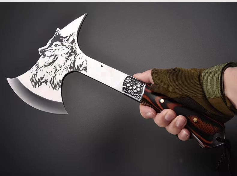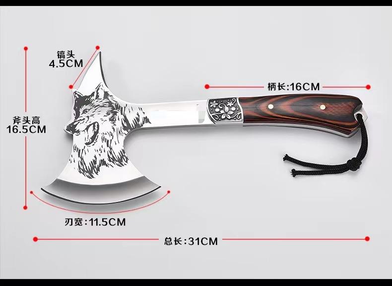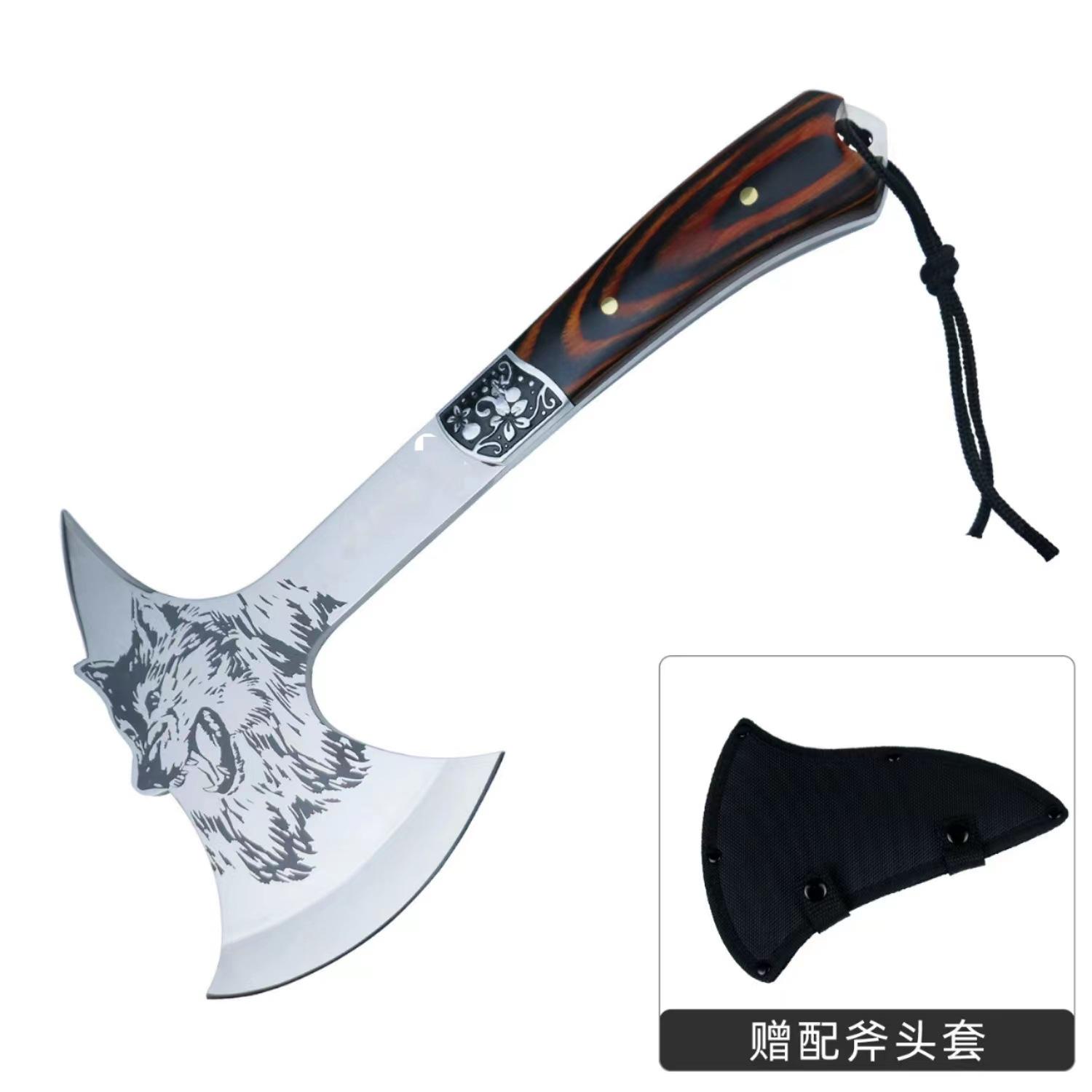 Hacha Cabeza de Lobo Hacha para Exterior Cuchillo Hacha para Carpintería Hacha para Fuego Hacha para Tala Hacha para Cortar Huesos Hacha para Partir Árboles Herramienta de Emergencia para Leña