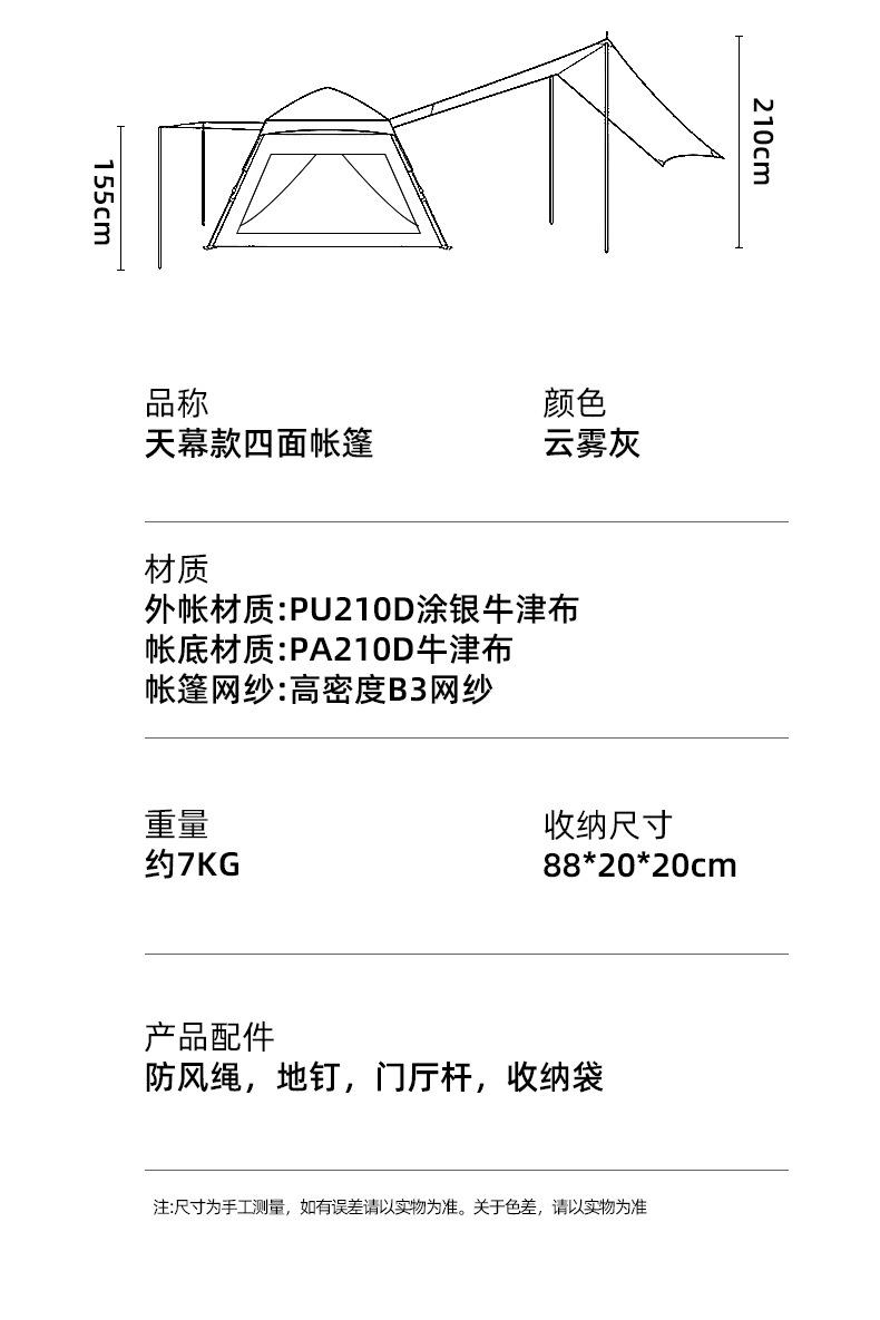 3-4 people cloud gray [silver coated] single tent, 5-8 people cloud gray [silver painted] single tent, Vinyl l...