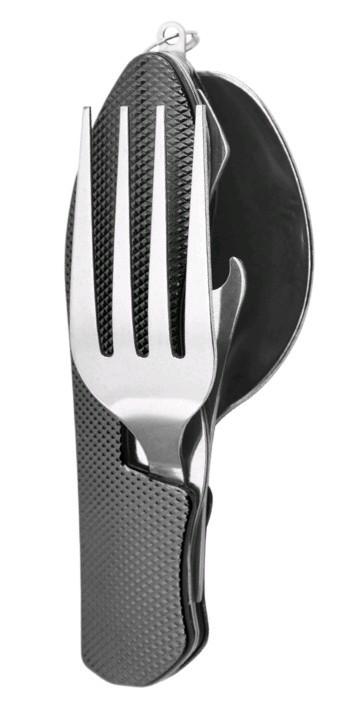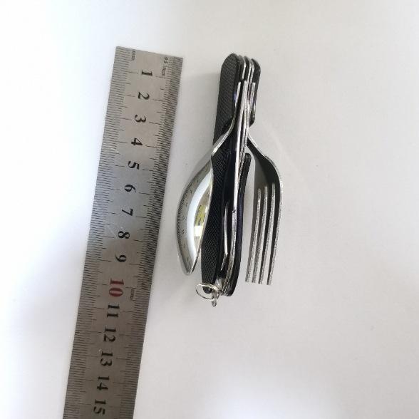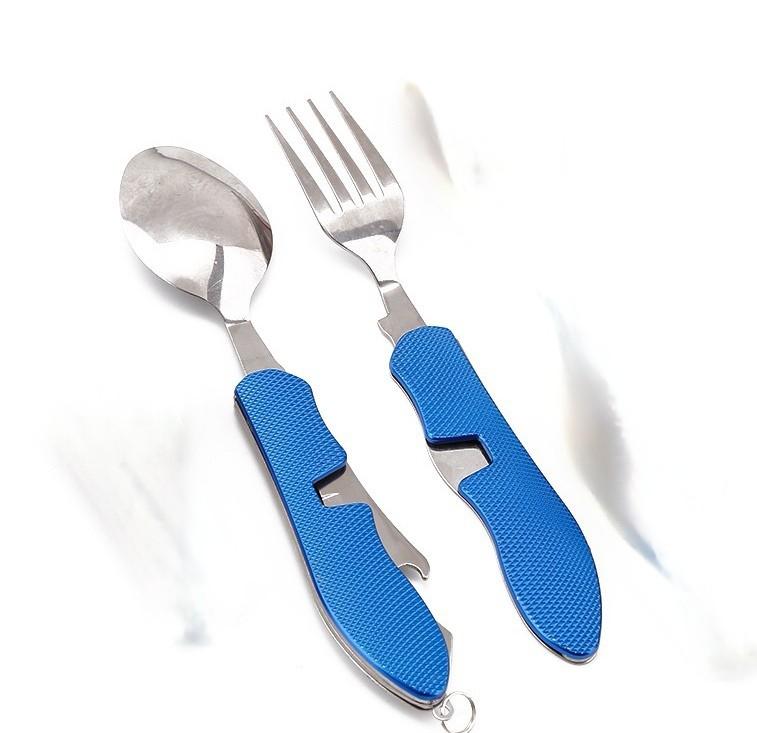 Cuchillo de tres operaciones con mango de aluminio directo de fábrica, acero inoxidable, para camping, plegable, desmontable, combinación de tenedor y cuchara, vajilla multifuncional para exteriores