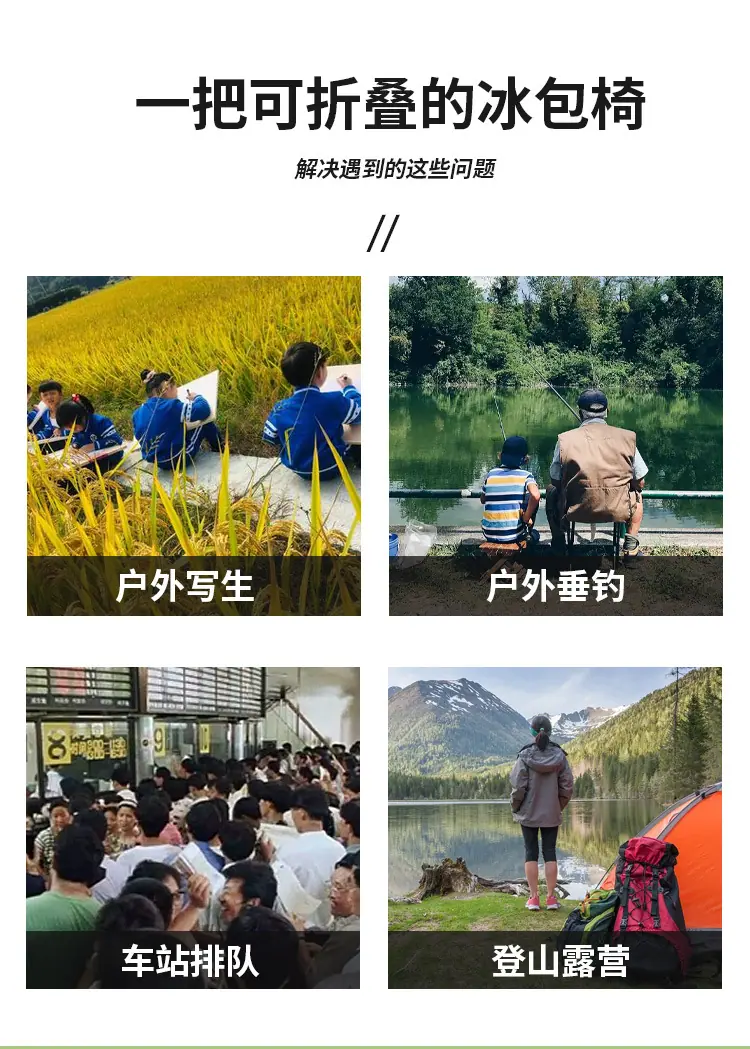 Taburete plegable portátil para acampar, con bolsa de hielo, ligero, multifuncional, para exteriores, transfronterizo, para pesca y acampada