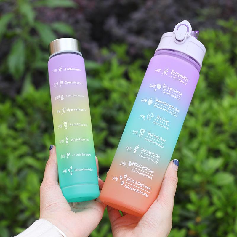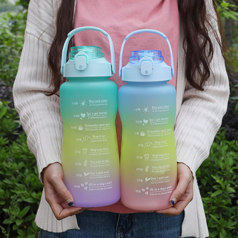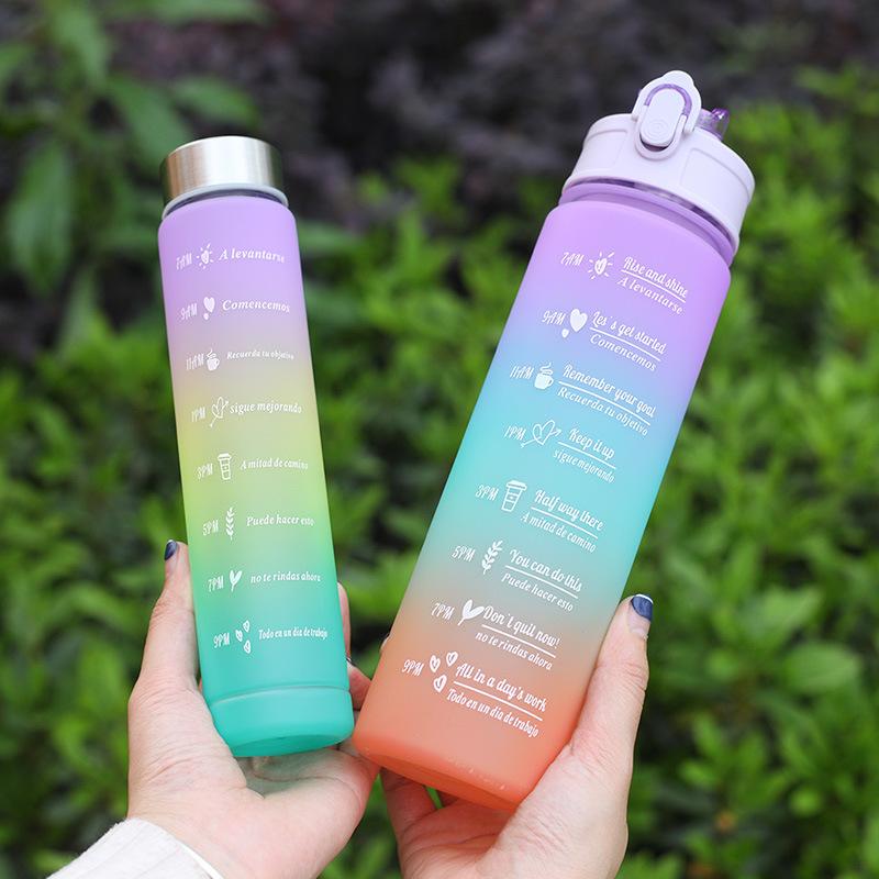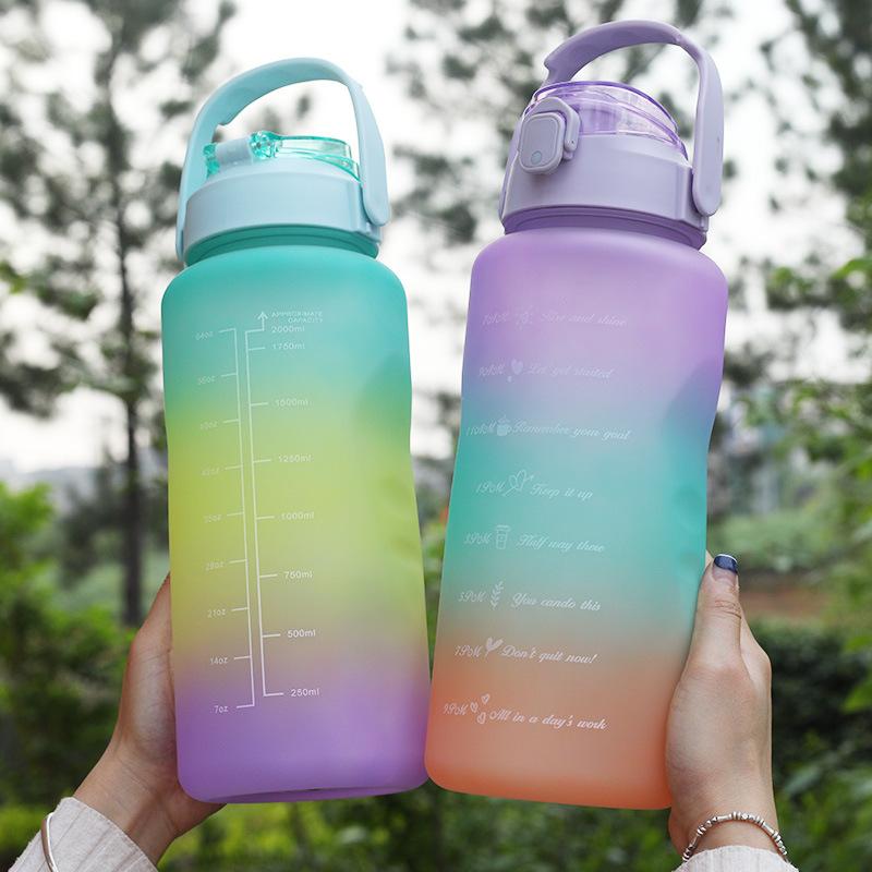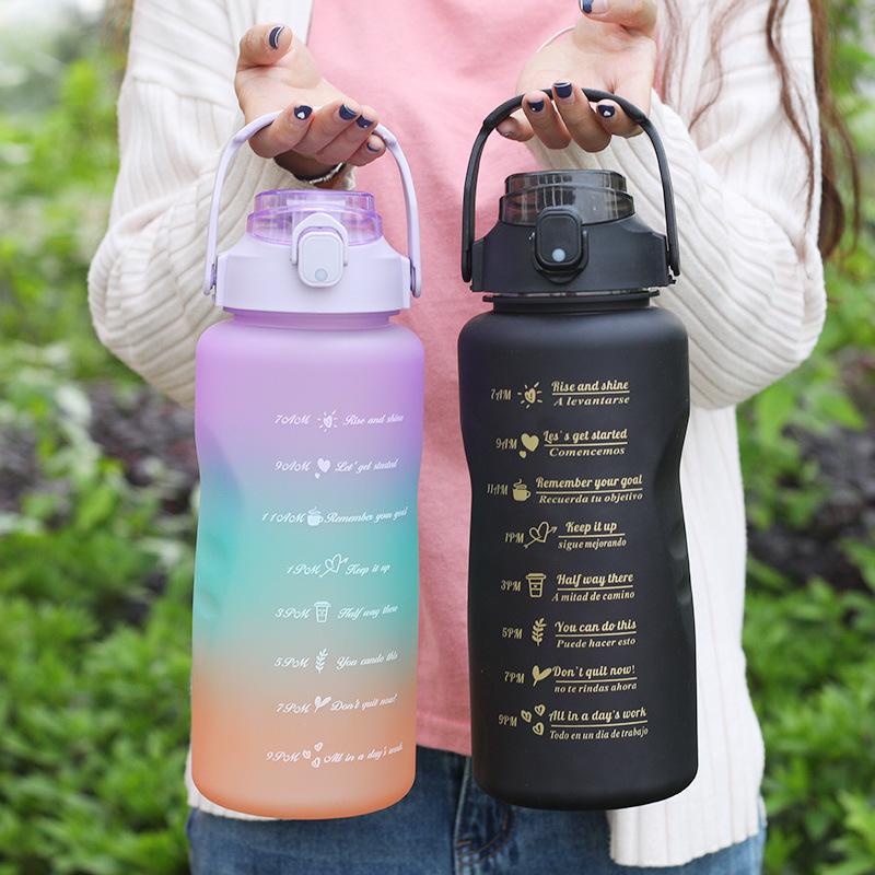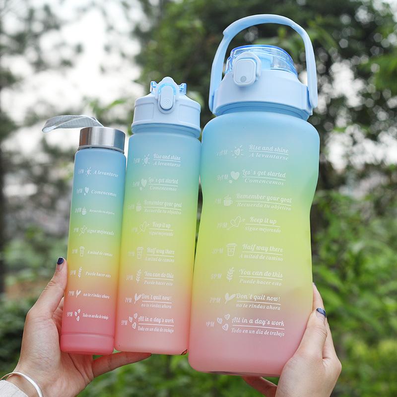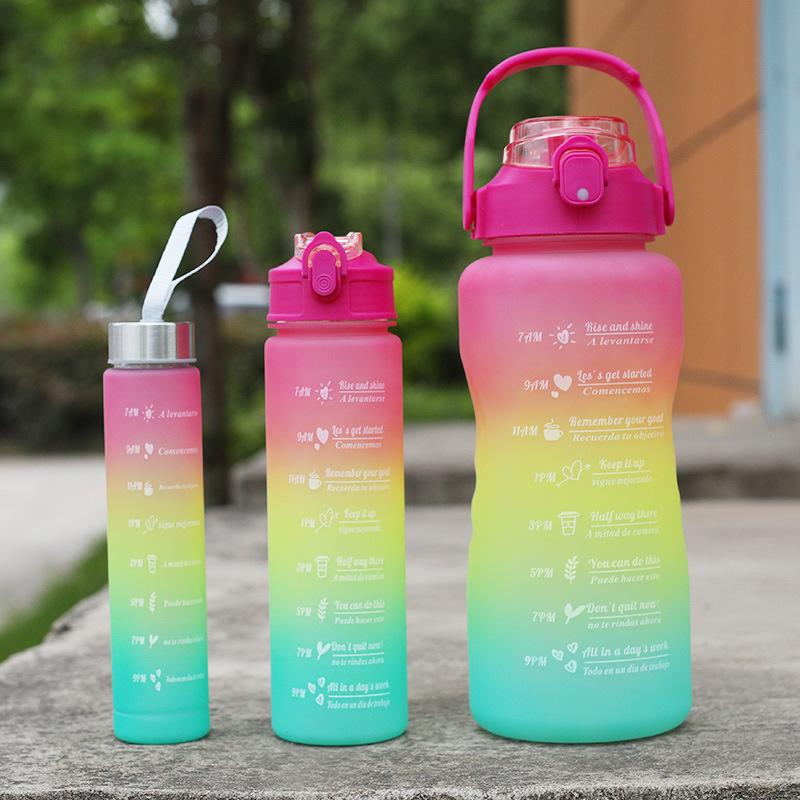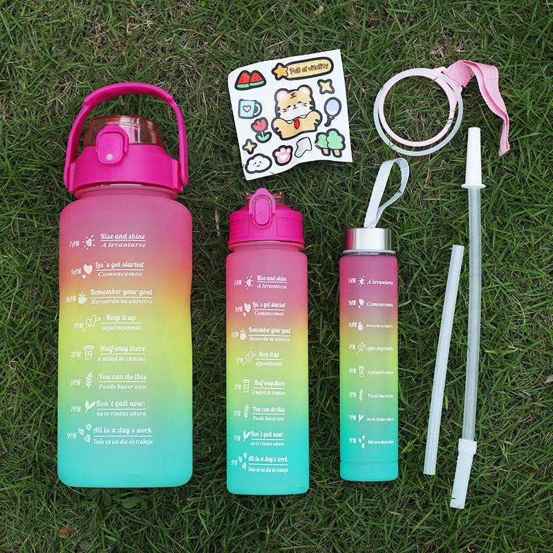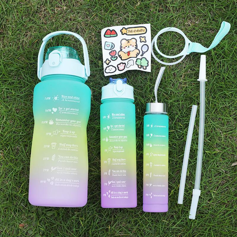 Vaso de plástico portátil con degradado de gran capacidad para deportes al aire libre con pajita, vaso de agua esmerilado, set deportivo transfronterizo de tres piezas por lote