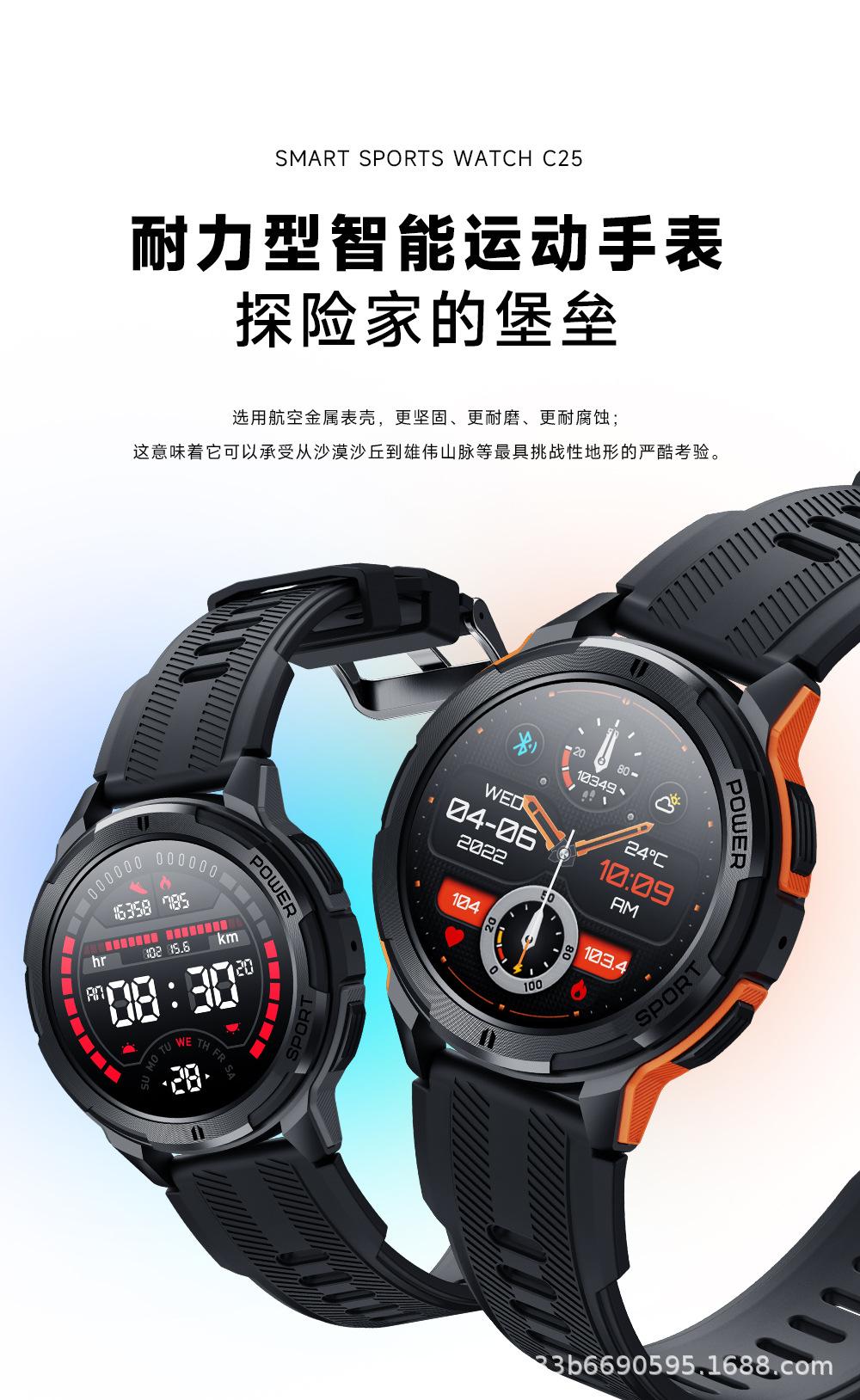 Nuevo reloj pulsera inteligente C25 a prueba de tres para exteriores detección de frecuencia cardíaca oxígeno en sangre podómetro de ejercicio llamada Bluetooth AMOLE