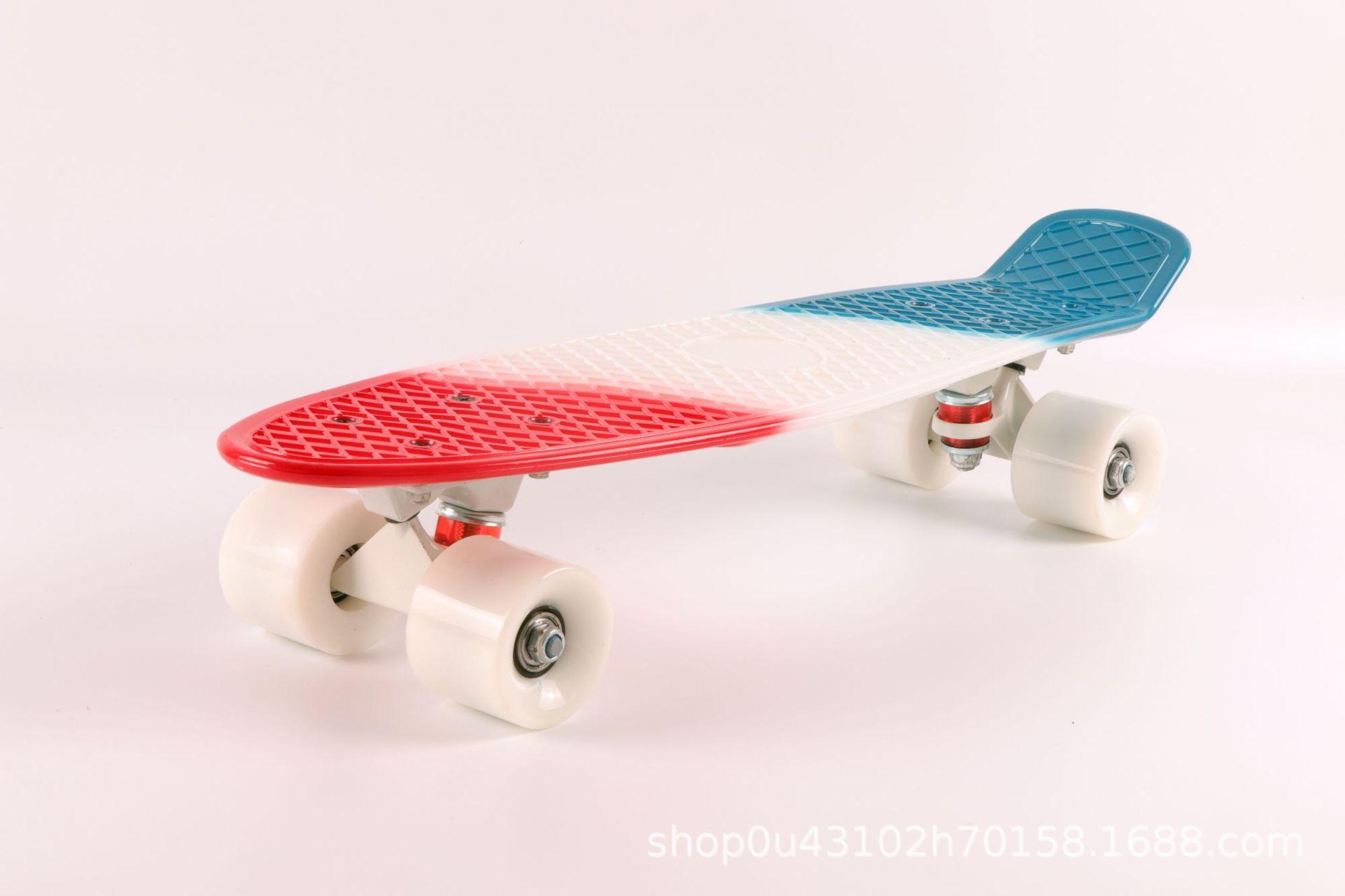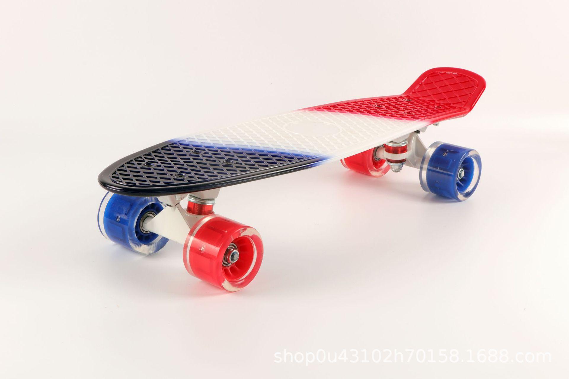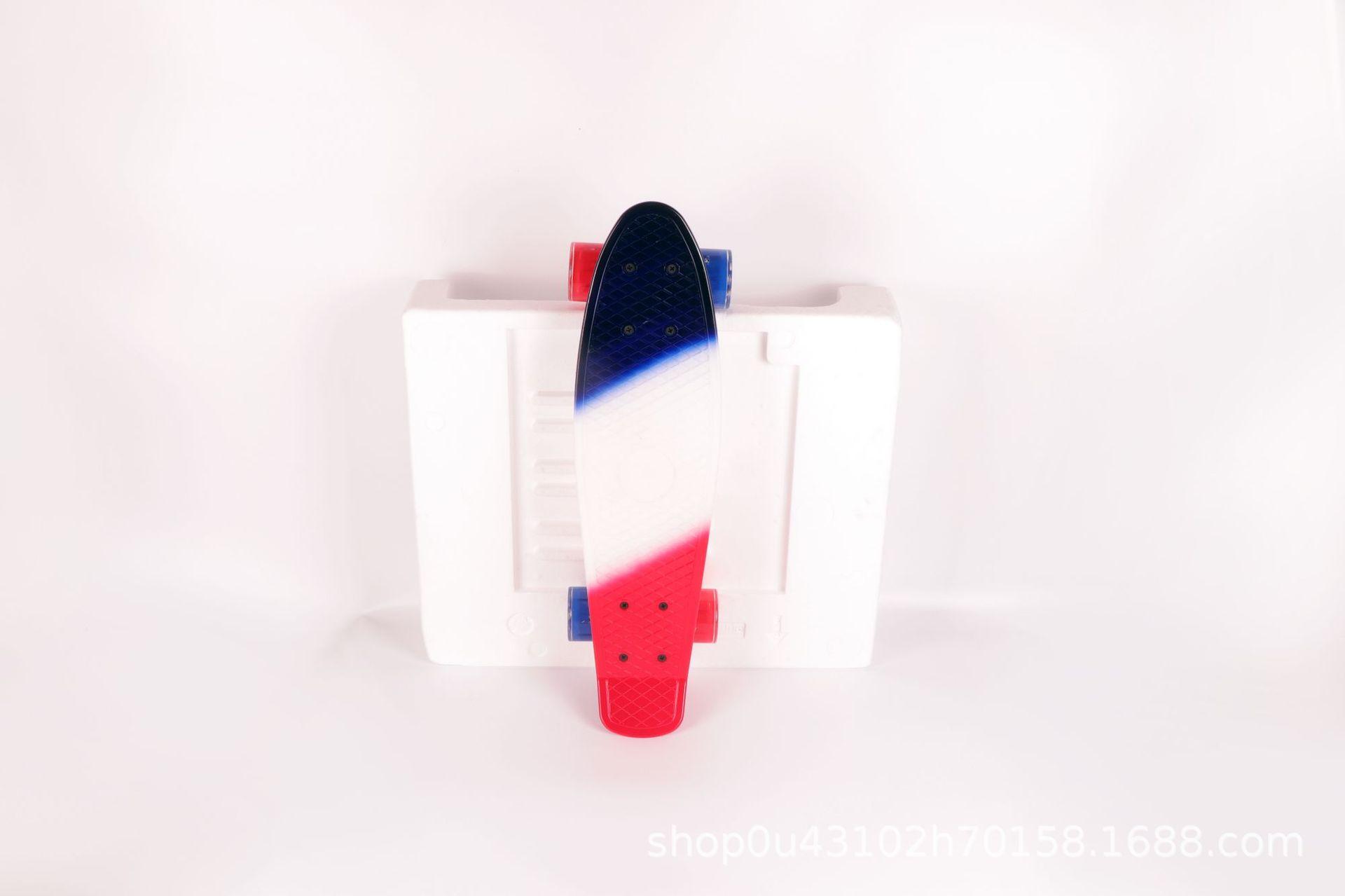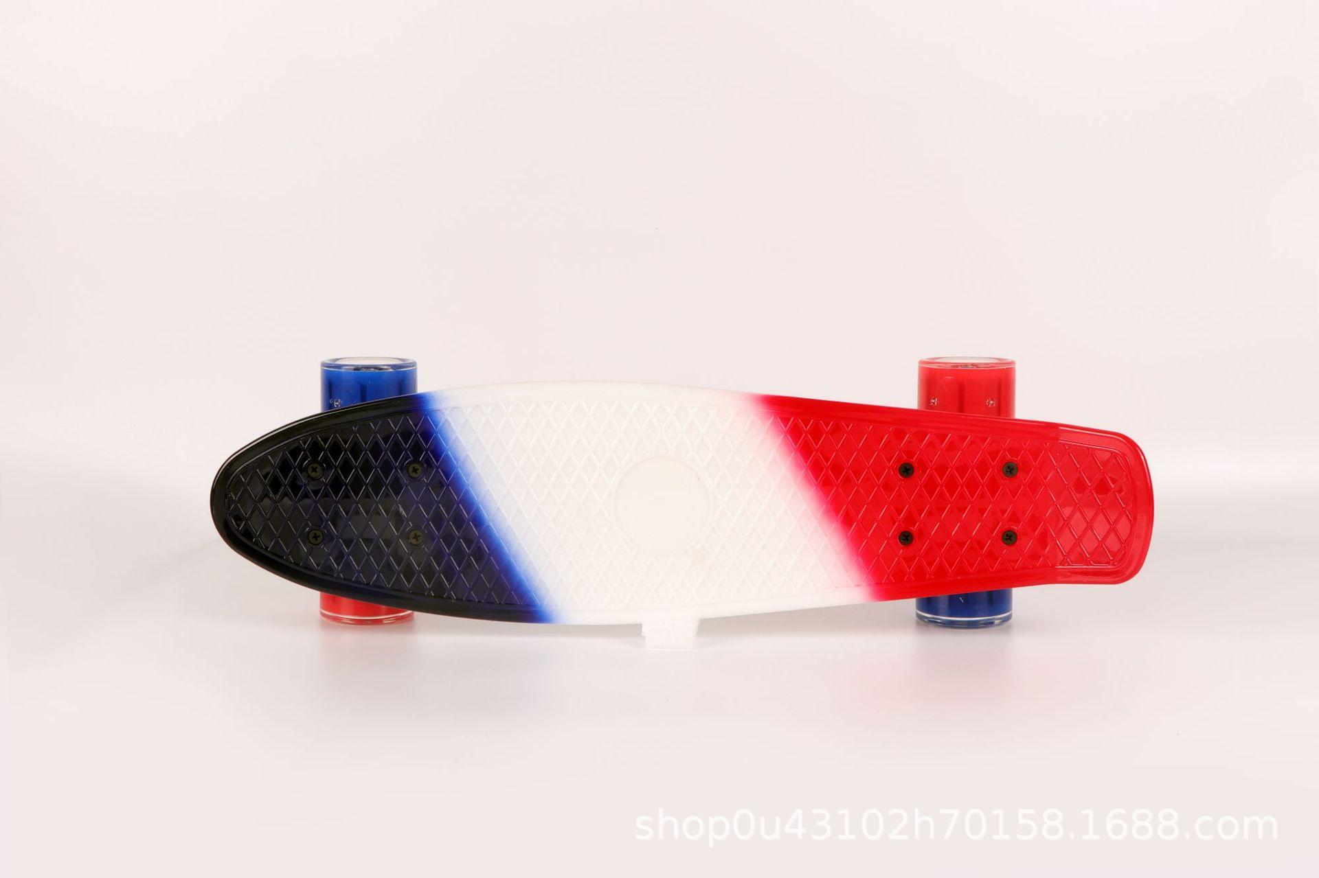Fabricantes transfronterizos venta al por mayor cuatro ruedas tres colores tabla de pez pequeña rocker único rueda de PU con luz 3-6 plástico patinete para niños adultos