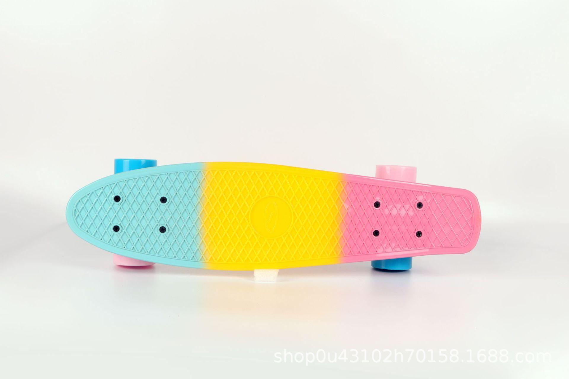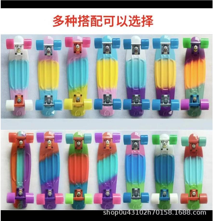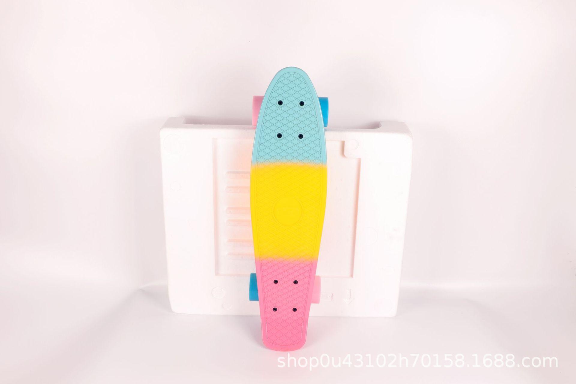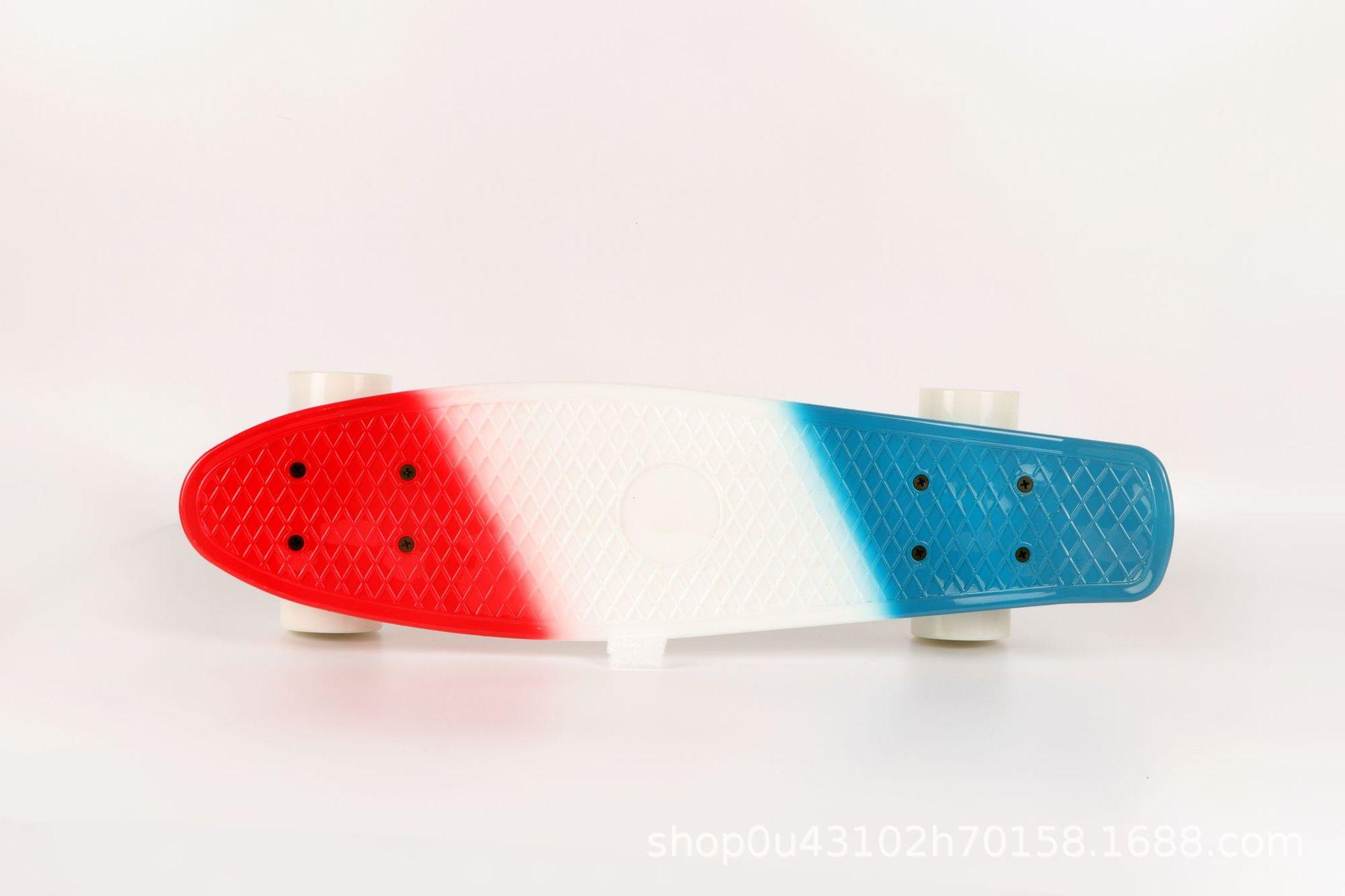 Fabricantes transfronterizos venta al por mayor cuatro ruedas tres colores tabla de pez pequeña rocker único rueda de PU con luz 3-6 plástico patinete para niños adultos