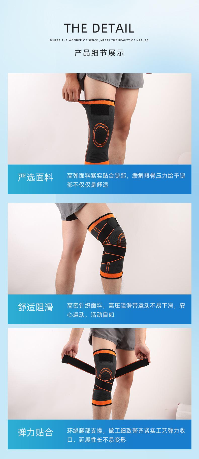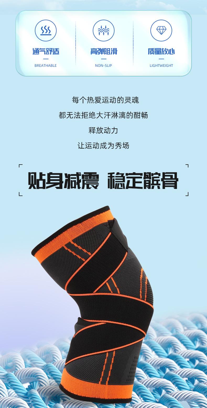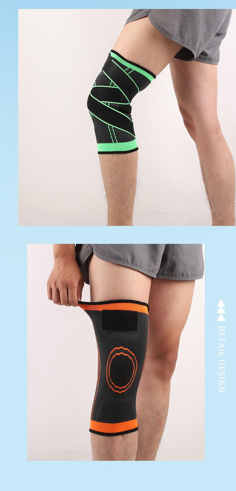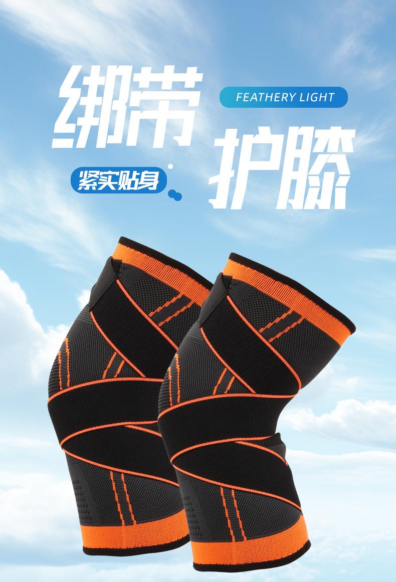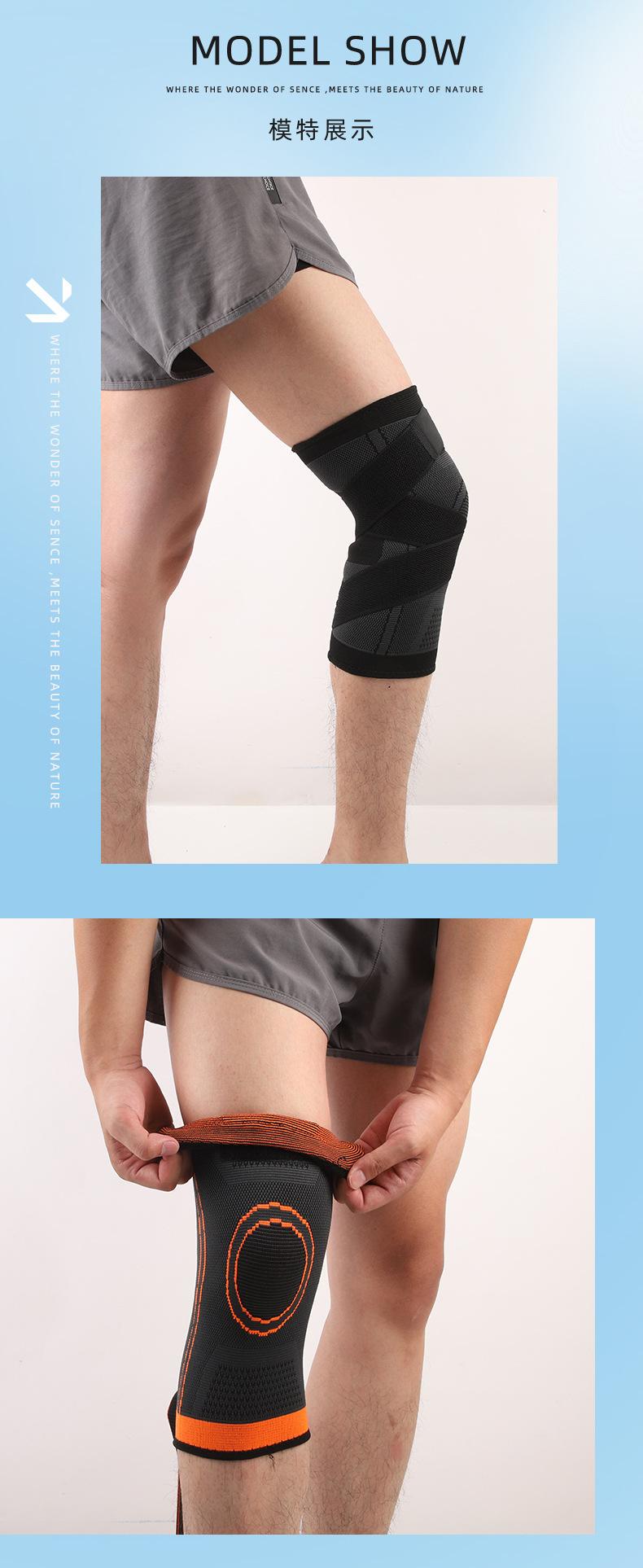 Rodilleras presurizadas con correa para deportes al aire libre, rodilleras de punto de nailon transpirables para baloncesto, rodilleras con correa deportiva