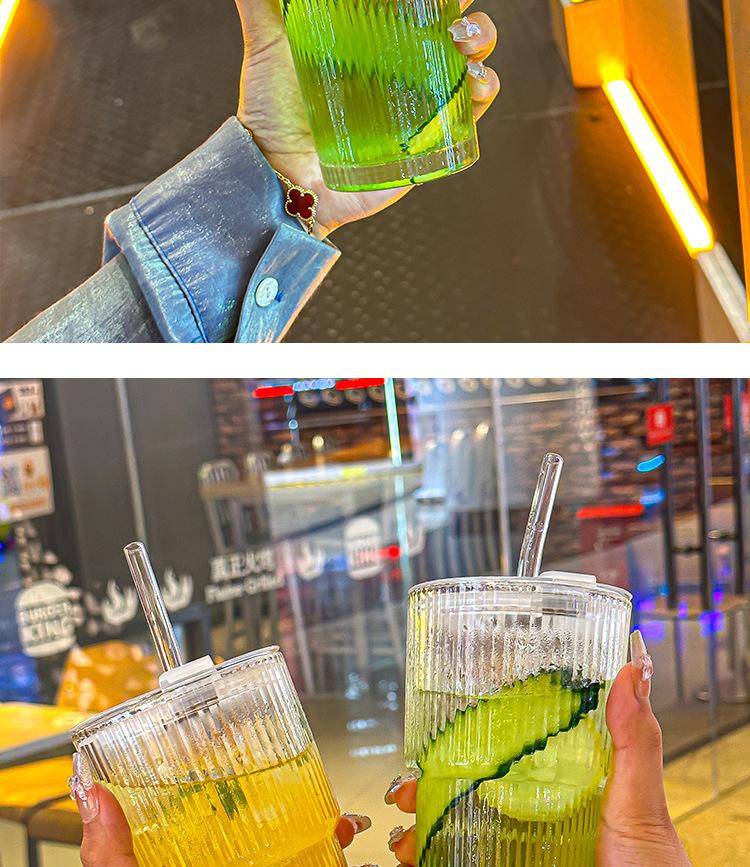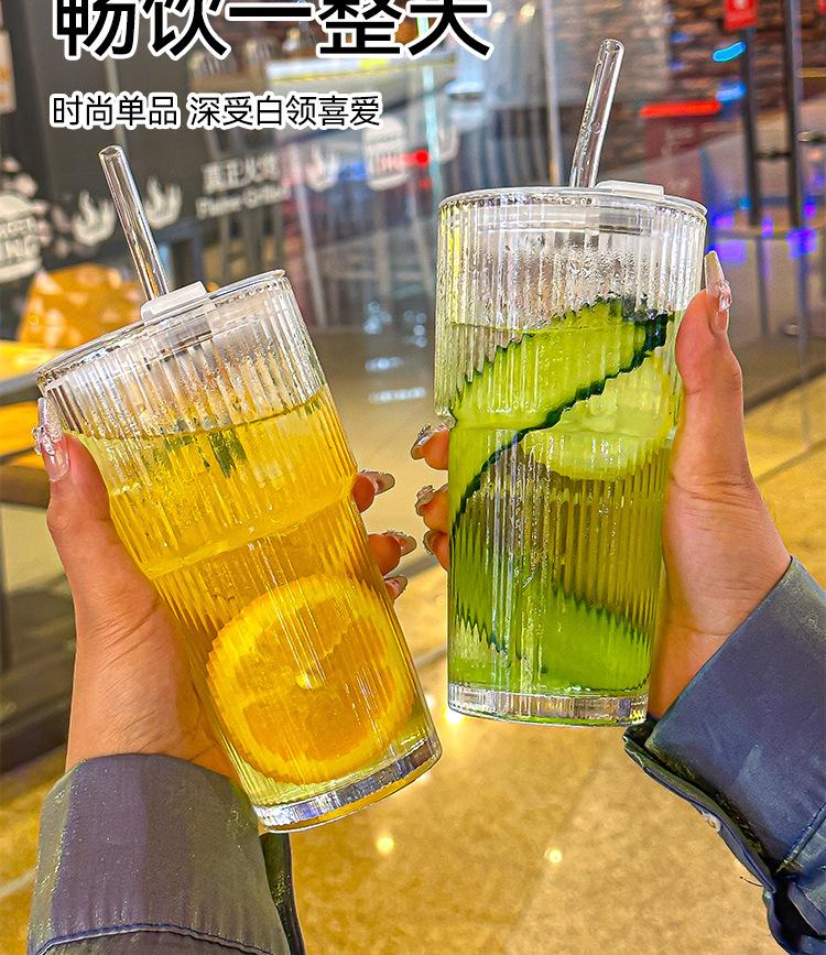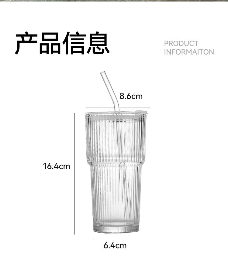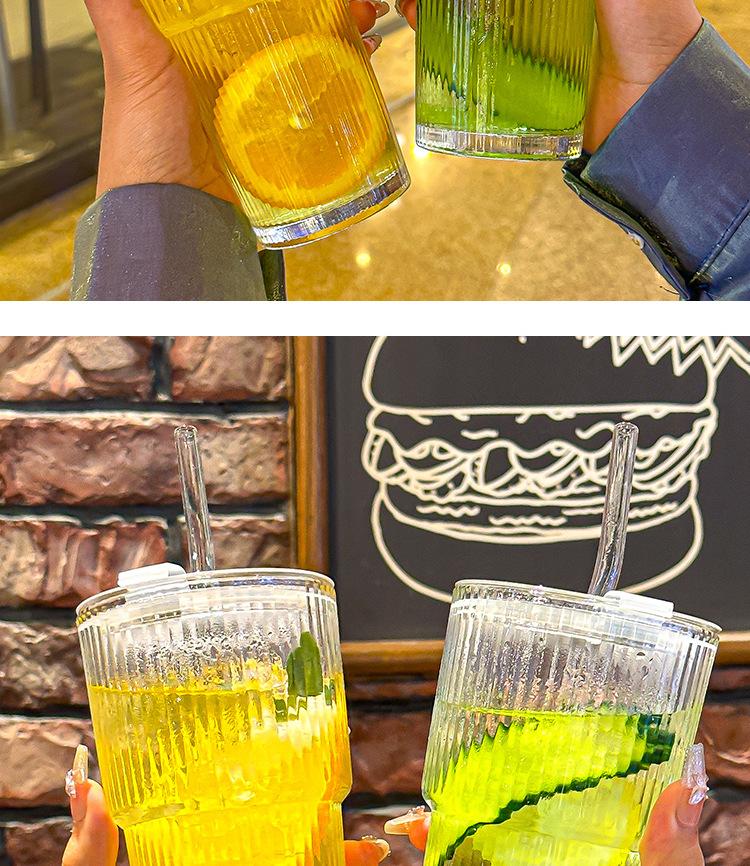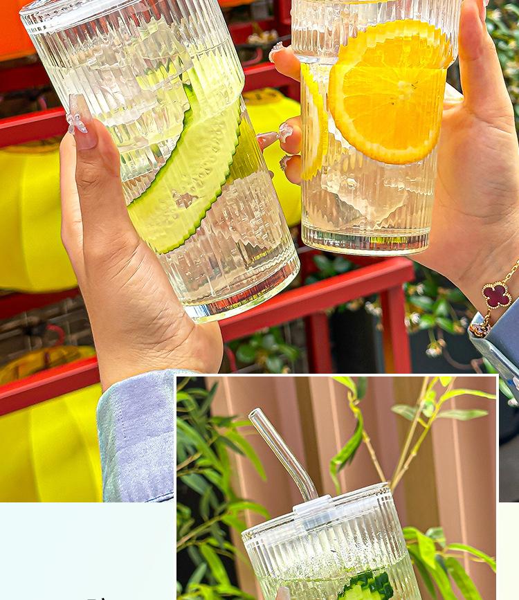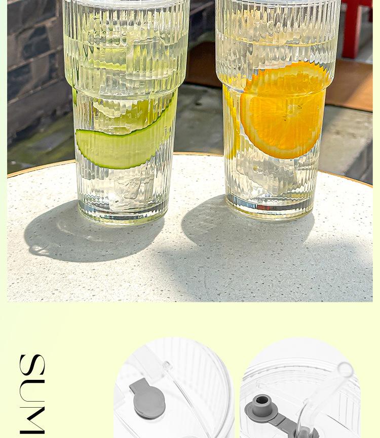 Transparent vertical pattern cup + cup lid + straw, Transparent vertical pattern cup [naked cup]
