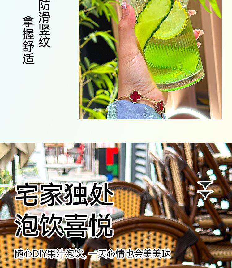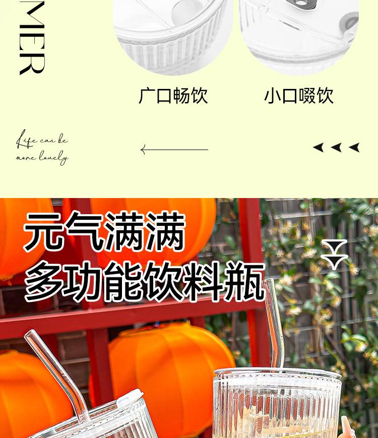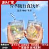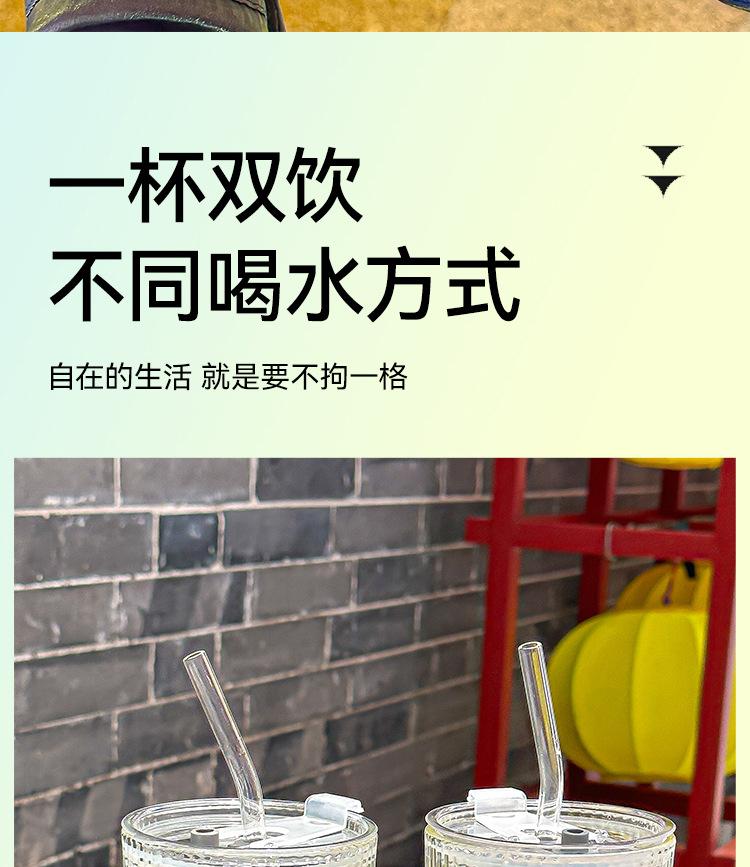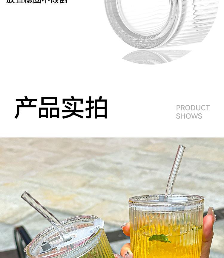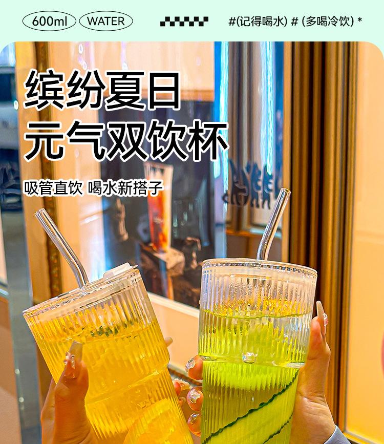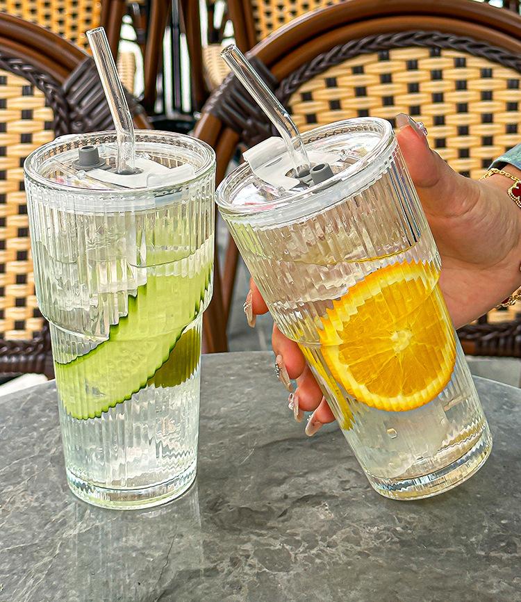Transparent vertical pattern cup + cup lid + straw, Transparent vertical pattern cup [naked cup]