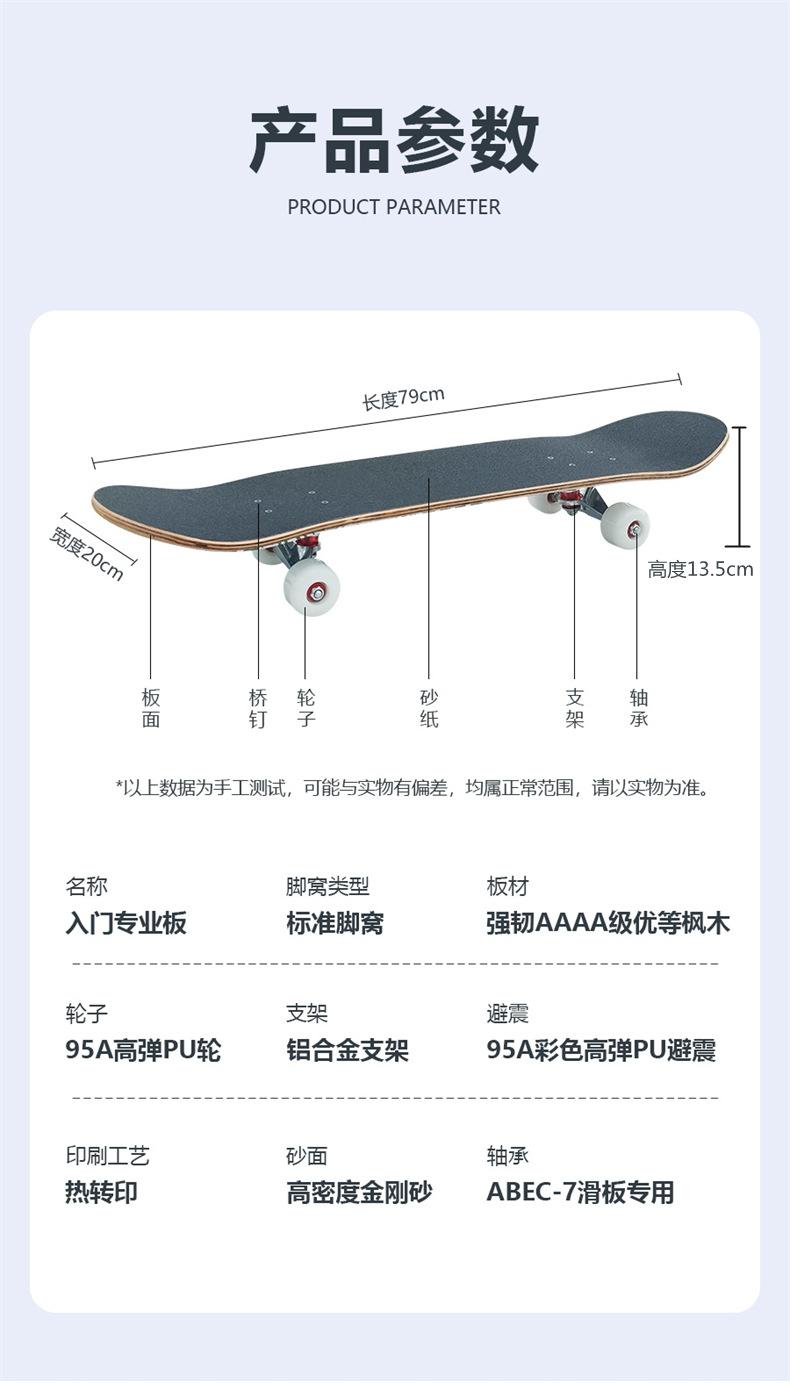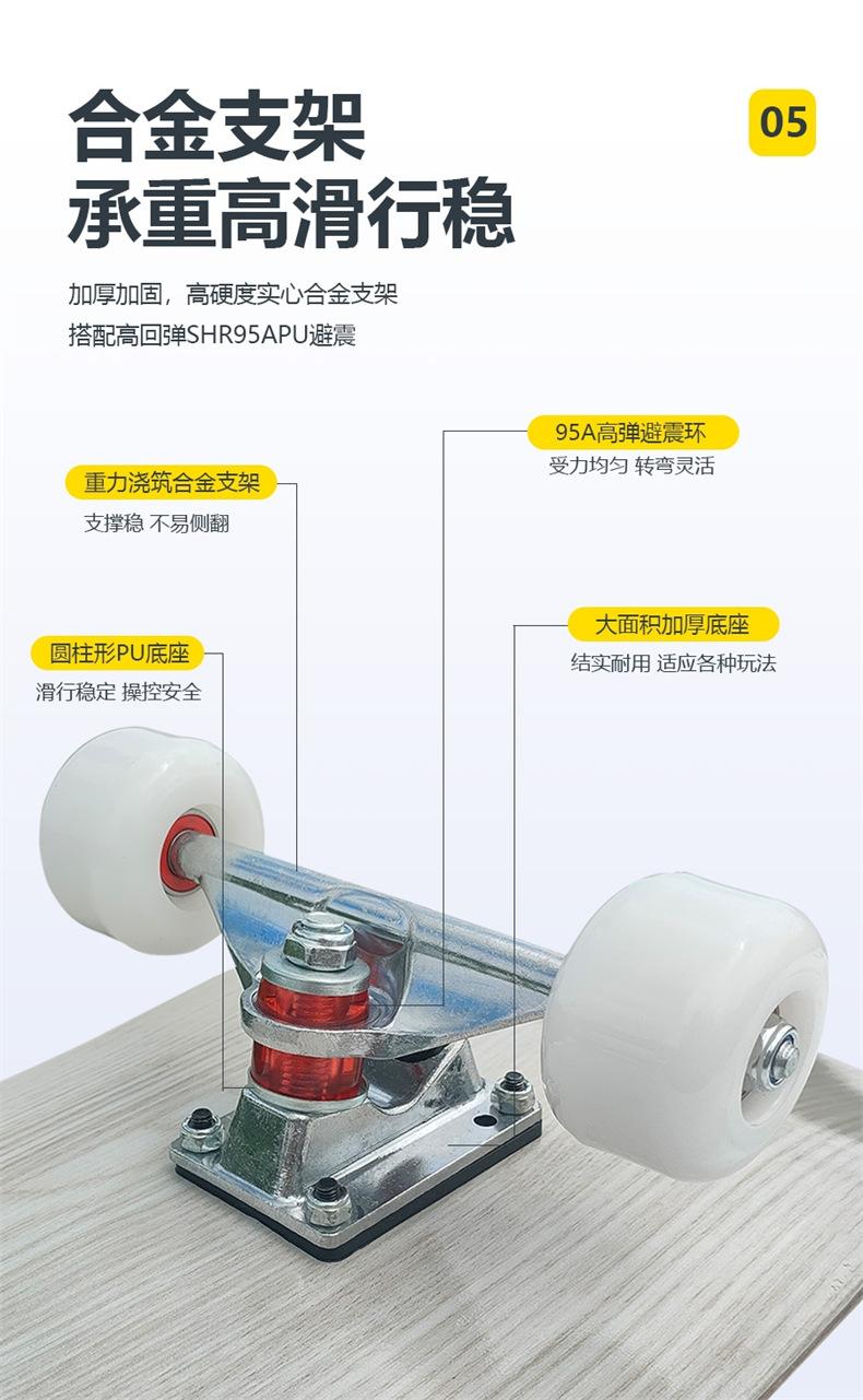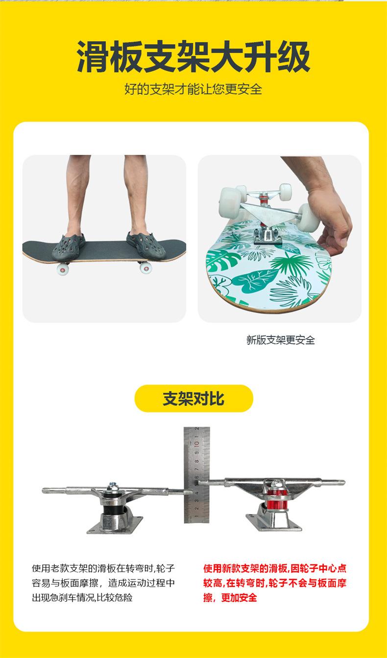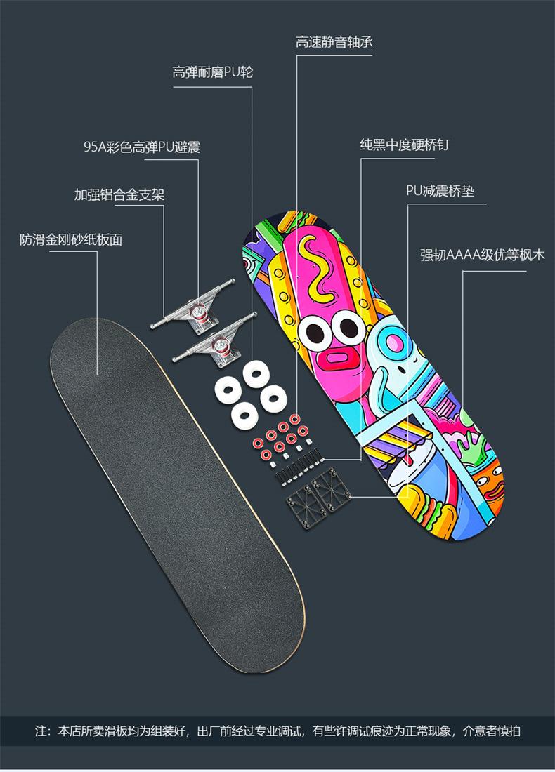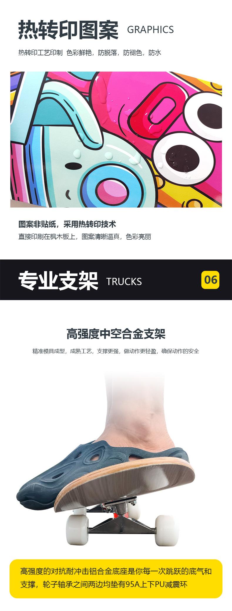 Skateboard de transferencia térmica: tabla de arce, soporte de aleación de aluminio (carga de 300 catties, adecuado para adultos y niños), patrón inferior de transferencia térmica - superficie del patrón impermeable, superficie de la tabla de cuero esmerilado diamante negro (impermeable, antideslizante y resistente al desgaste)