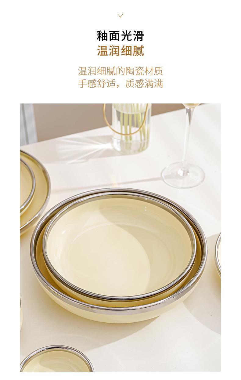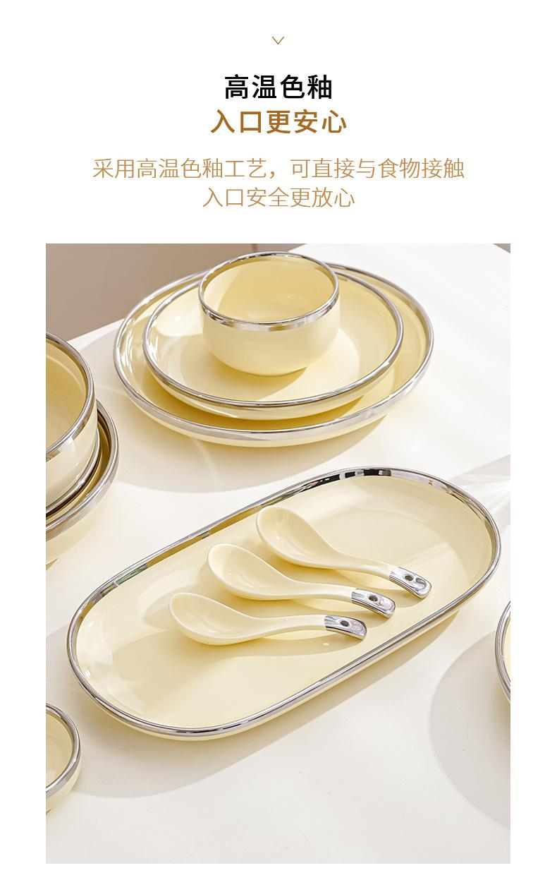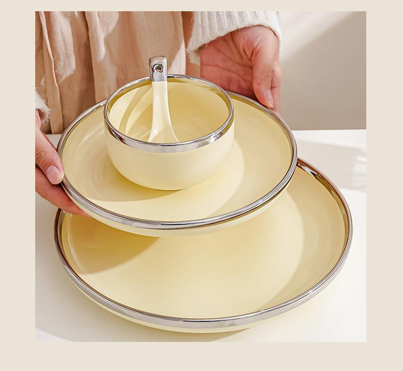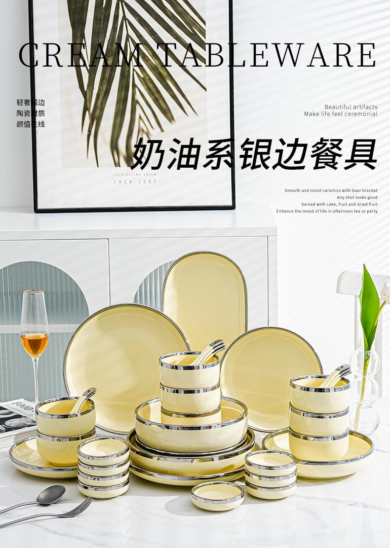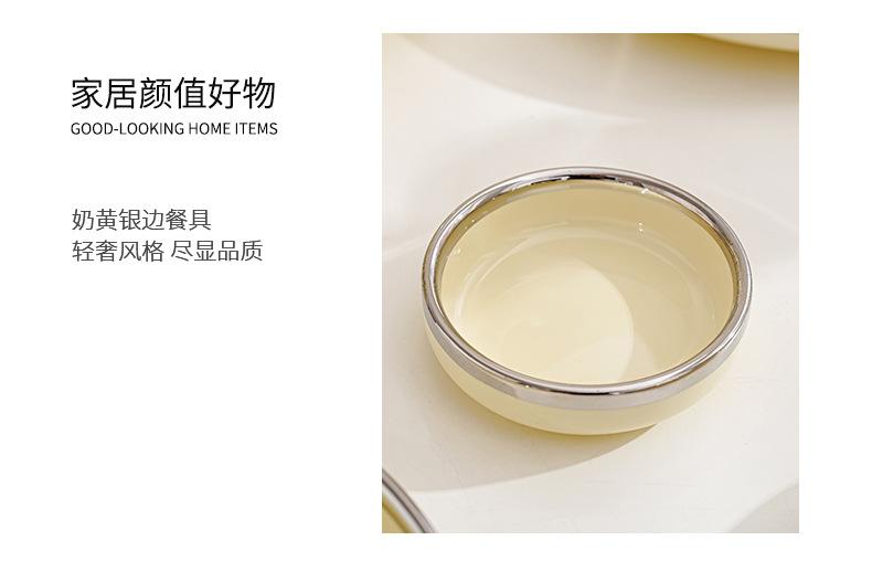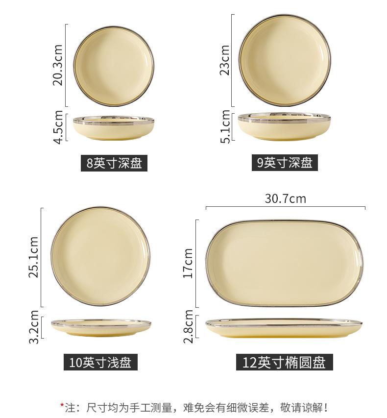 Plato estilo crema, apto para uso doméstico, plato de cerámica, tazón de arroz, tazón de sopa, plato de pescado, color alto, vajilla de combinación.