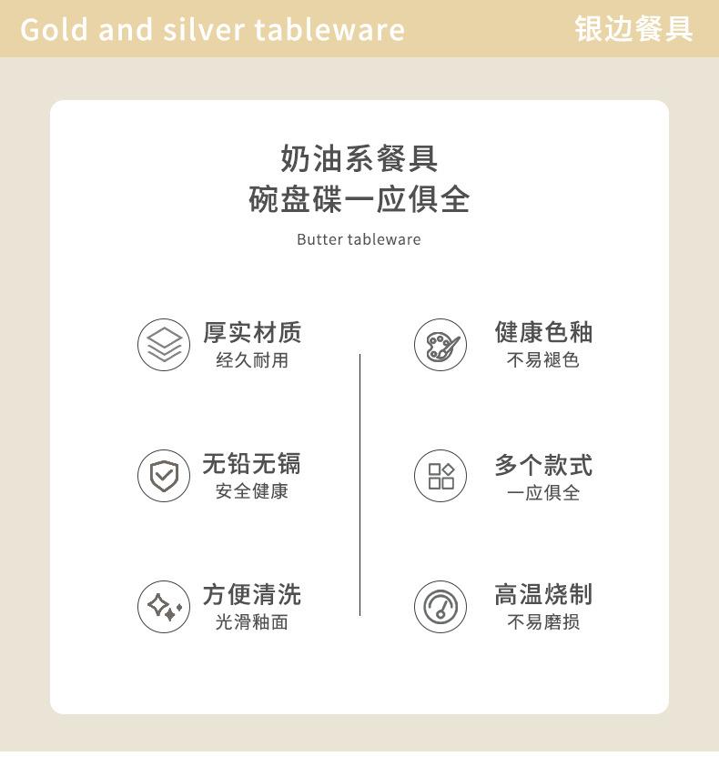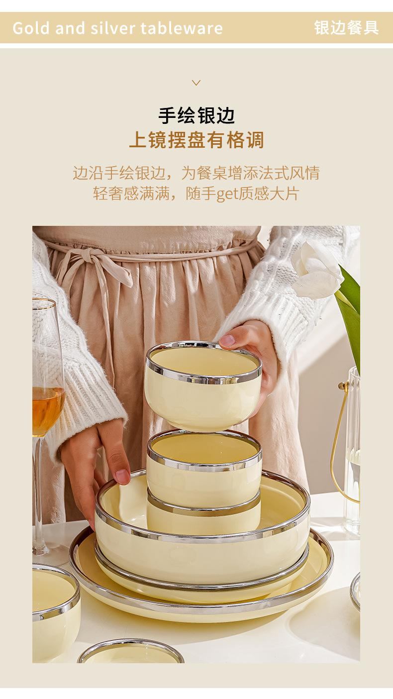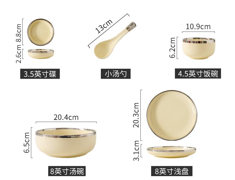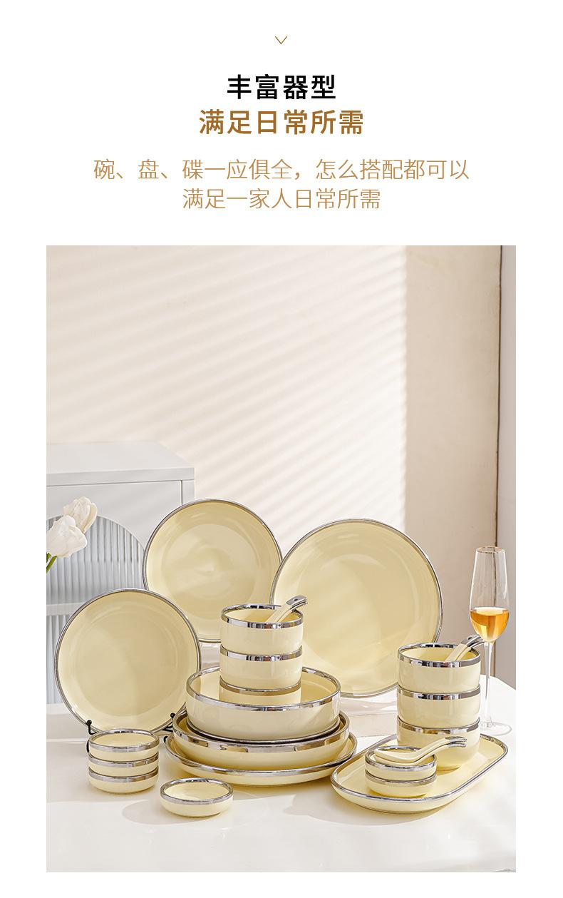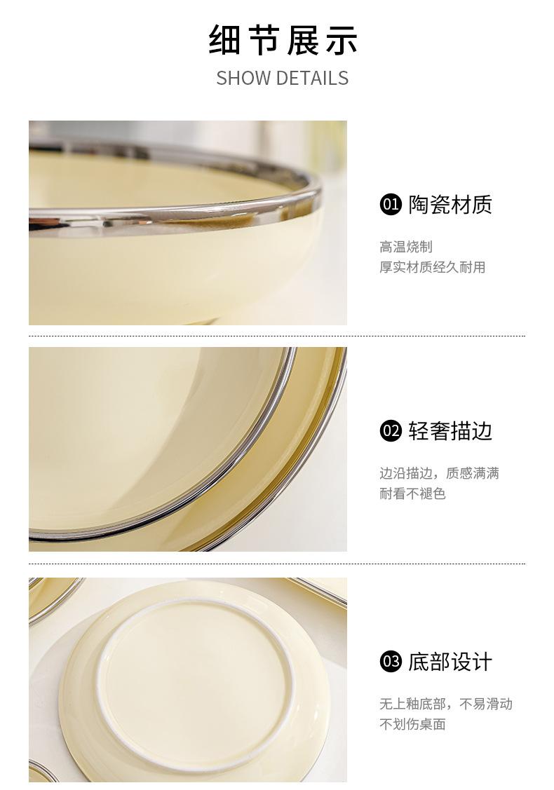 Plato estilo crema, apto para uso doméstico, plato de cerámica, tazón de arroz, tazón de sopa, plato de pescado, color alto, vajilla de combinación.