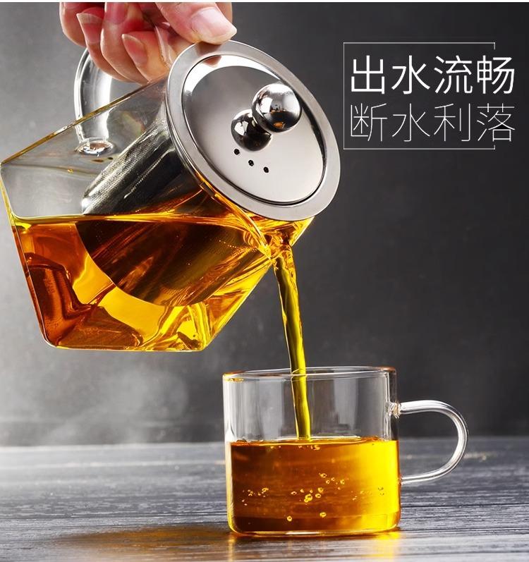 Tetera Cuadrada de Vidrio Estilo Japonés Tetera de Alta Borosilicato para Preparar Té Filtro de Acero Inoxidable Tetera para Té de Flores Juego de Té Separación de Té y Agua