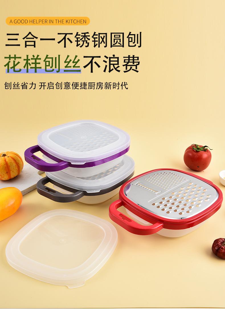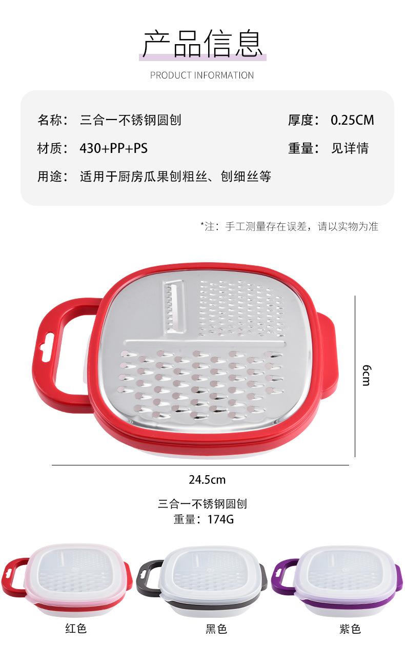 Three-in-one stainless steel round grater [red]], Three-in-one stainless steel round grater [black]], Three-in...