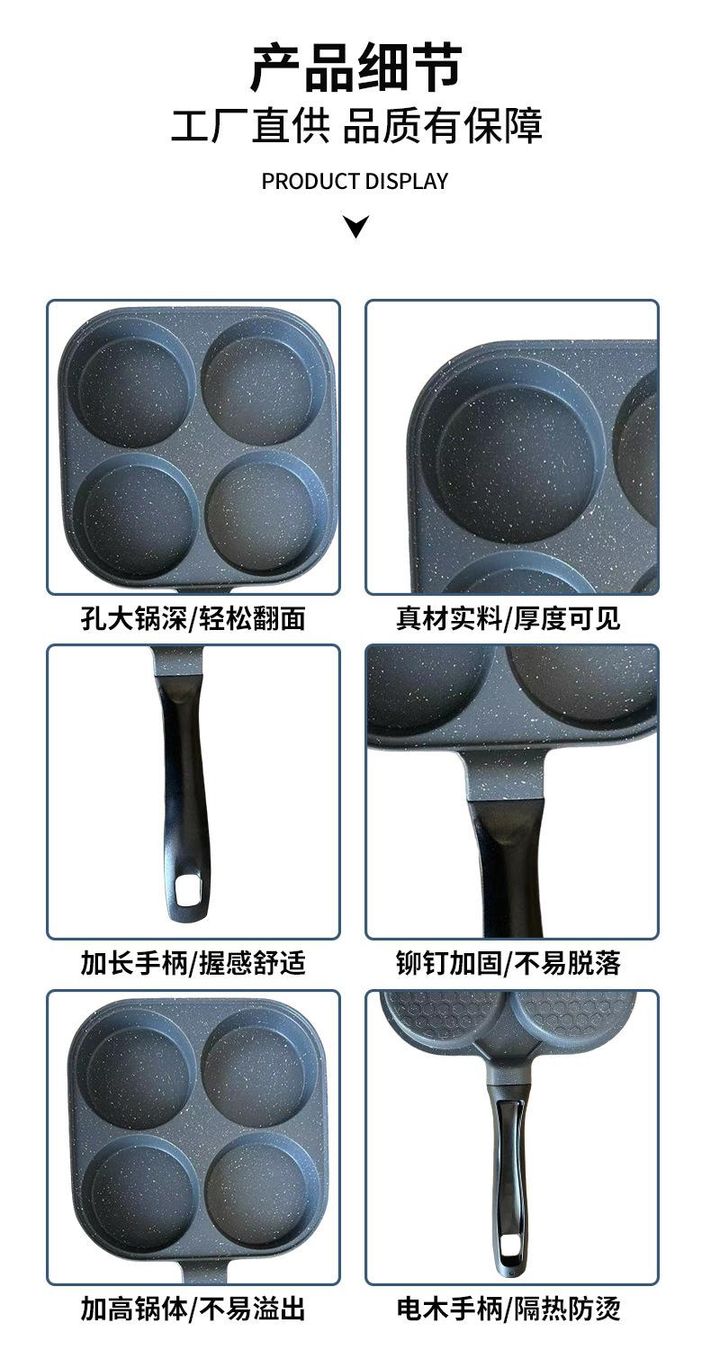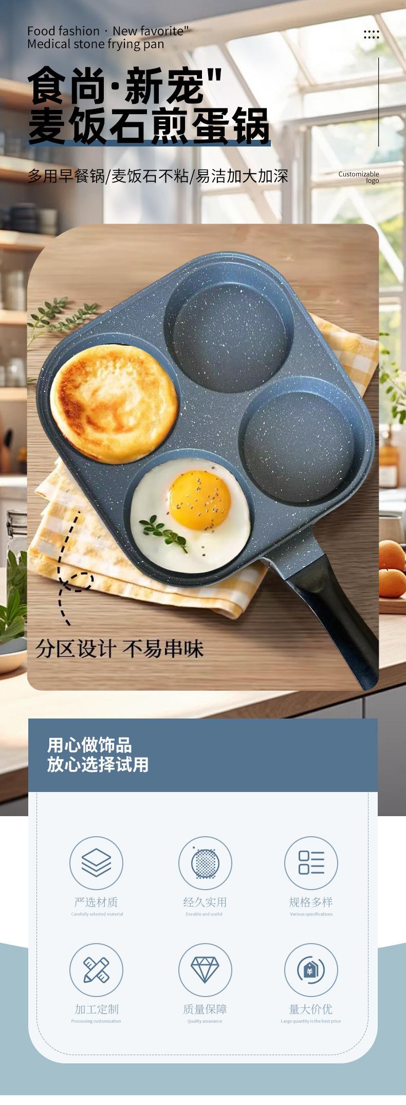 Sartén antiadherente al estilo coreano para hacer empanadillas de huevo, muffins de desayuno, sartén de cuatro agujeros para huevos, sartén para hamburguesas, Maifan, artefacto de piedra para huevos fritos