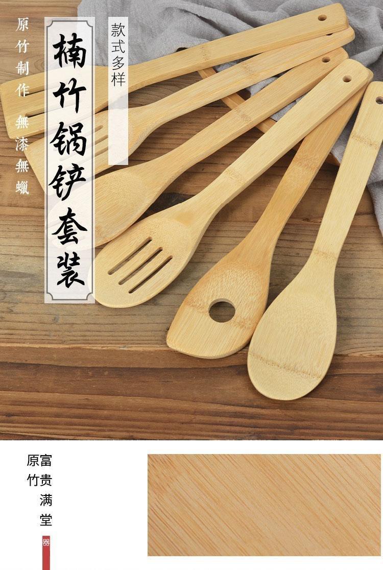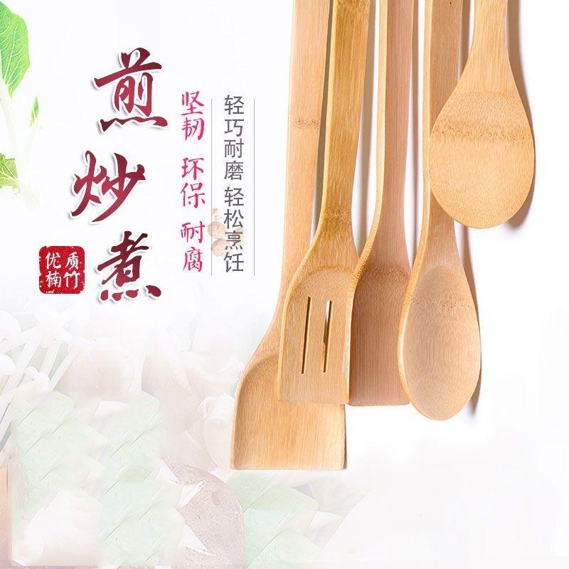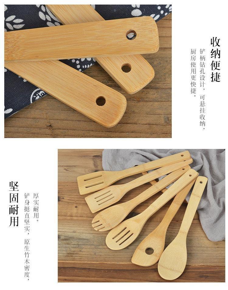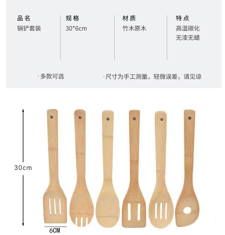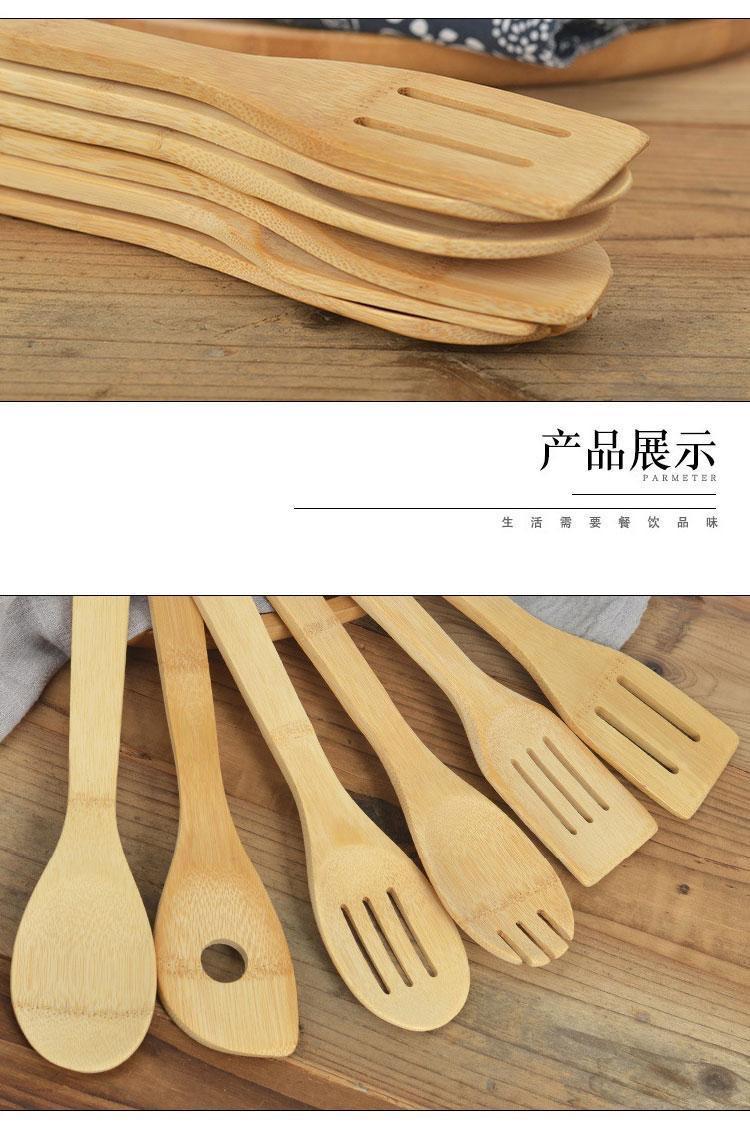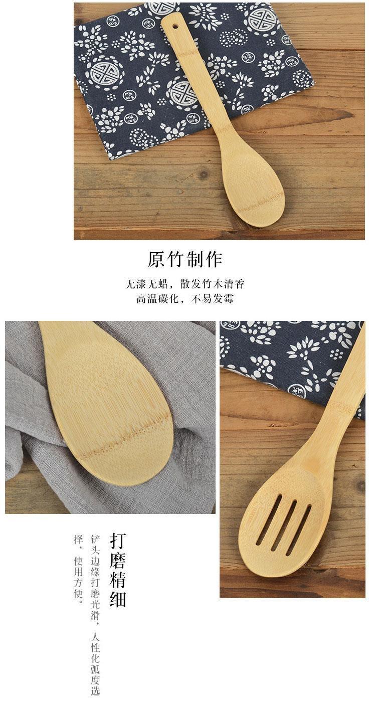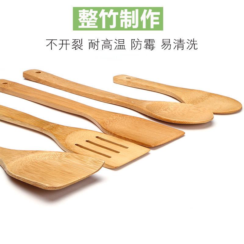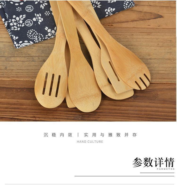 Espátula de bambú, juego de seis piezas, espátula para freír doméstica, cuchara sopera, cocina, sartén antiadherente, espátula de bambú, cuchara de bambú, traje de fábrica al por mayor