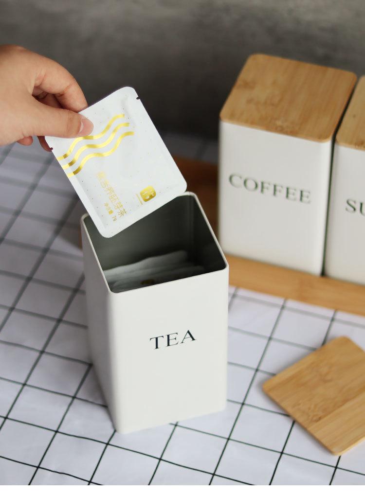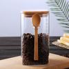 Tarro de té de hierro con cubierta de bambú de estilo simple y creativo, para guardar bocadillos, granos de café, de vidrio, cuadrado, venta al por mayor