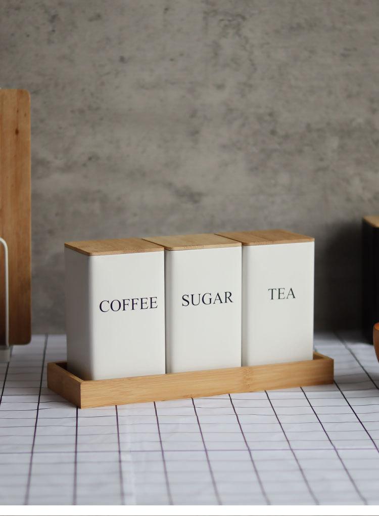 White tea pot, White coffee can, White sugar jar, White combination, Black tea pot, Black coffee can, Black Su...
