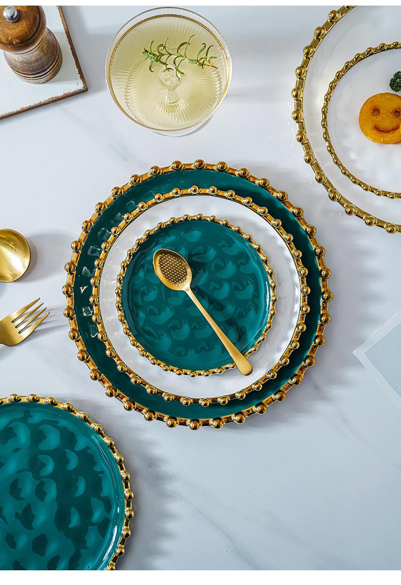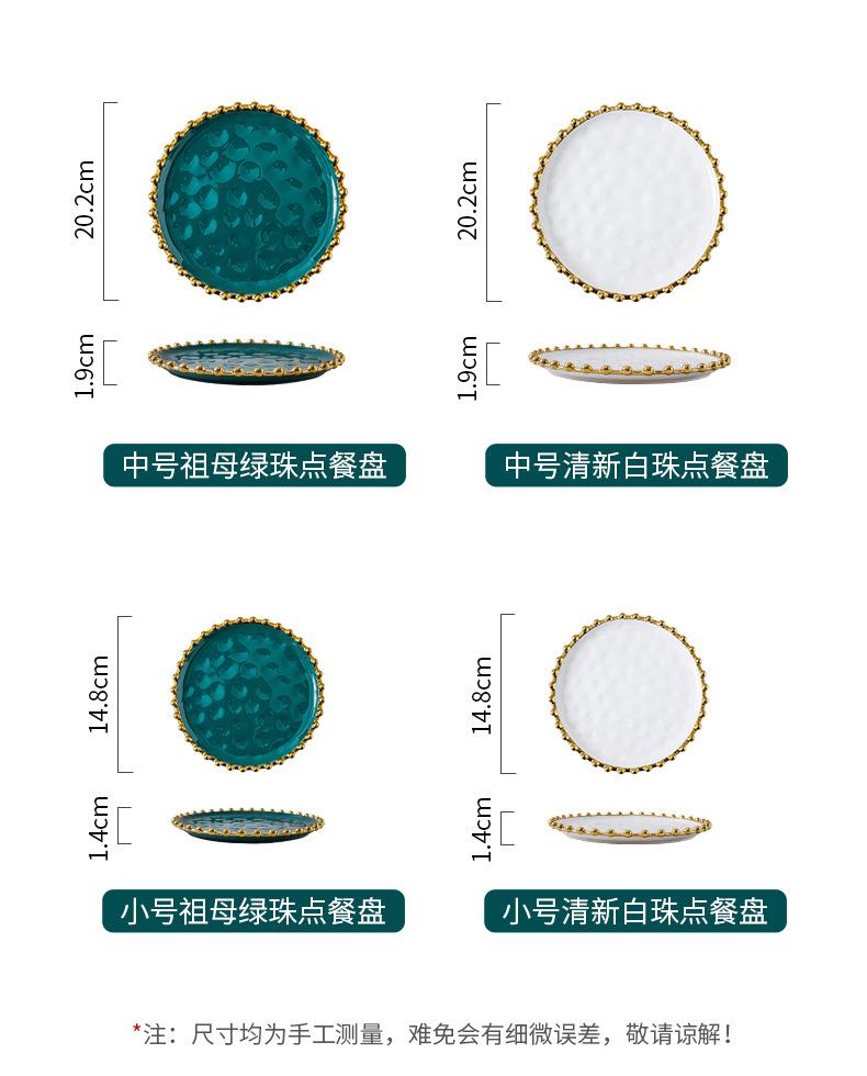 6-inch beaded spot tray (green), 6-inch beaded spot platter (white), 8-inch beaded dish (green), 8-inch beaded...