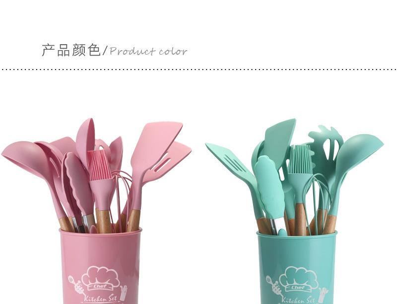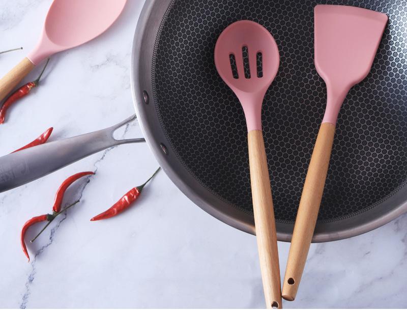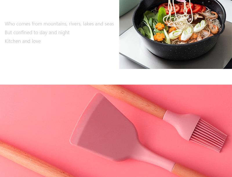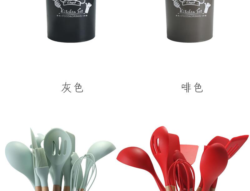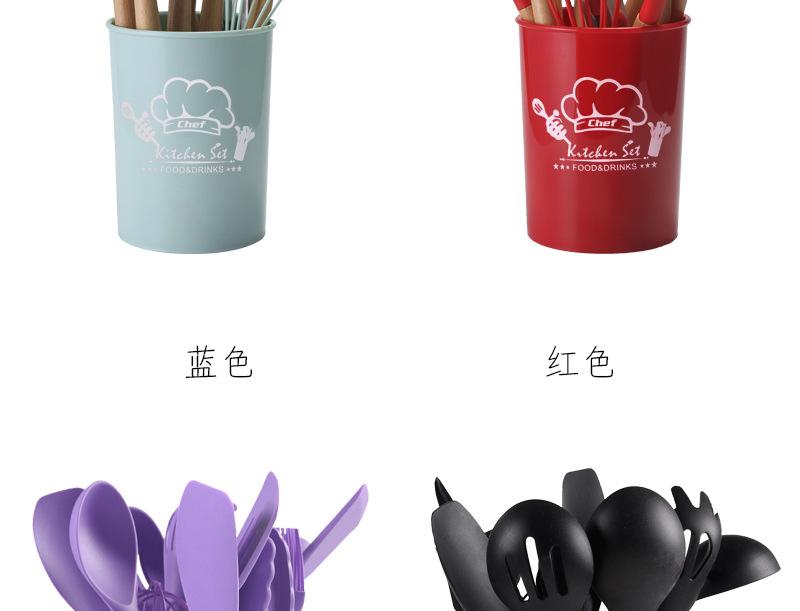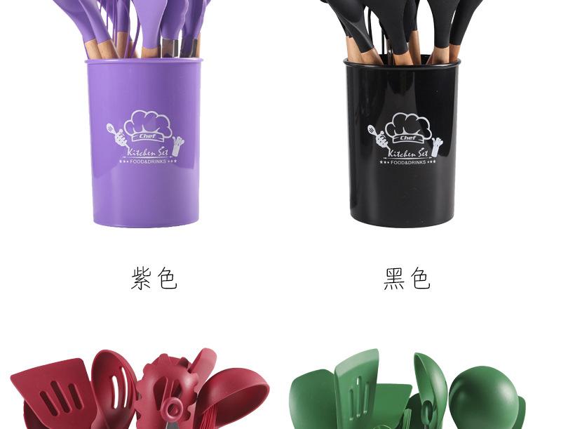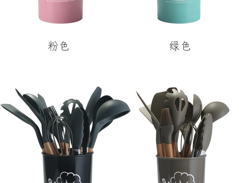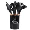 Compra Suministros de cocina, mango de madera, sartén antiadherente de estilo europeo, espátula de silicona, barril de almacenamiento negro de 11 piezas, juego resistente a altas temperaturas al por mayor en Joom.pro