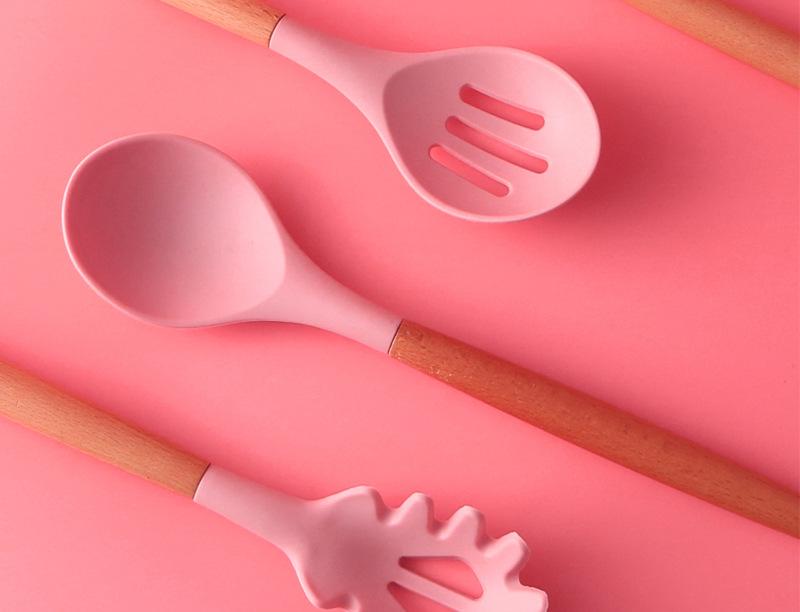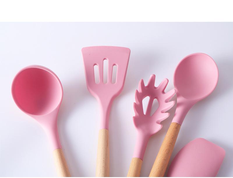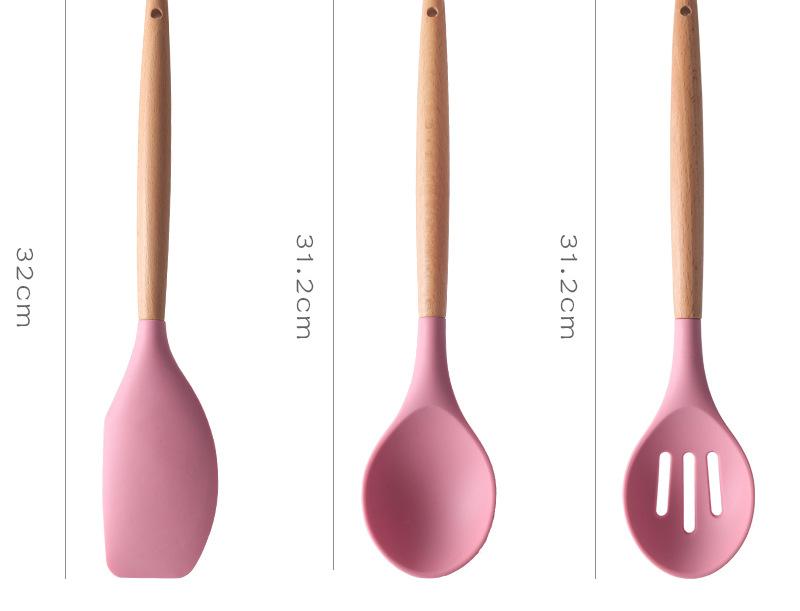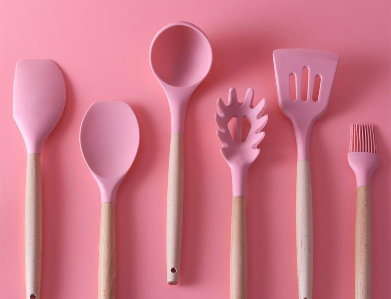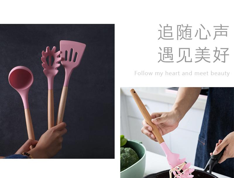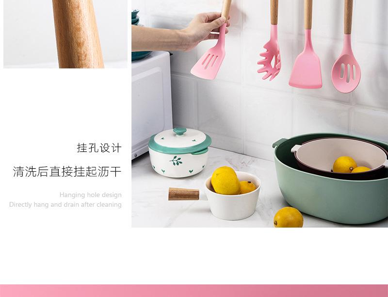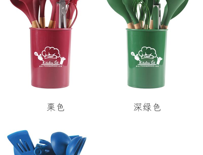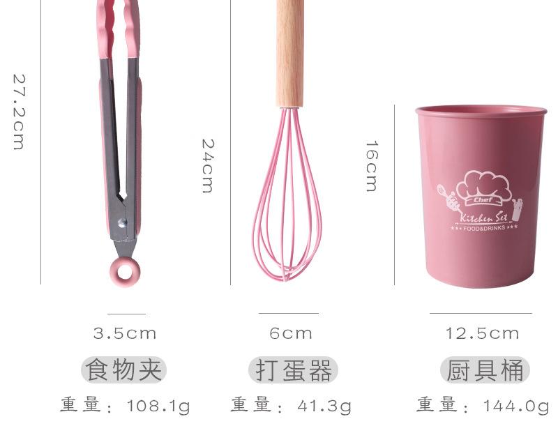 Compra Suministros de cocina, mango de madera, sartén antiadherente de estilo europeo, espátula de silicona, barril de almacenamiento negro de 11 piezas, juego resistente a altas temperaturas al por mayor en Joom.pro
