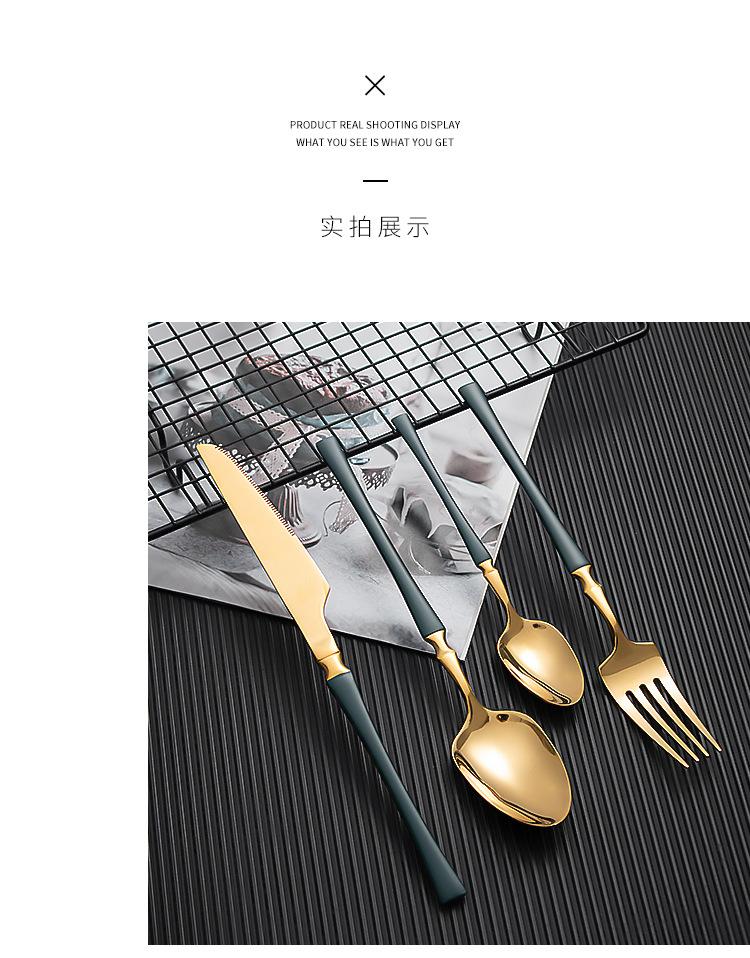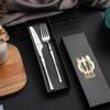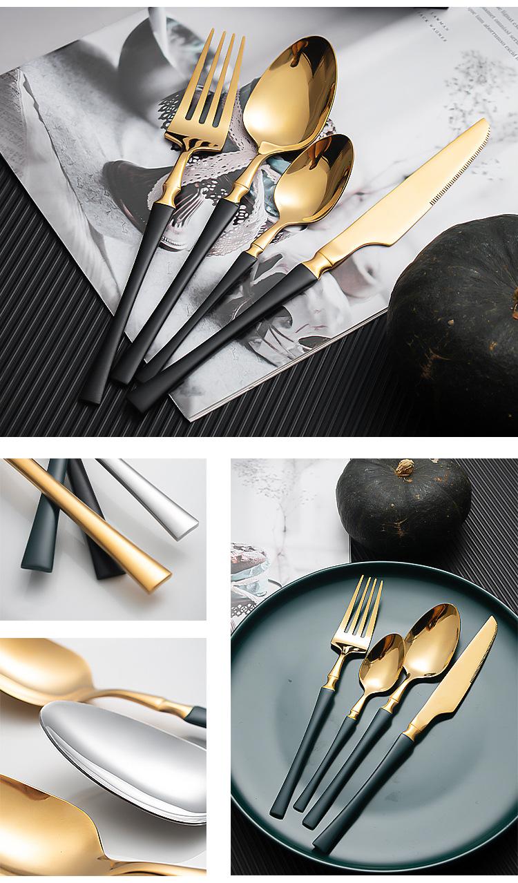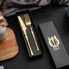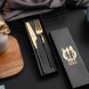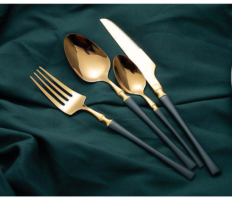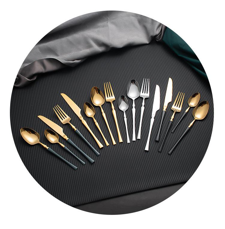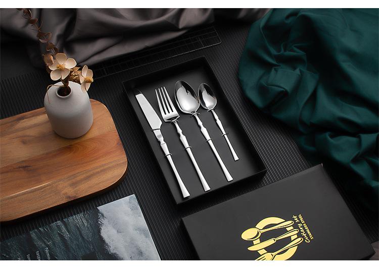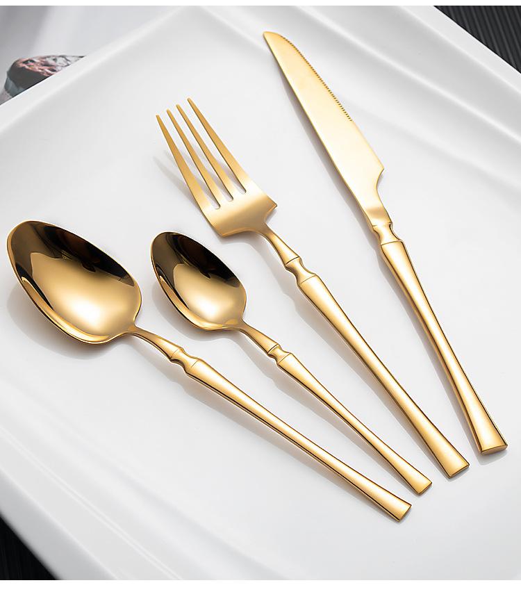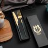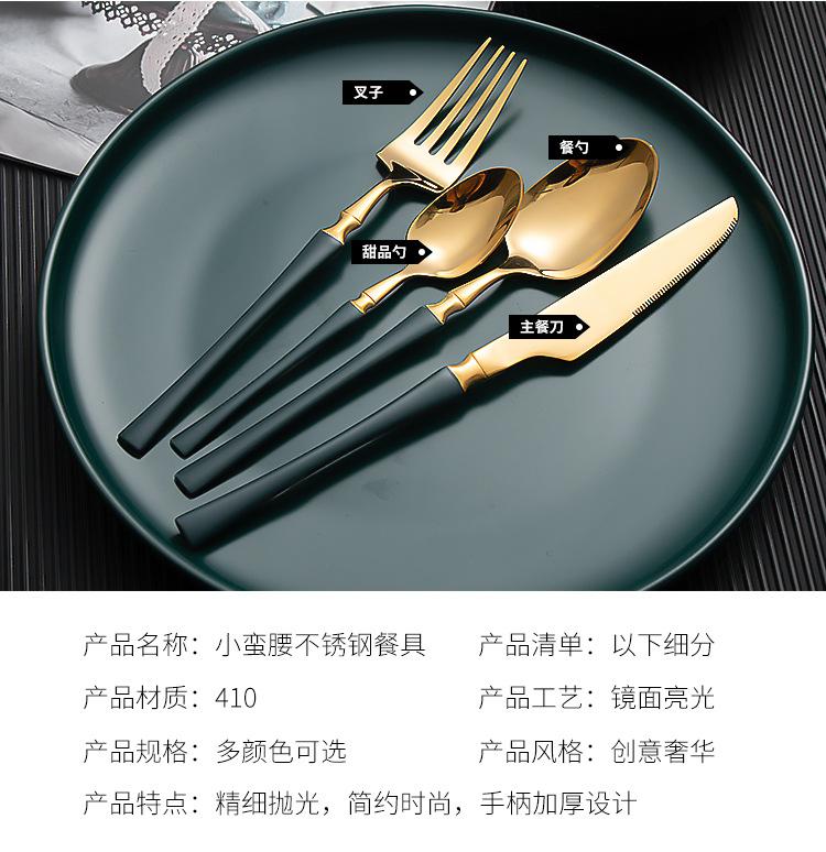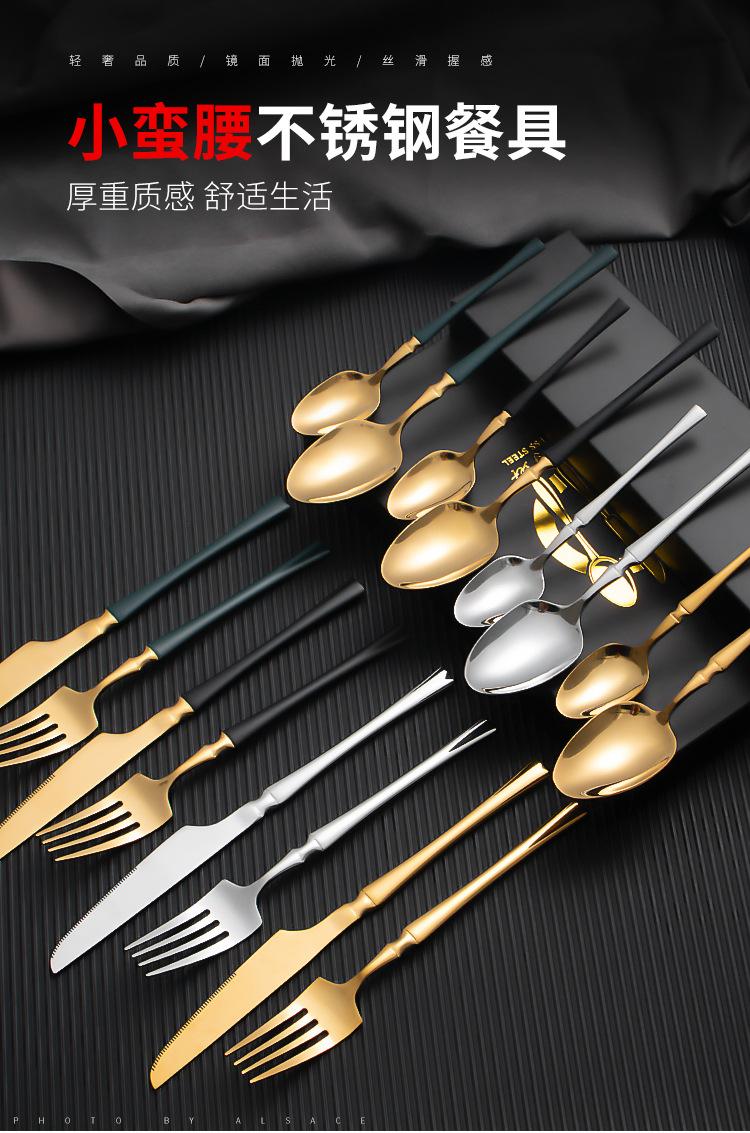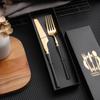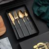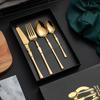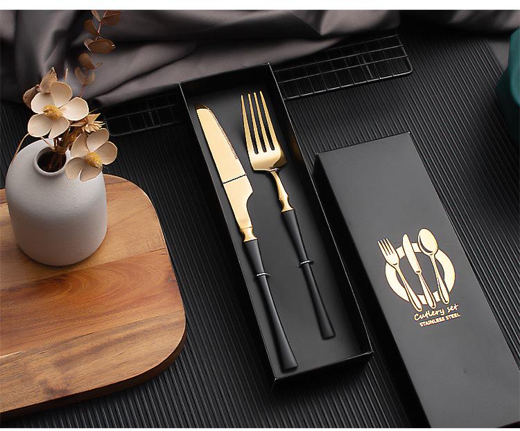 Juego de vajilla occidental de cuatro piezas con cuchillo y tenedor de cintura pequeños de acero inoxidable transfronterizos, cuchillo y tenedor para carne chapados en oro, juego de regalo en caja de vajilla occidental