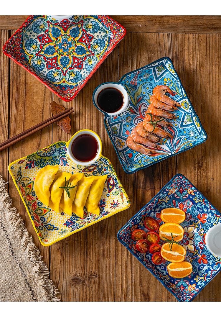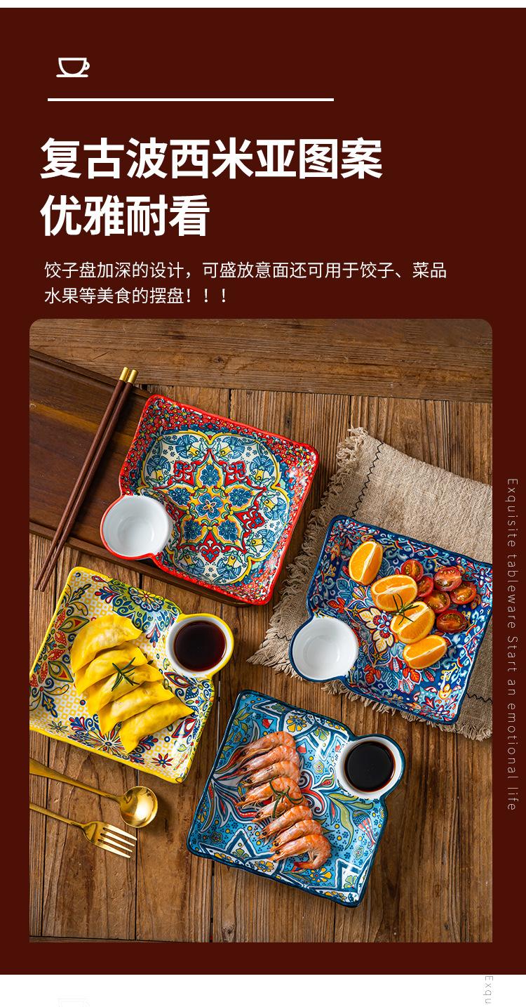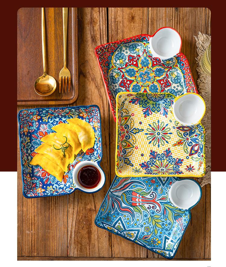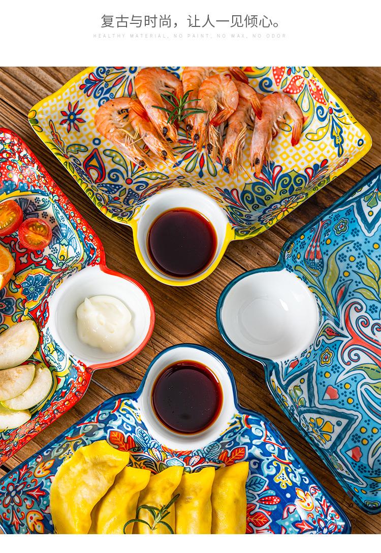 Plato de albóndigas con salsa para mojar, plato de vinagre, vajilla de cerámica creativa de alta apariencia para el hogar, plato de rejilla, plato de albóndigas, plato de fruta para el desayuno