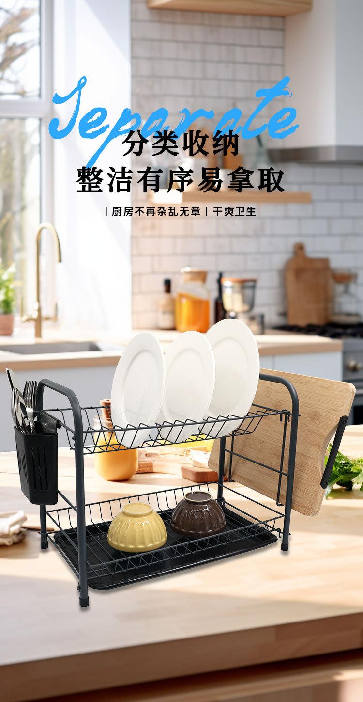 Escurreplatos de cocina transfronterizo, escurreplatos extraíble de doble capa, escurreplatos de encimera para el hogar, escurreplatos