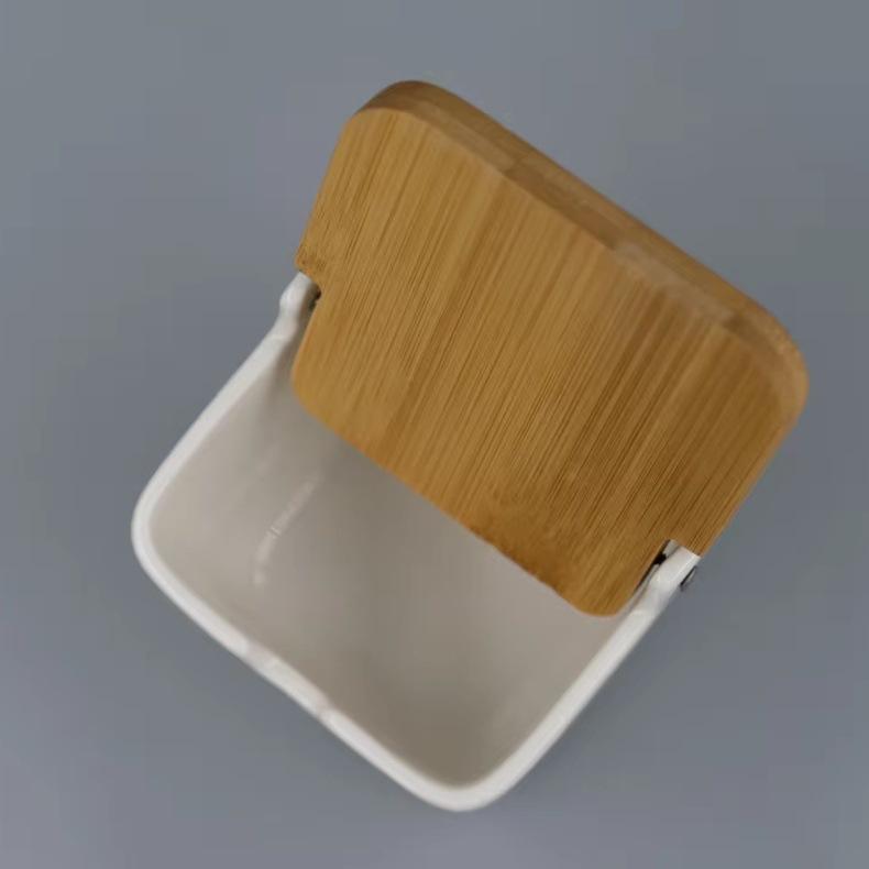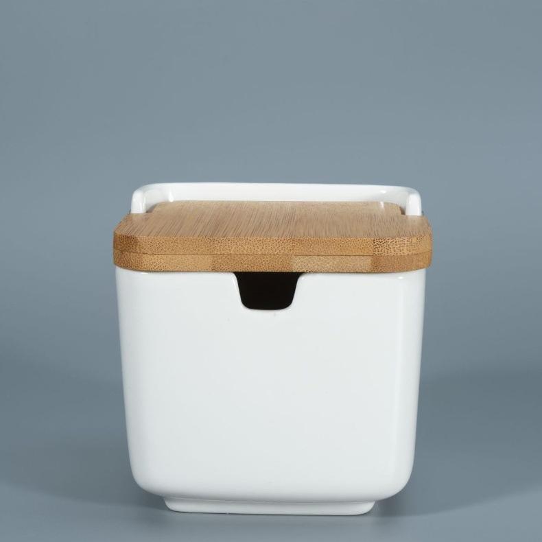 Hecho de cerámica y bambú, respetuoso con el medio ambiente y libre de contaminación. La tapa de bambú se puede voltear para facilitar el acceso a los condimentos, y el cuerpo del tarro de cerámica hace que las manchas sean fáciles de limpiar.