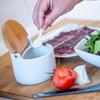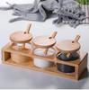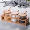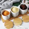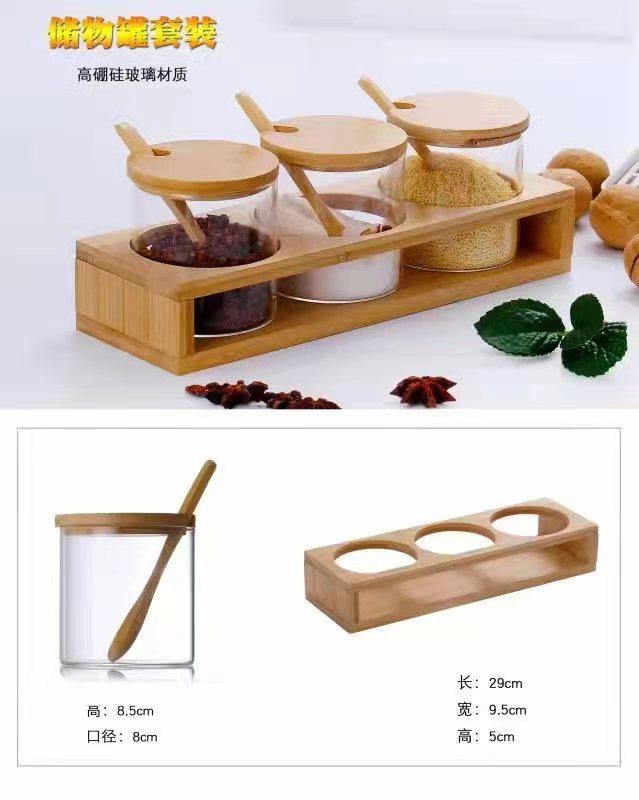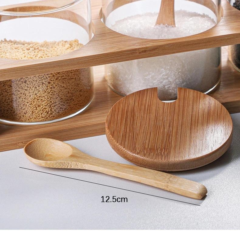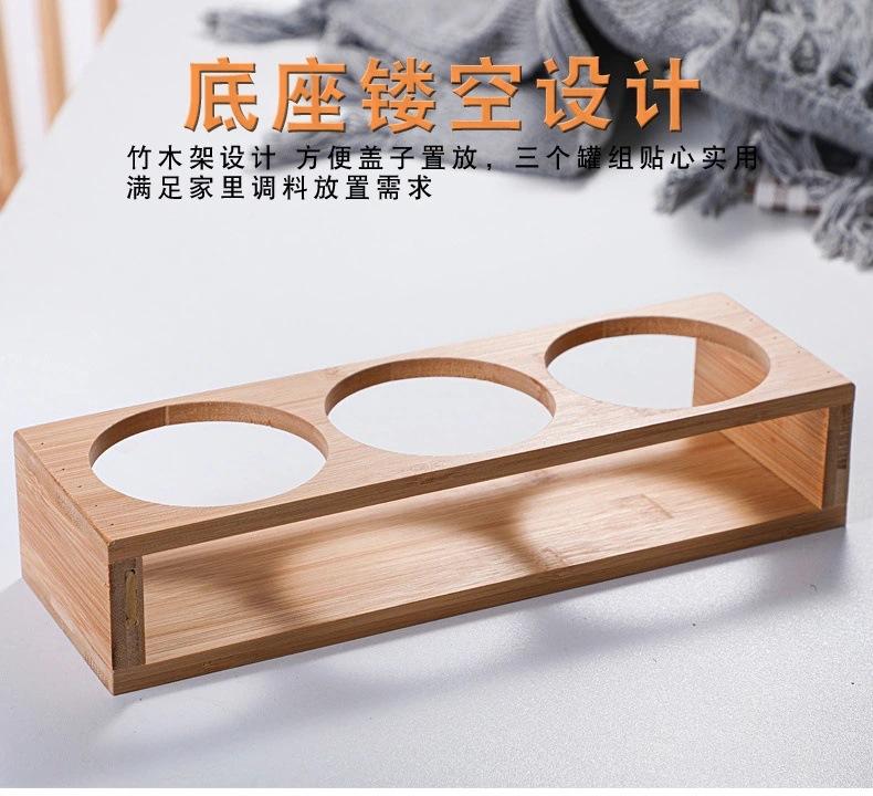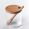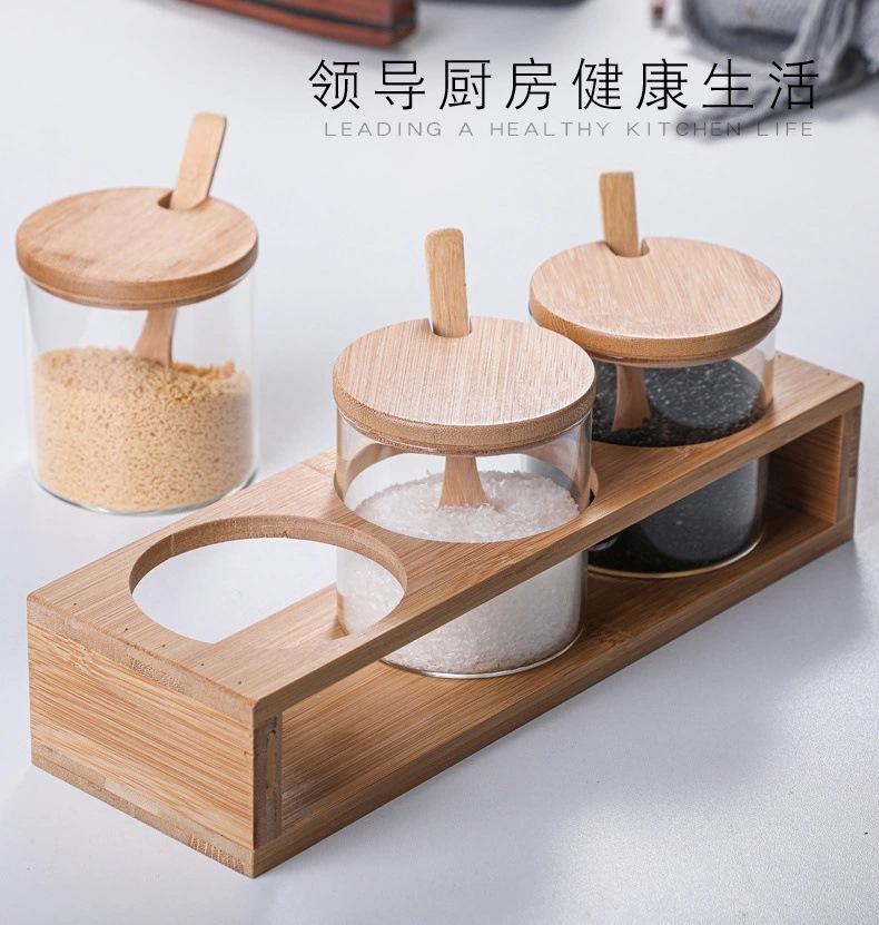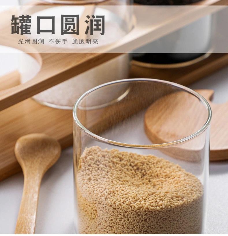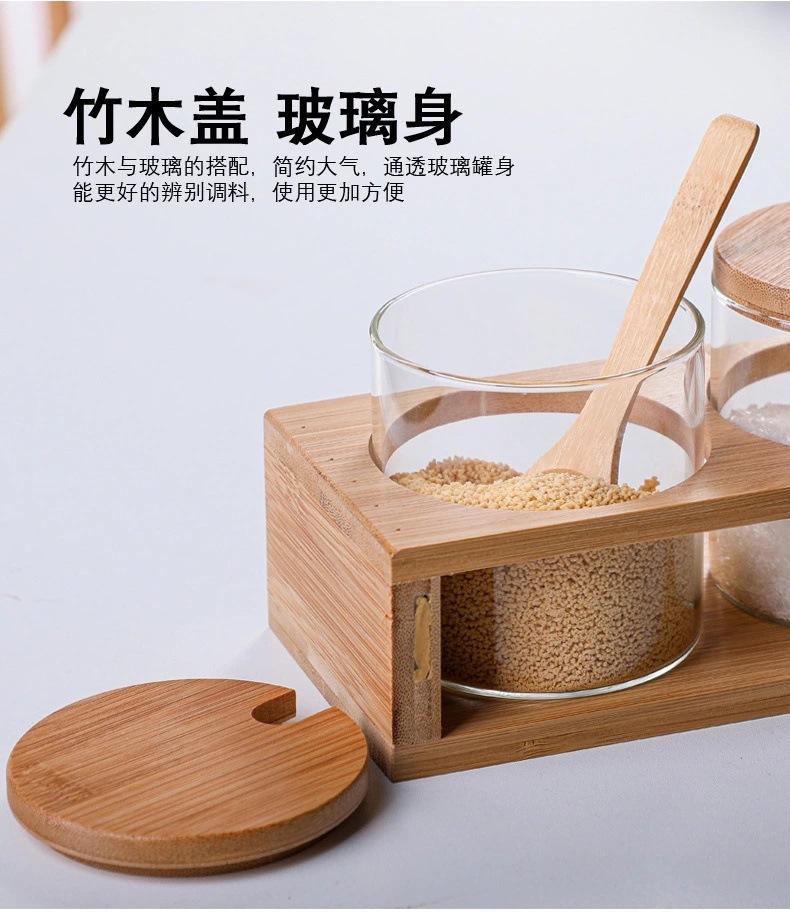 Tarro de condimentos de vidrio estilo japonés con tapa de bambú y madera, caja de condimentos, tarro de cocina para azúcar y sal, juego de botellas de condimentos a prueba de polvo, transparente para el hogar