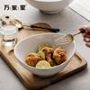 Cuenco de cerámica sencillo, cuenco para verduras, cuenco para sopa, cuenco para ensalada, cuenco hondo, cuenco para sopa de comida occidental, cuenco de forma especial, vajilla creativa para restaurante.