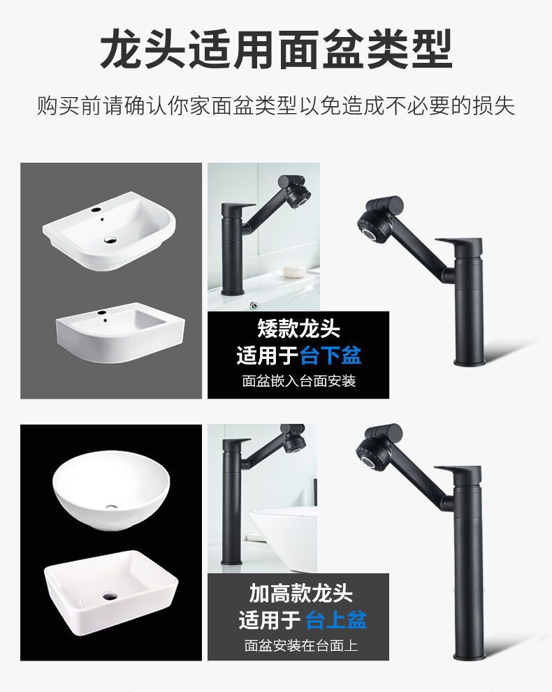 Grifo monomando para lavabo de cobre, para agua fría y caliente, para lavabo de encimera de inodoro, universal, giratorio, de un solo orificio