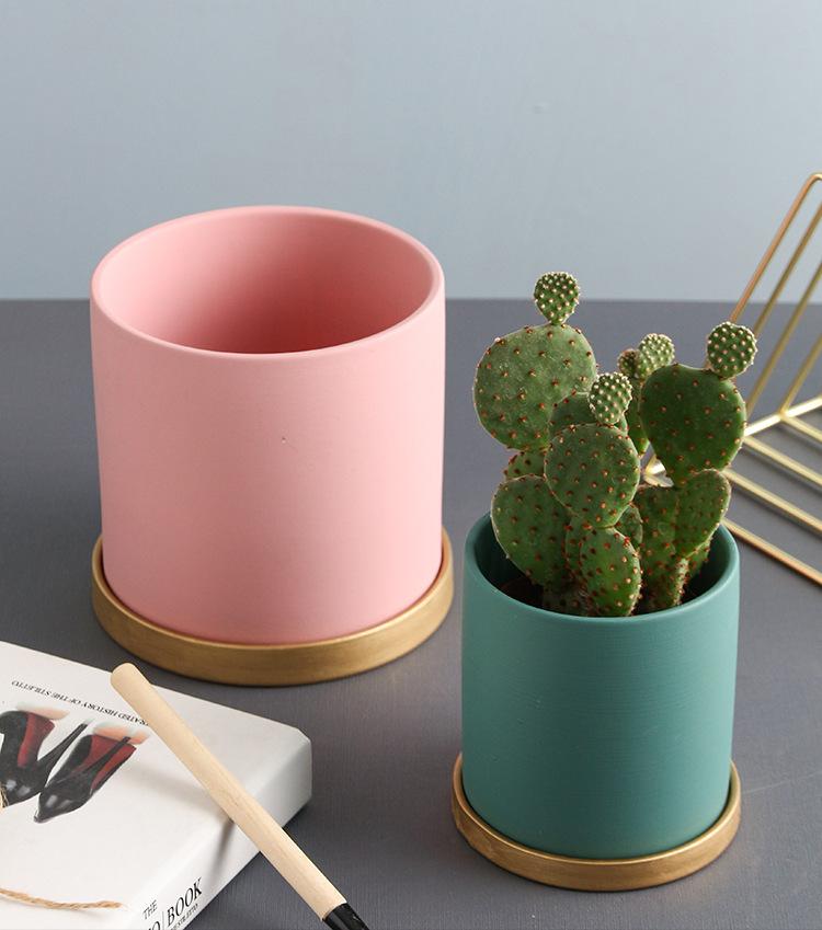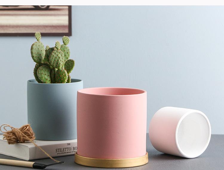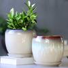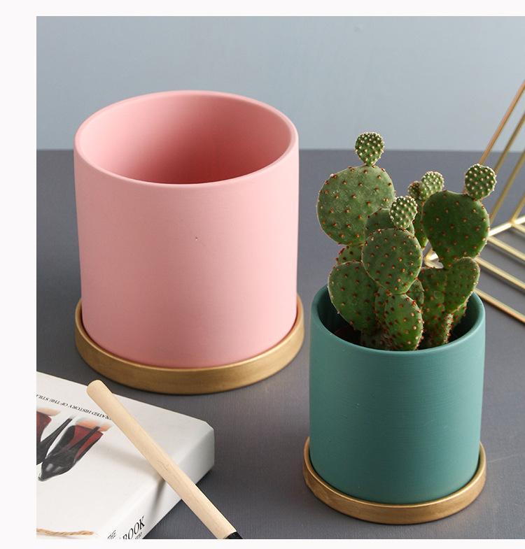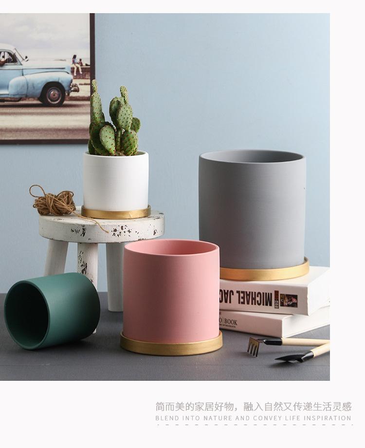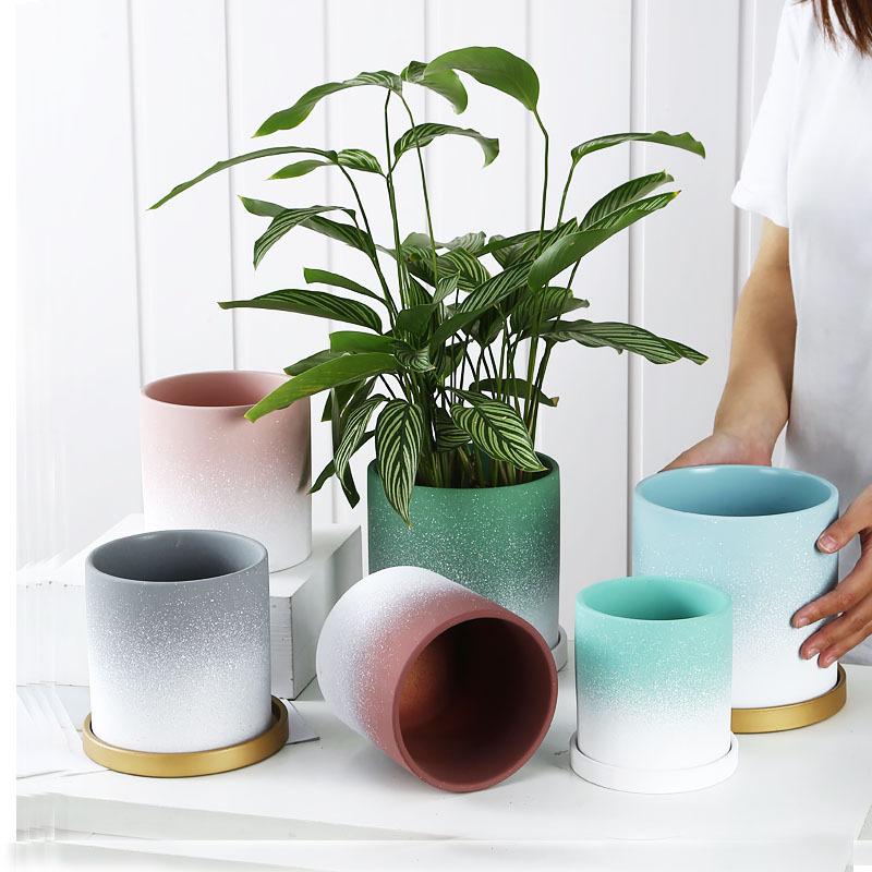 Maceta nórdica sencilla de cerámica para flores, grande, creativa y distintiva, para el hogar, con bandeja, color verde Phalaenopsis
