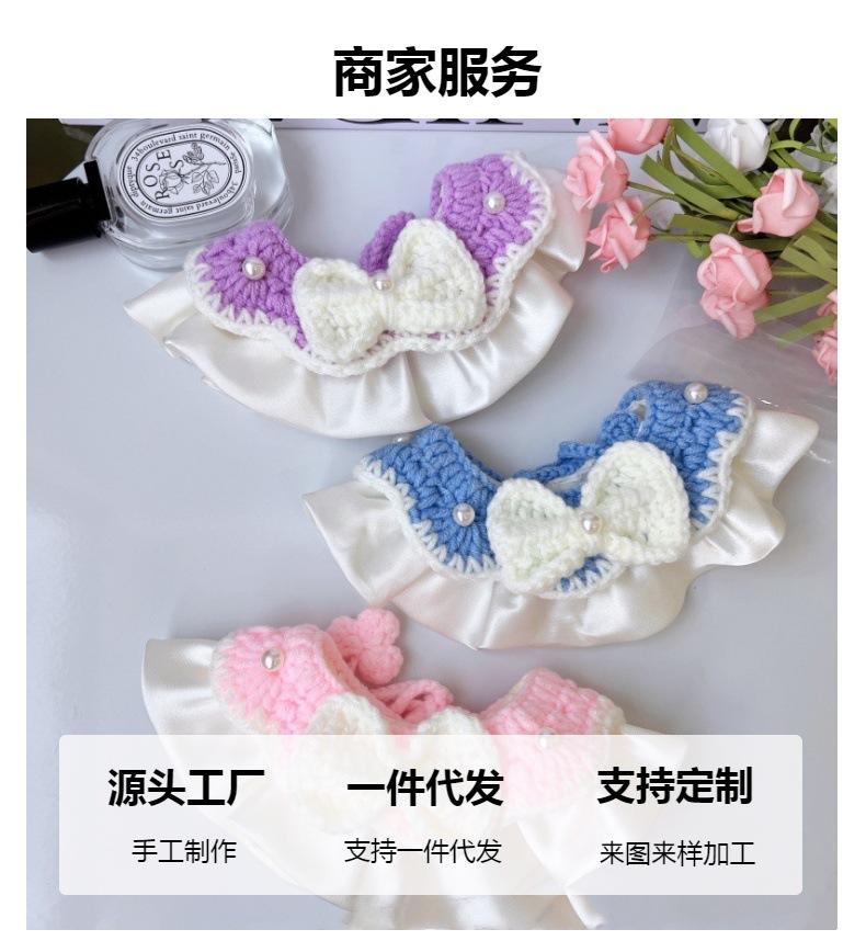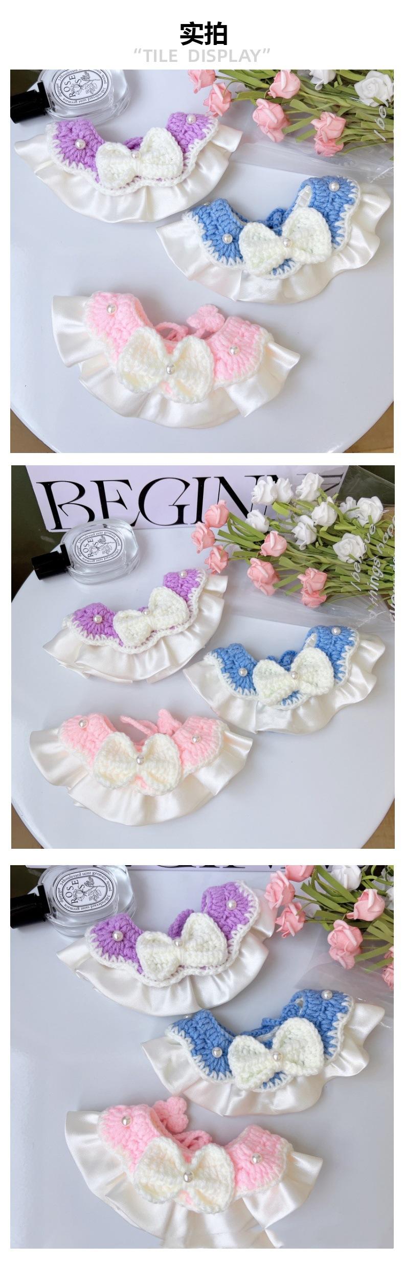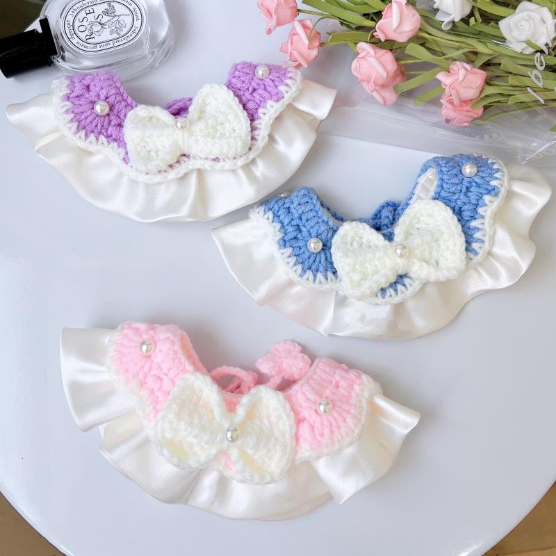 Bufanda tejida con lazo para mascota, color crema, con forma de lazo para gato y perro, con foto, collar suave hecho a mano, joyería al por mayor