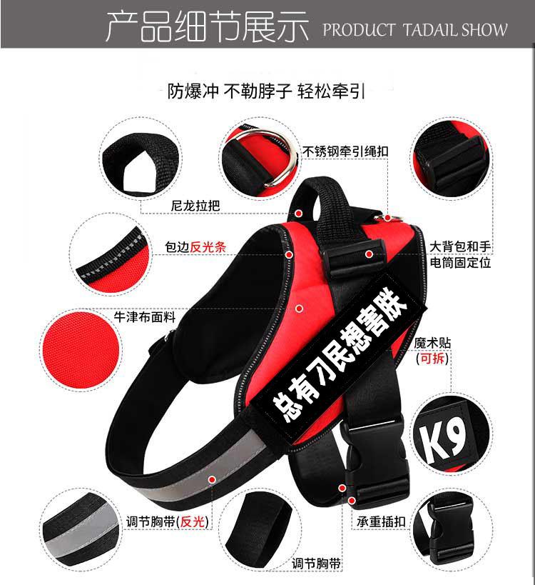 Nombre del producto: arnés de pecho k9 cuerda de tracción,